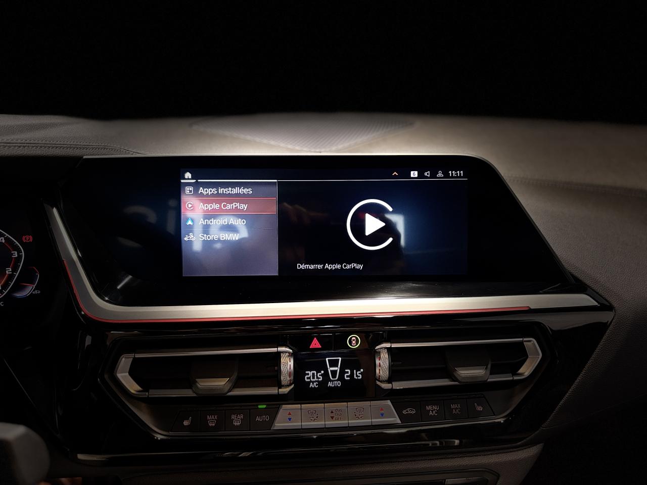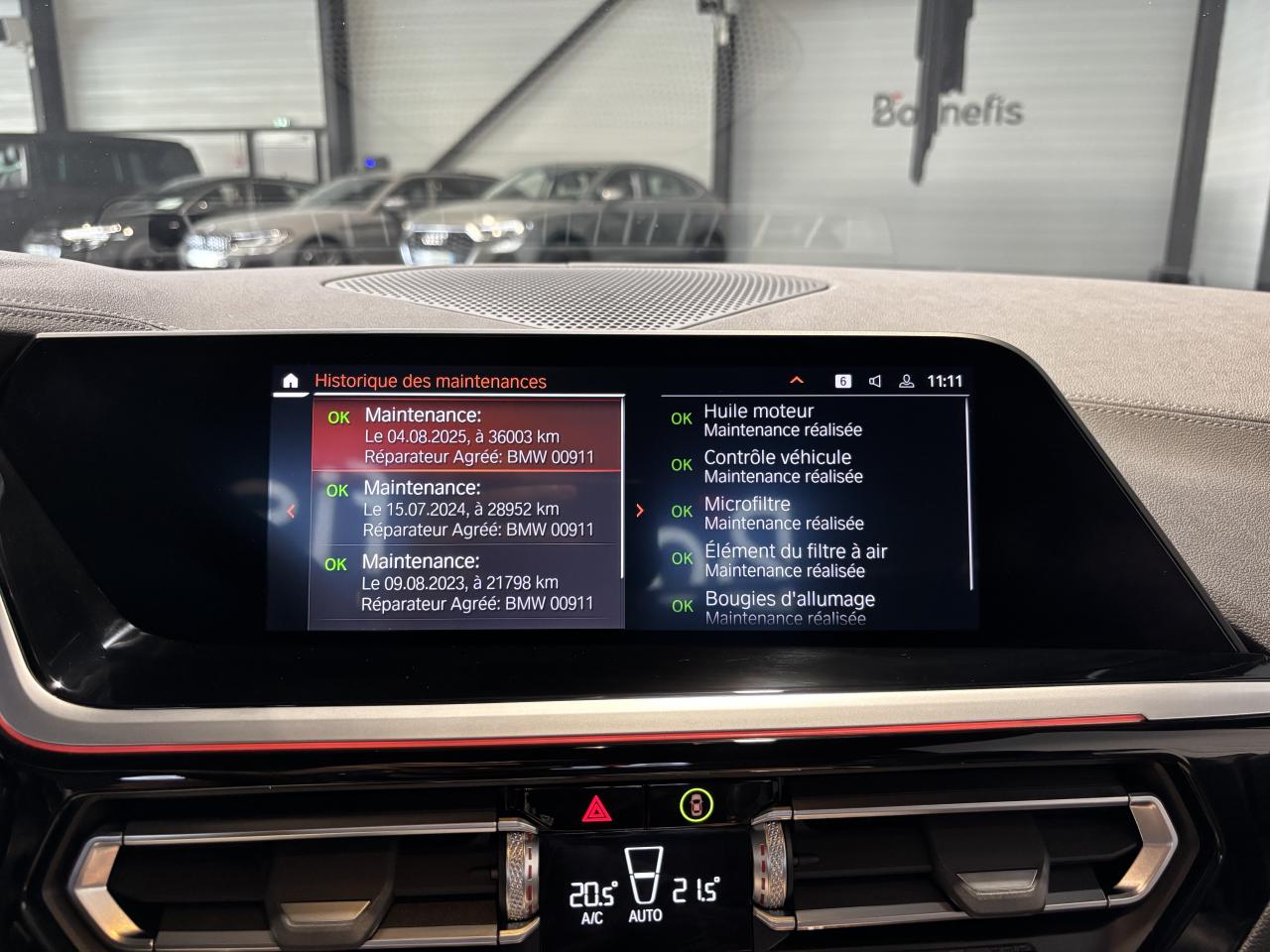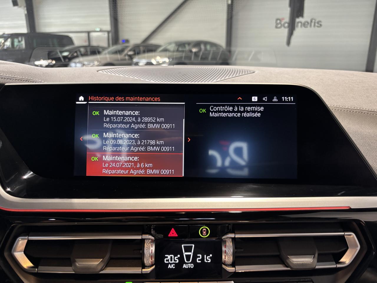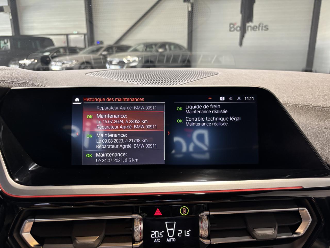 Nombreuses options : GPS, caméra de recul, Apple CarPlay, radars avants et arrières de détection d'obstacles, Sièges AV électriques avec mémoire conducteur et passager ( 1 041 € ), Park Assist ( 541 € ), Système Hi-Fi Harman Kardon ( 458 € ), Freins M Sport rouges ( 333 € ), Sièges AV chauffants ( 333 € ), Sièges AV avec appui lombaire ajustable ( 225 € ), Volant chauffant ( 225 € ), Shadow Line brillant BMW Individual étendu ( 216 € ), Ceintures de sécurité noires avec liserés aux couleurs M ( 175 € ), Kit de mobilité BMW ( 45 € ), Accès confort ( 500 € ), BMW Live Cockpit Navigation Pro, Boîte de vitesses automatique Sport 8 rapports avec palettes au volant, Sellerie Cuir "Vernasca" Schwarz avec surpiqûres décoratives, Climatisation automatique bi-zone, Rétroviseur intérieur électrochrome, Rétroviseurs extérieurs électrochromes rabattables électriquement, Régulateur de vitesse avec fonction de freinage et limiteur de vitesse, ...