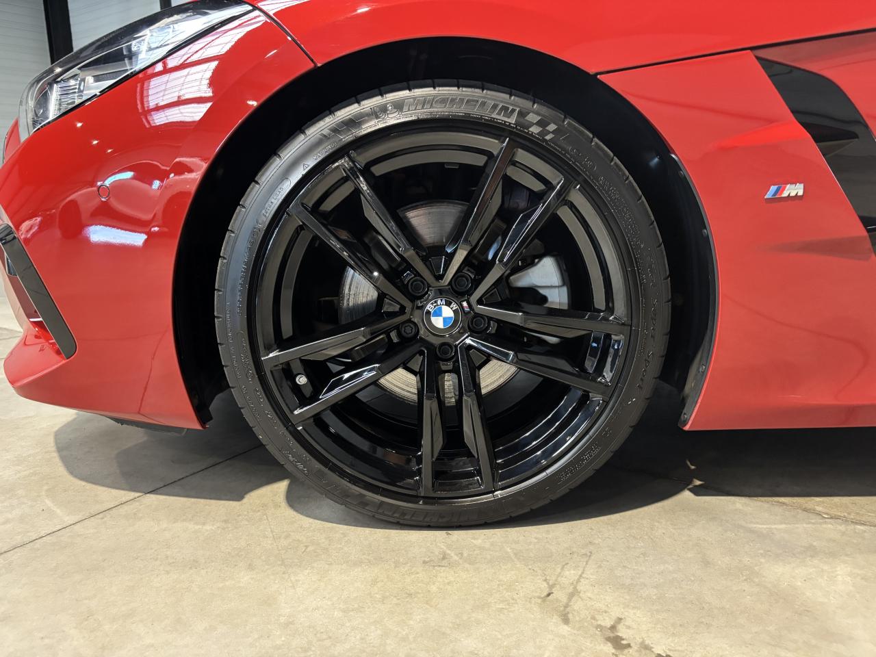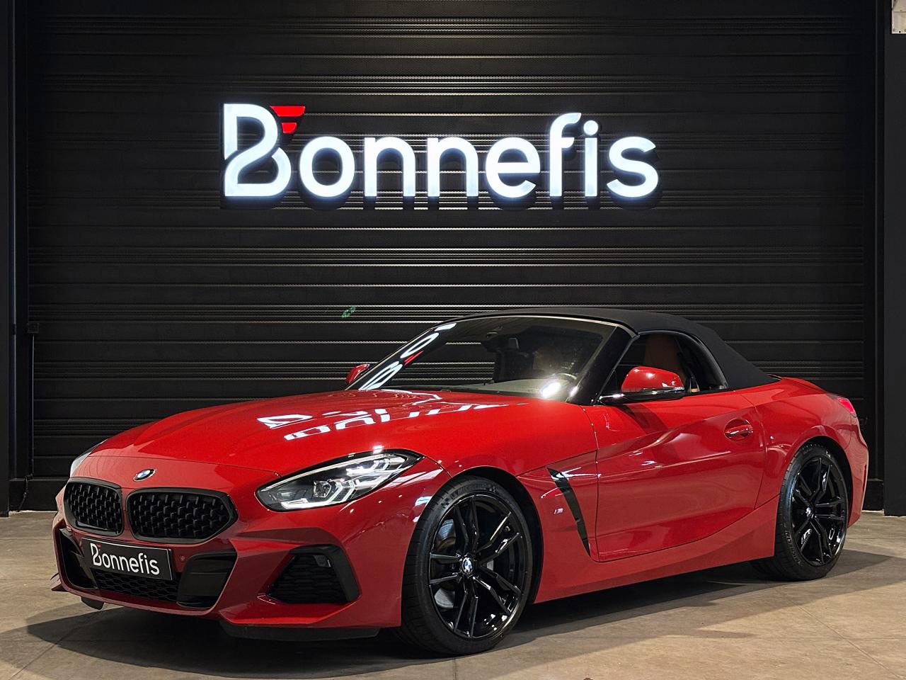 BMW Z4 S Drive 20i 197Ch BVA8 G29 M Sport, extérieur rouge San Francisco métallisée ( 908 € ), intérieur cuir Vernasca Cognac avec sur-piqûres décoratives, 11 cv, 3 portes, première mise en circulation le 07/09/2020.