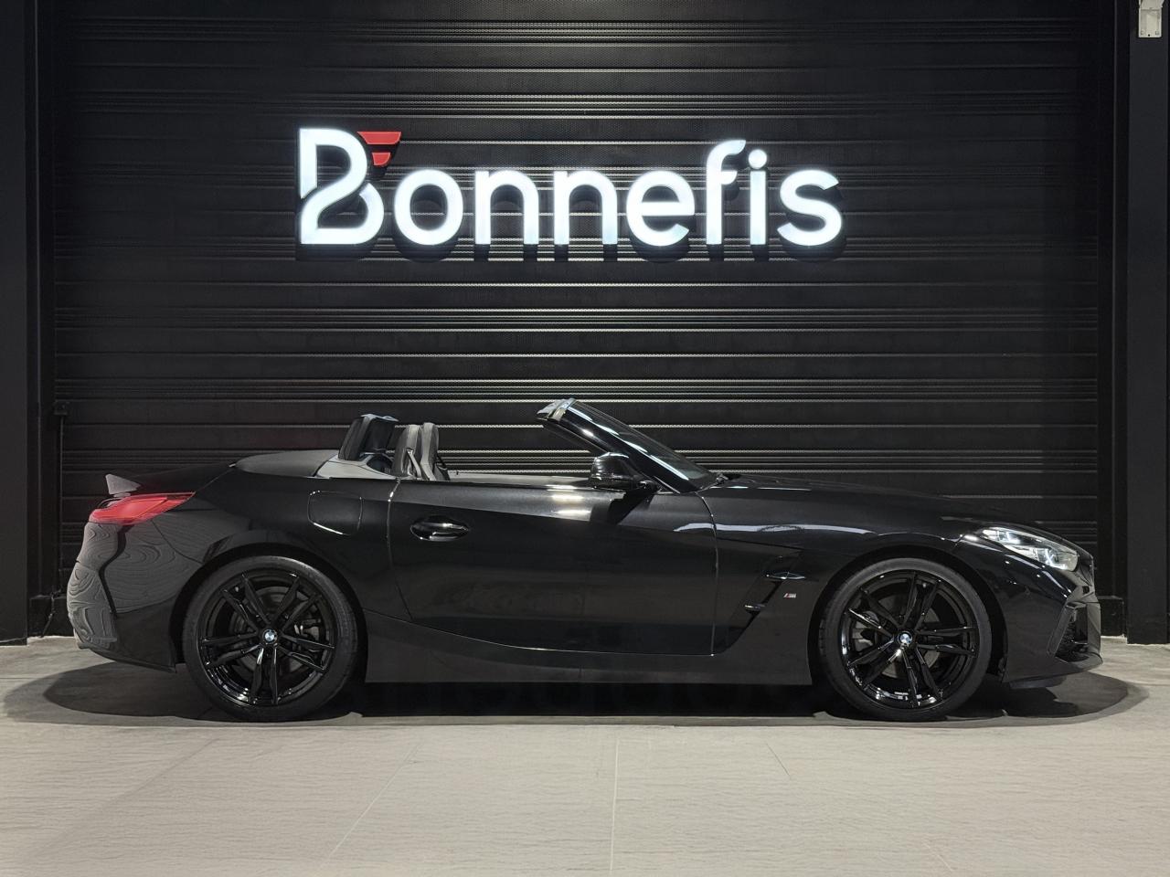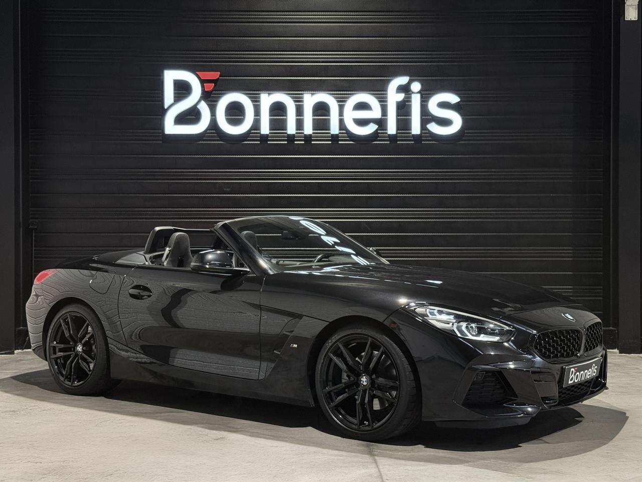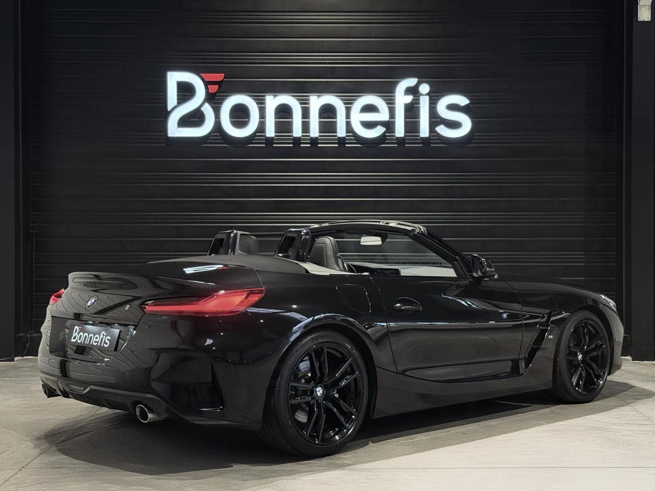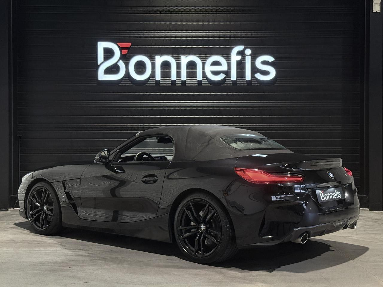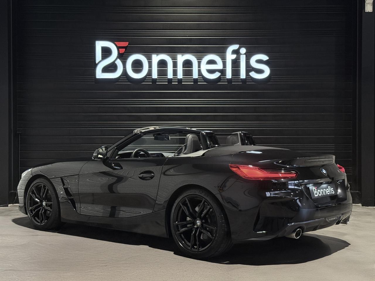 BMW Z4 S Drive 20i 197 Ch BVA8 G29 M Sport, extérieur noir métallisée ( 908 € ), intérieur noir avec sur-piqûres décoratives, 11 cv, 3 portes, première mise en circulation le 29/04/2019.