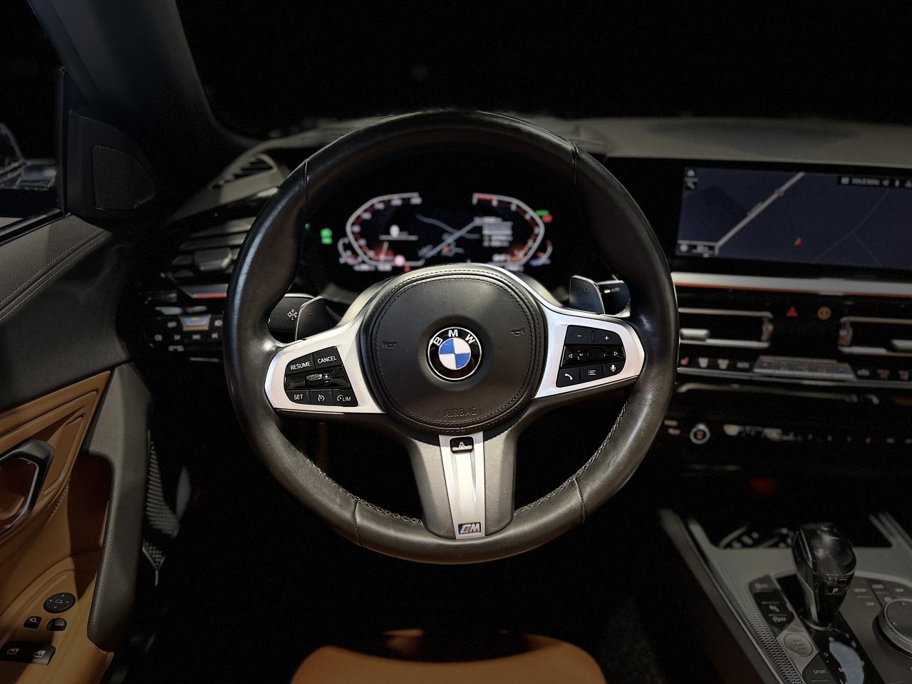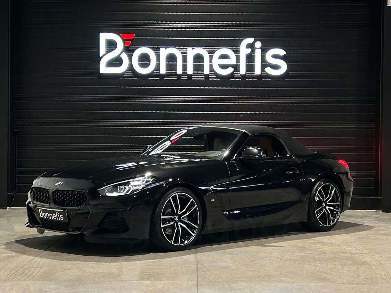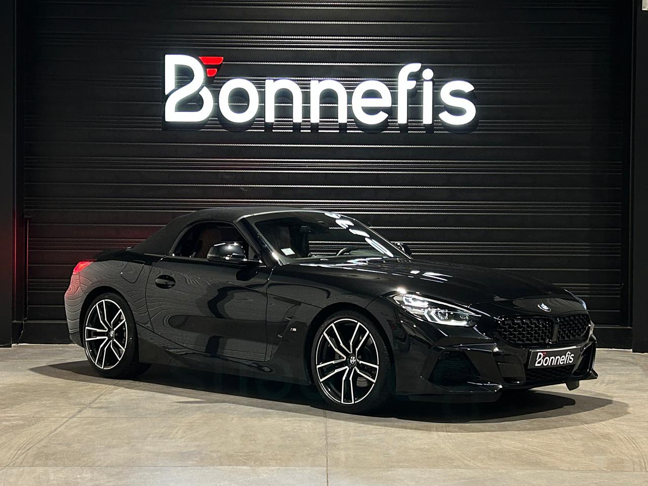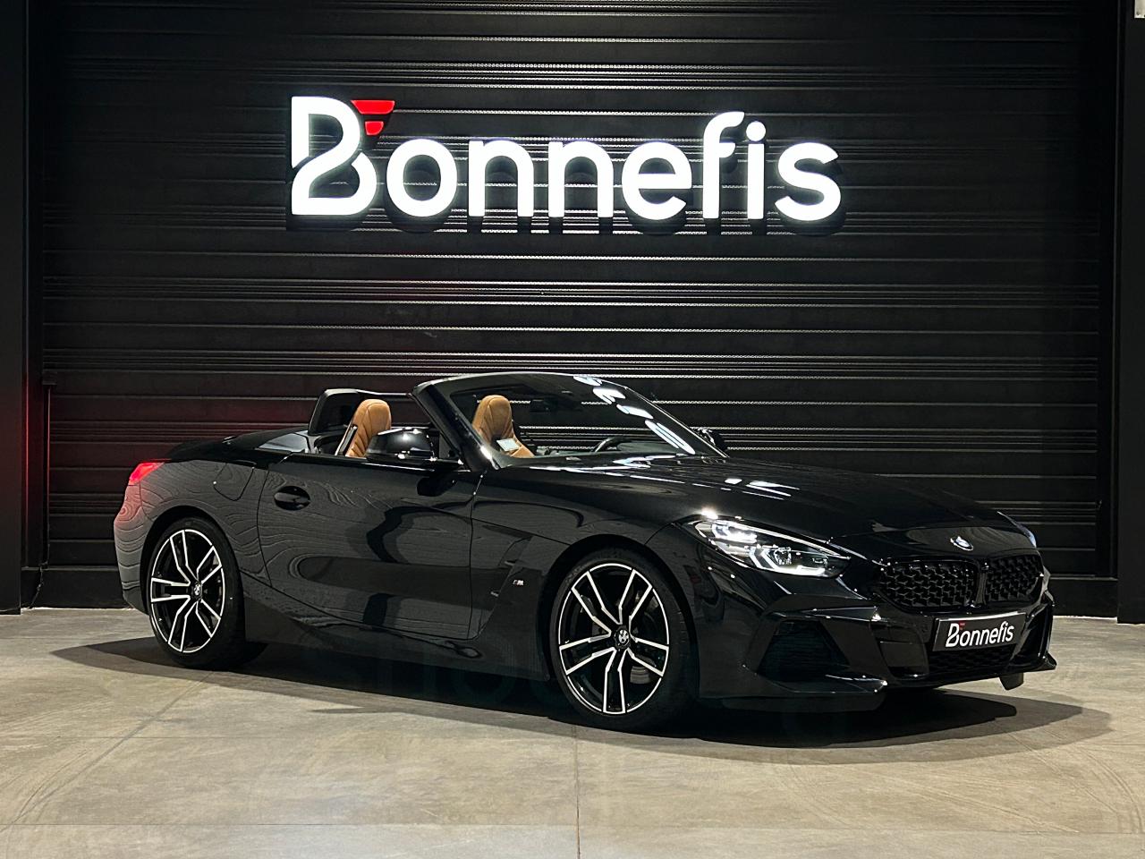 BMW Z4 S Drive 20i 197 Ch BVA8 G29 M Sport, extérieur noir métallisée ( 908 € ), intérieur cuir Vernasca Cognac avec sur-piqûres décoratives, 11 cv, 3 portes, première mise en circulation le 12/06/2019.