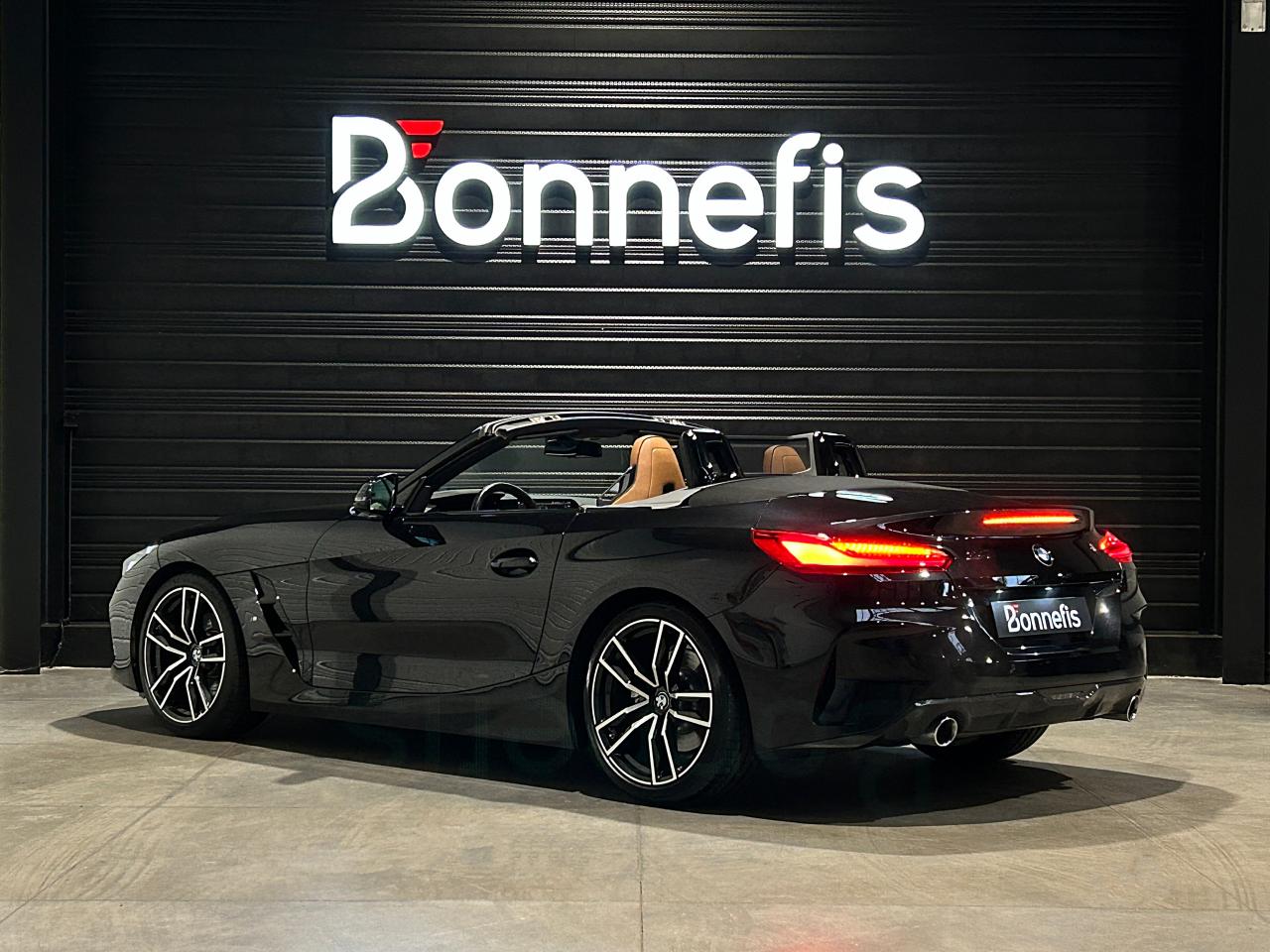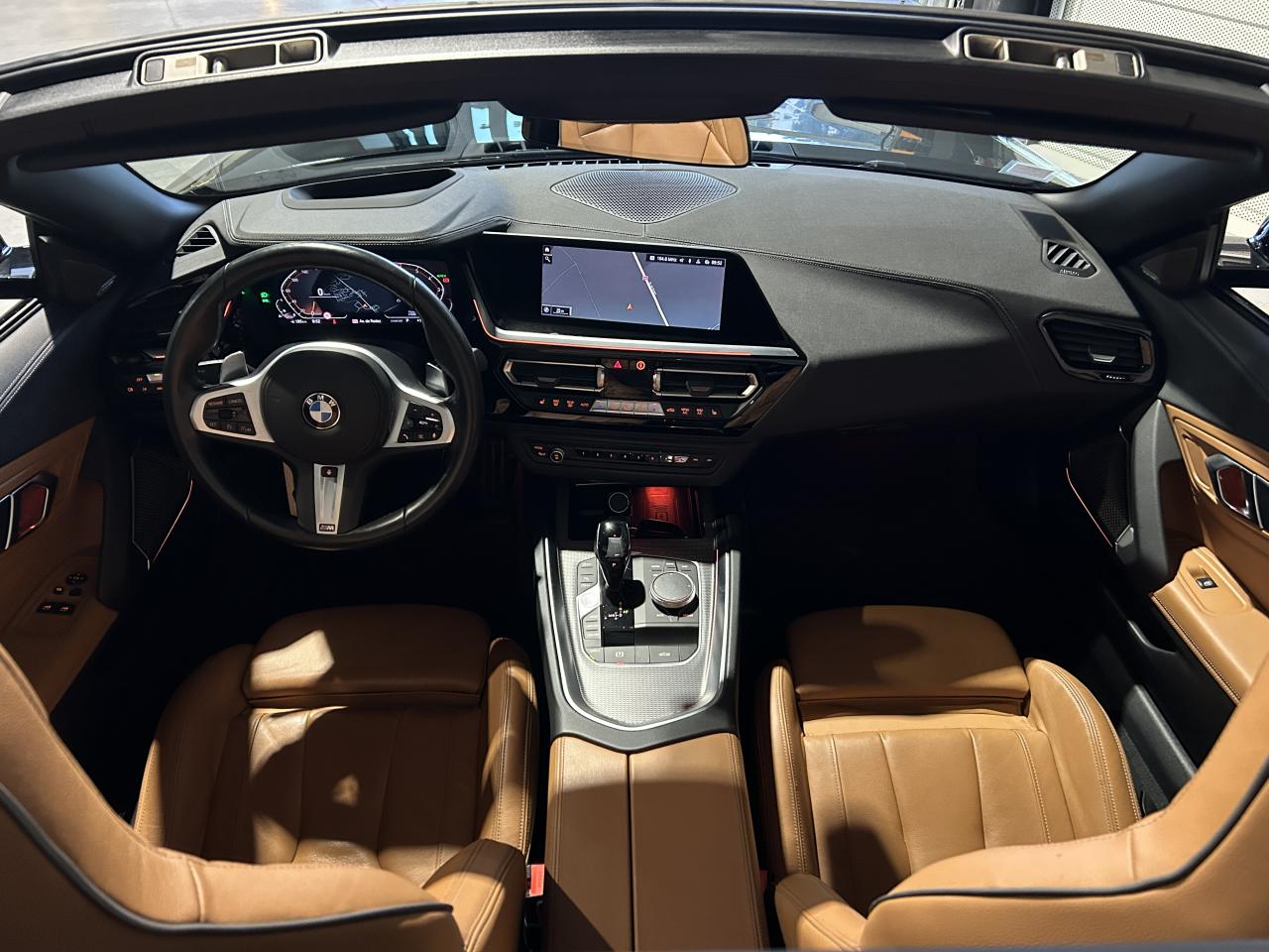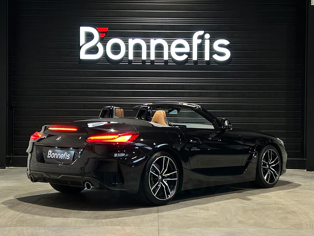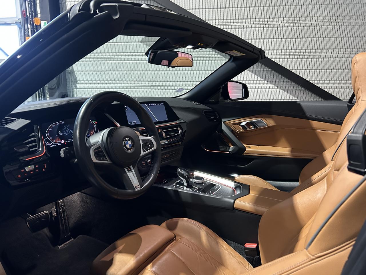 BMW Z4 S Drive 20i 197 Ch BVA8 G29 M Sport, extérieur noir métallisée ( 908 € ), intérieur cuir Vernasca Cognac avec sur-piqûres décoratives, 11 cv, 3 portes, première mise en circulation le 12/06/2019.
