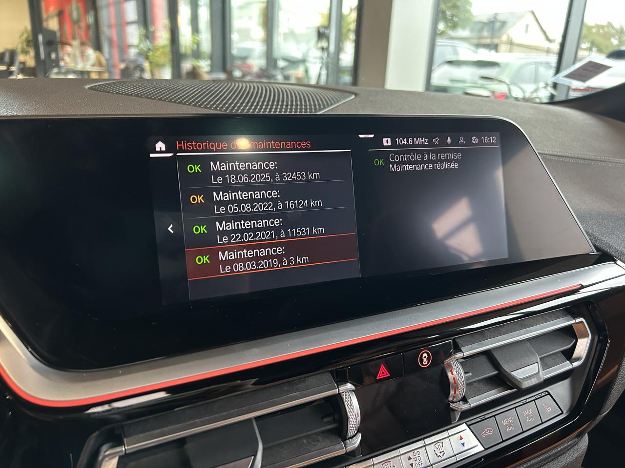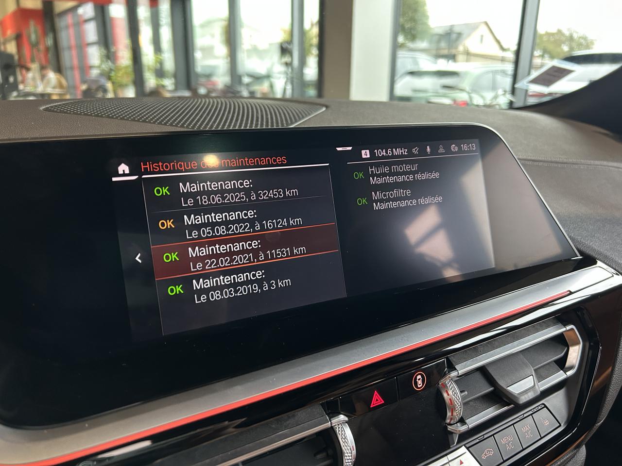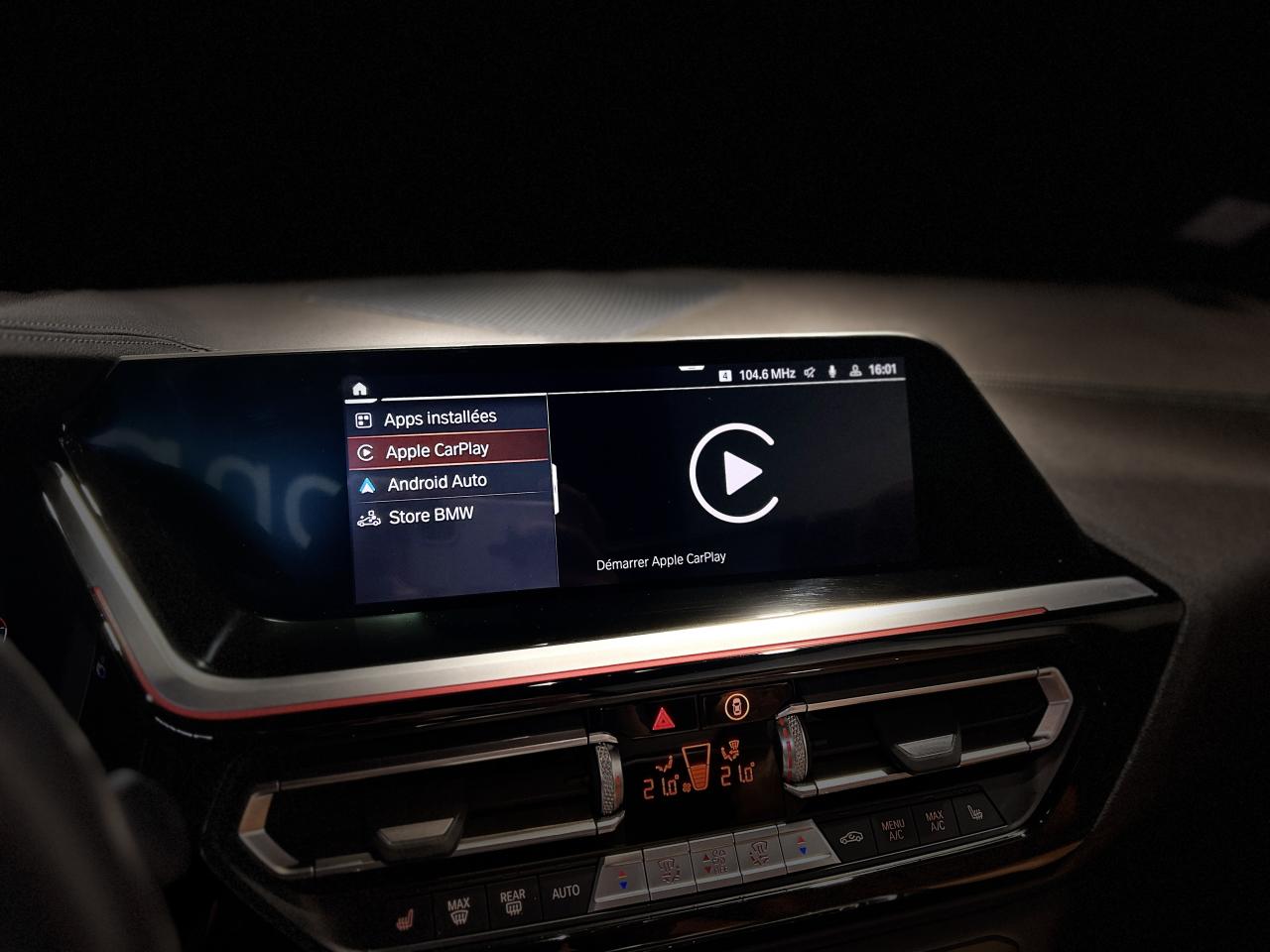 Nombreuses options : GPS, Apple Carplay, radars avants et arrières de détection d'obstacles, Affichage Tête Haute HUD Couleur ( 958 € ), Jantes en alliage léger 19" style 799 M à rayons doubles bicolores noires ( 833 € ), Drive Assist ( 750 € ), Accès confort avec préparation "BMW Digital Key" ( 500 € ), Alarme antivol ( 416 € ), Système Hi-Fi Harman Kardon avec amplificateur digital 464W et 17 haut-parleurs ( 375 € ), Connectivité avancée sans fil avec recharge par induction ( 341 € ), Sièges AV chauffants ( 333 € ), Sièges AV avec appui lombaire ajustable ( 225 € ), Tuner DAB avec réception radio numérique ( 275 € ), Volant chauffant ( 166 € ), Inserts décoratifs M Aluminium Tetragon ( 125 € ), BMW Live Cockpit Navigation Pro, Boîte de vitesses automatique Sport 8 rapports avec palettes au volant, Climatisation automatique bi-zone, Éclairage d’ambiance avec scénarios lumineux dynamiques, Pack Advanced Full LED, Régulateur de vitesse avec fonction freinage, Rétroviseur intérieur électrochrome, Rétroviseurs extérieurs électrochromes rabattables électriquement, Trappe à ski rabattable, ...