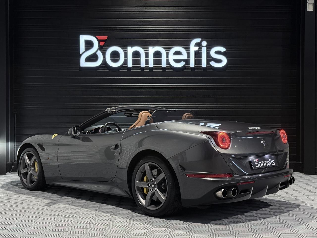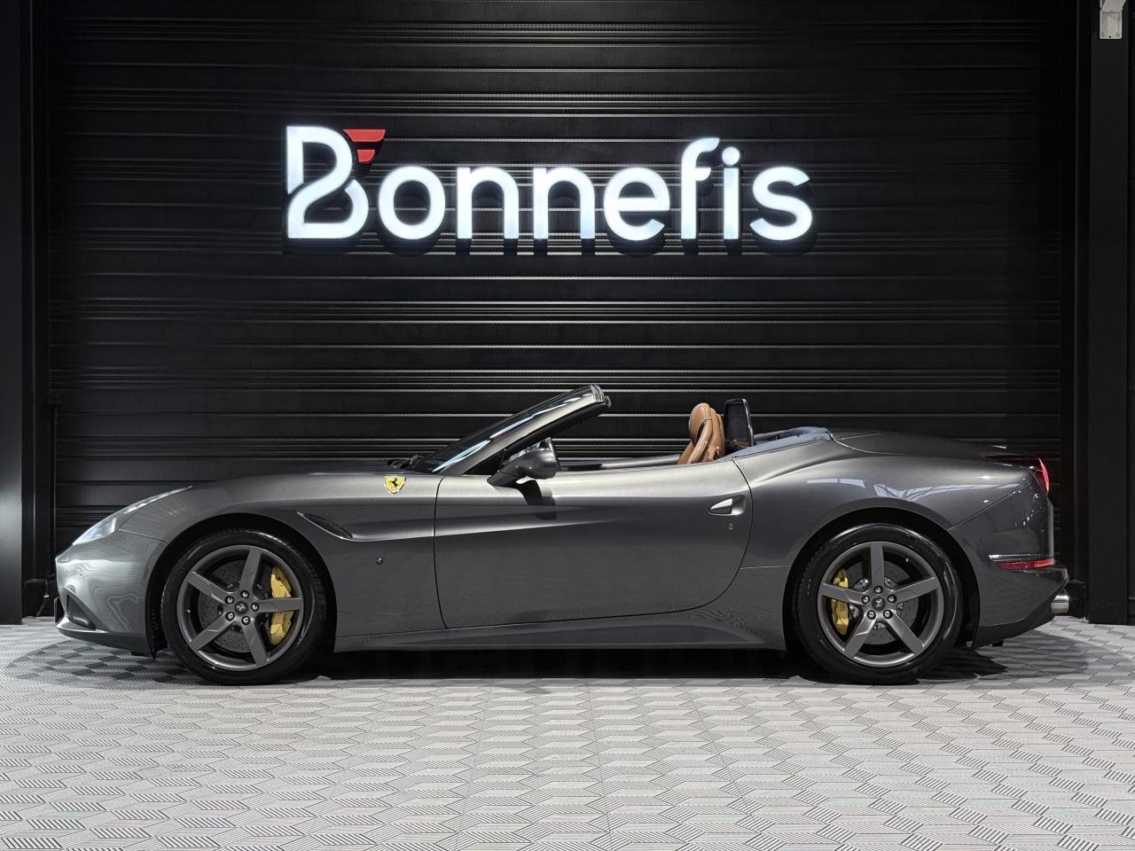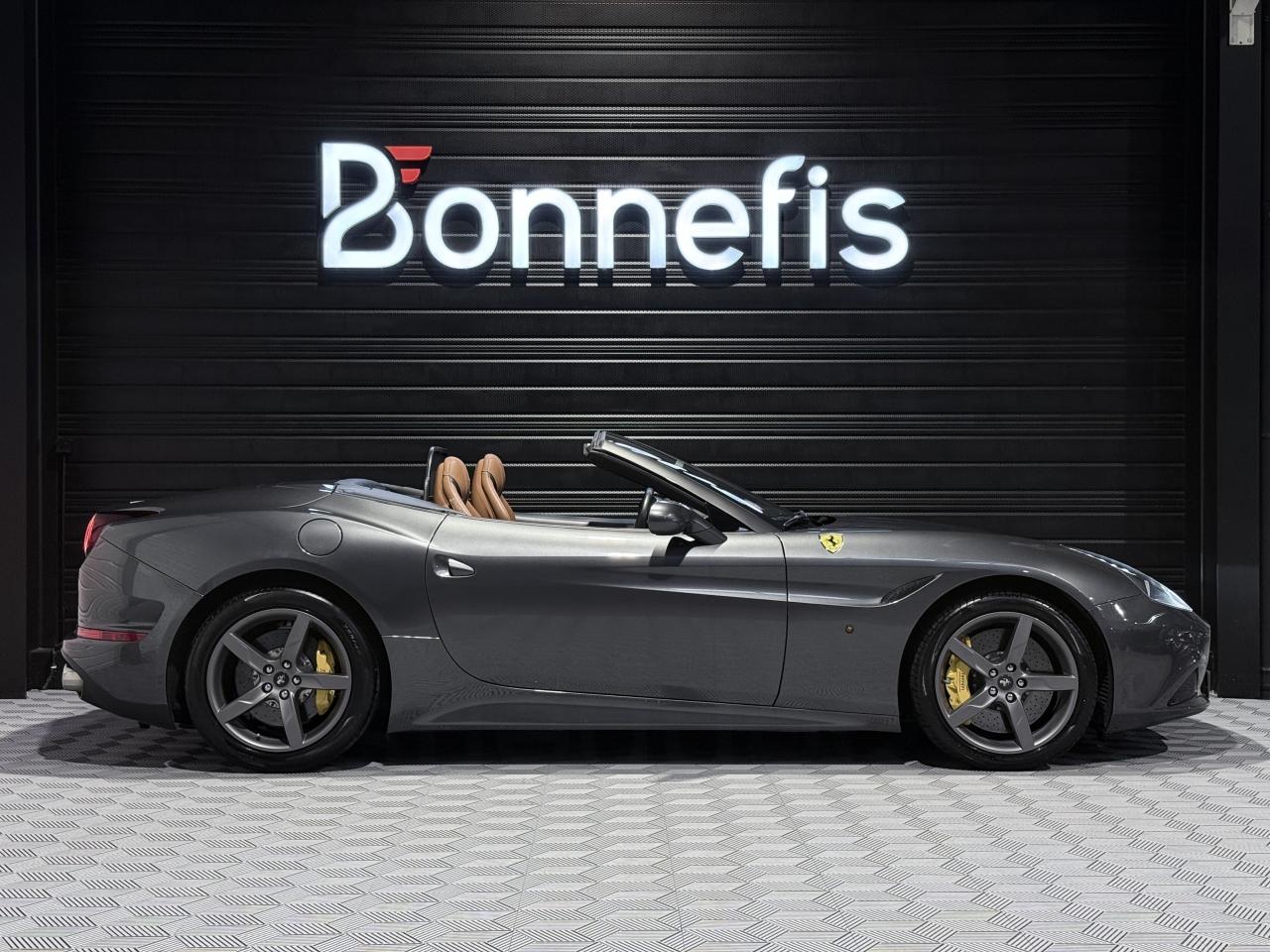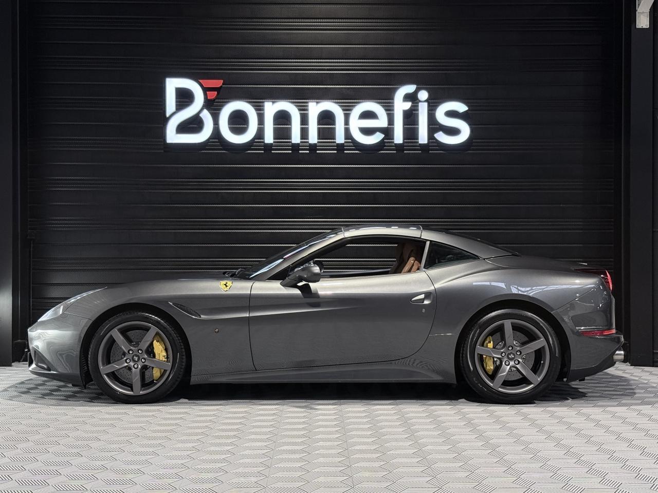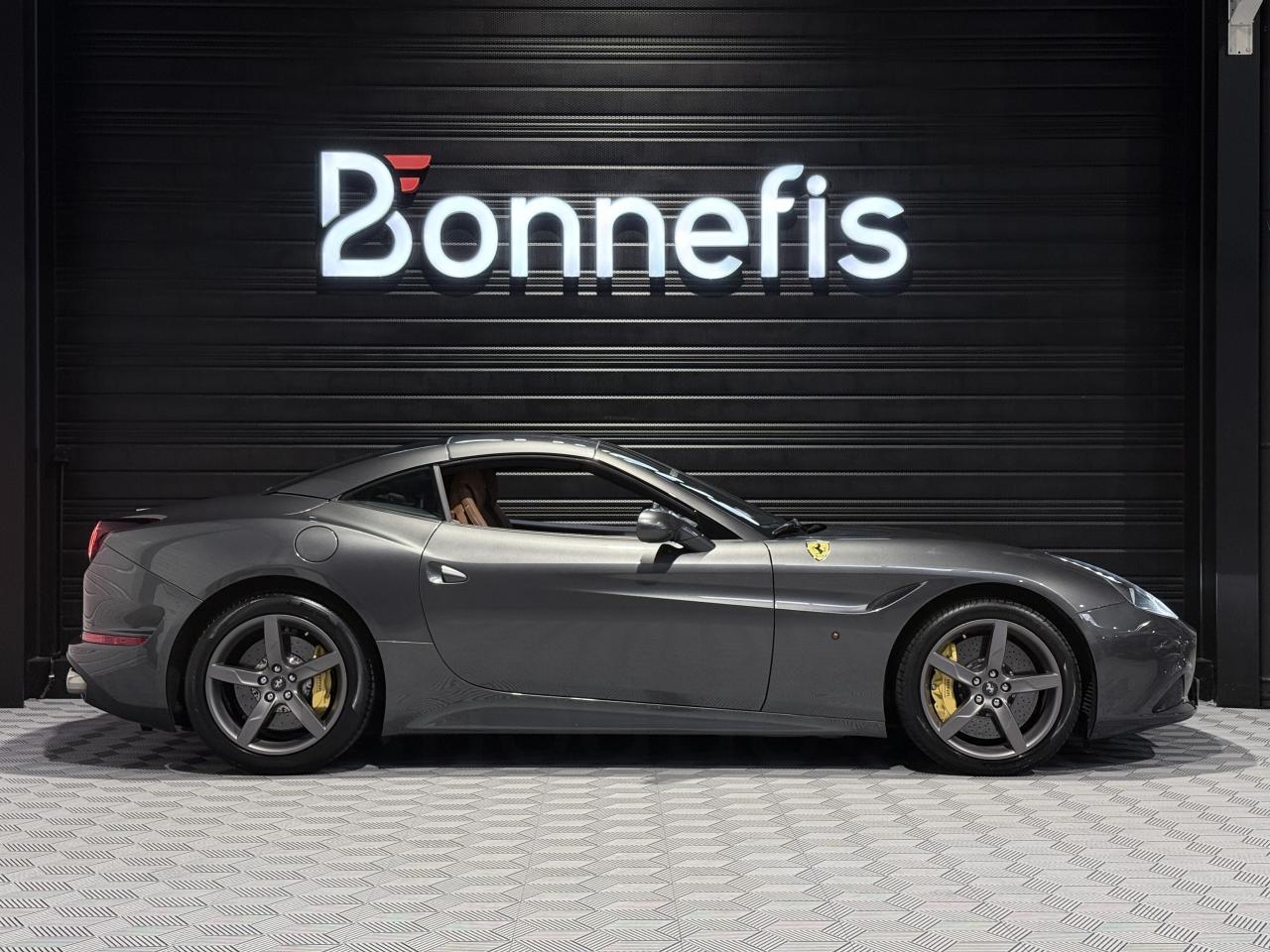 FERRARI CALIFORNIA T 3.9 V8 560Ch Phase 2 BVA, extérieur Gris métallisée ( Grigio Silverstone ), intérieur Marron ( Cuoio ), 47 cv, 2 portes, première mise en circulation le 27/05/2015.