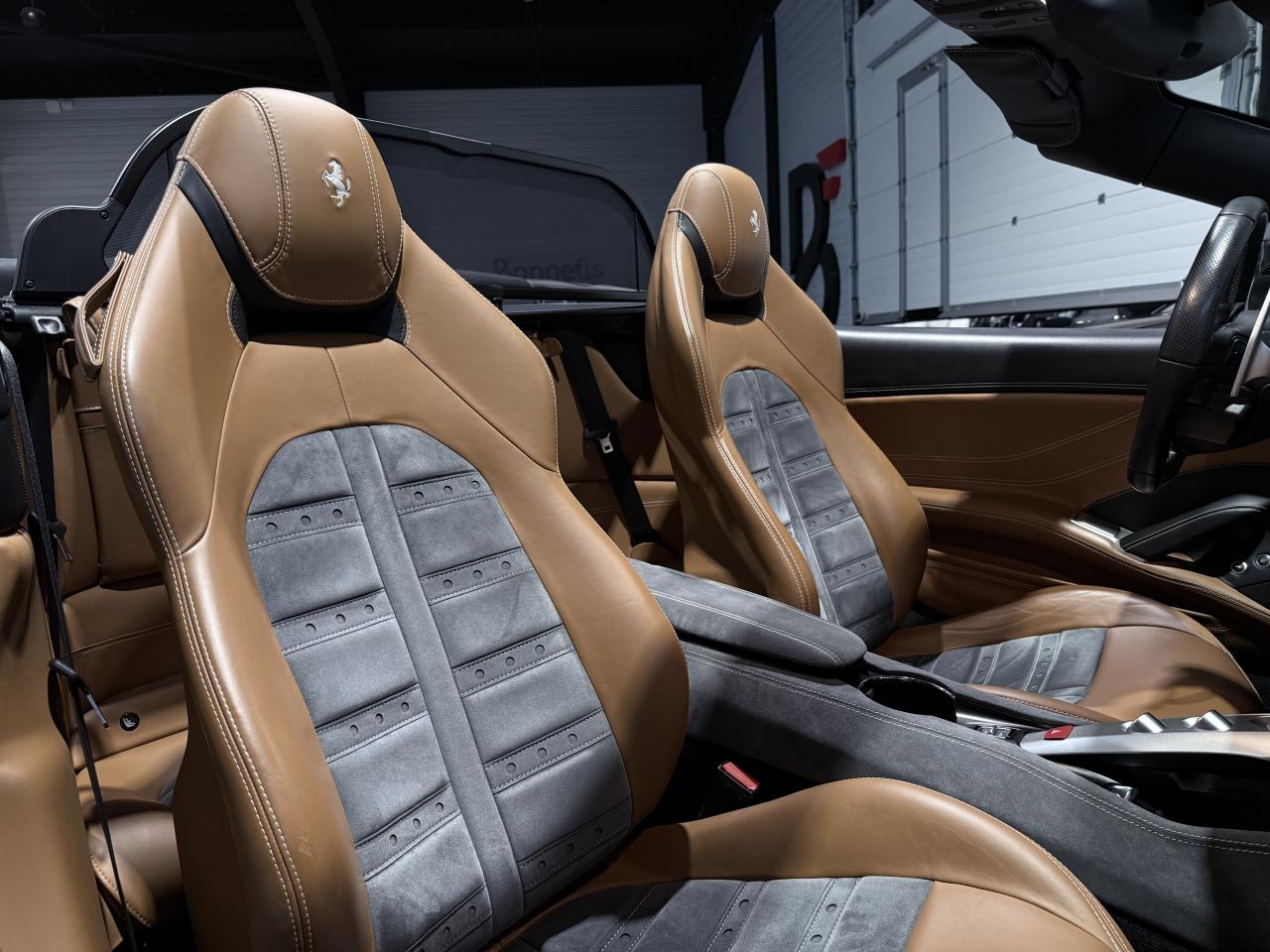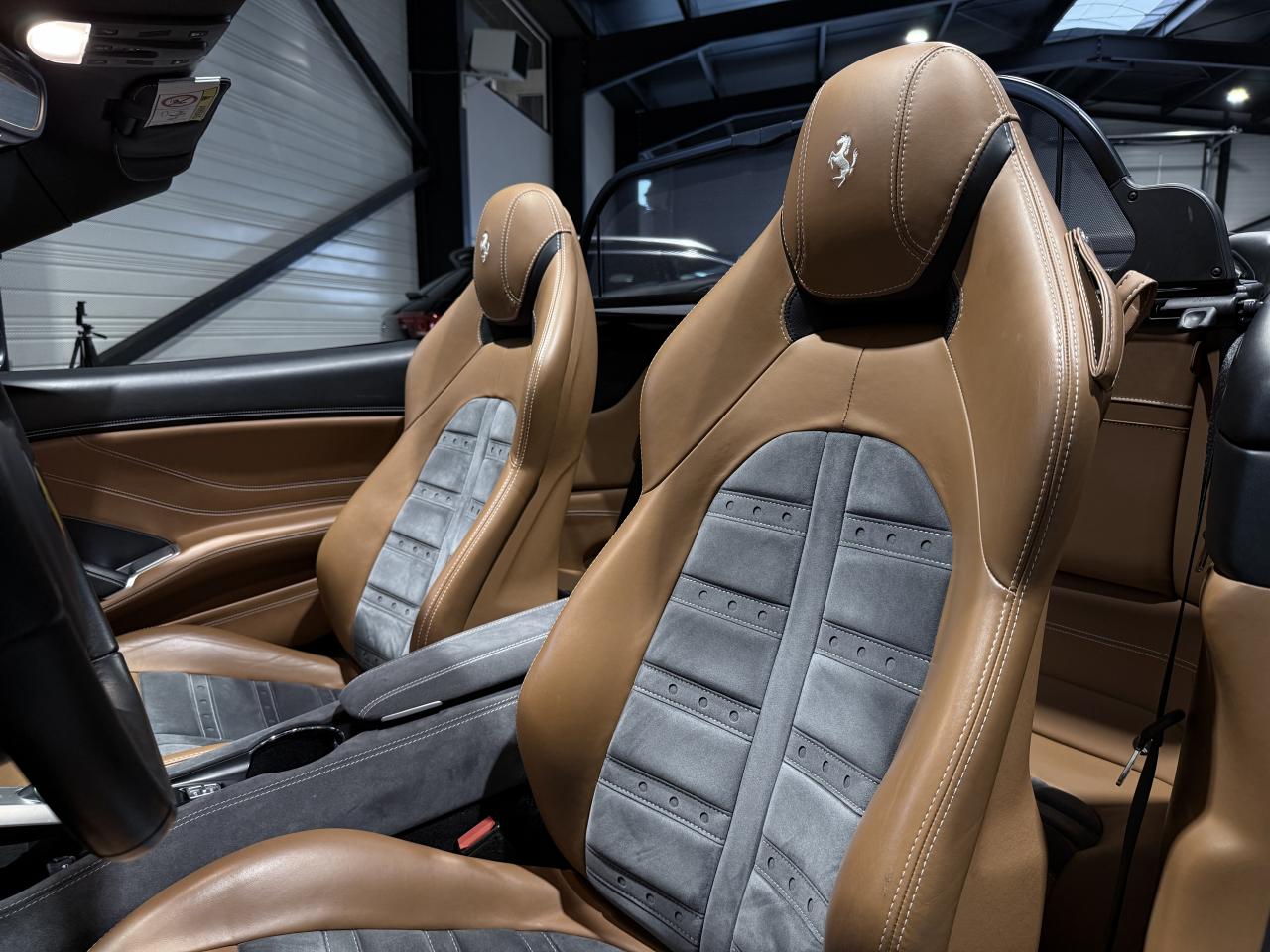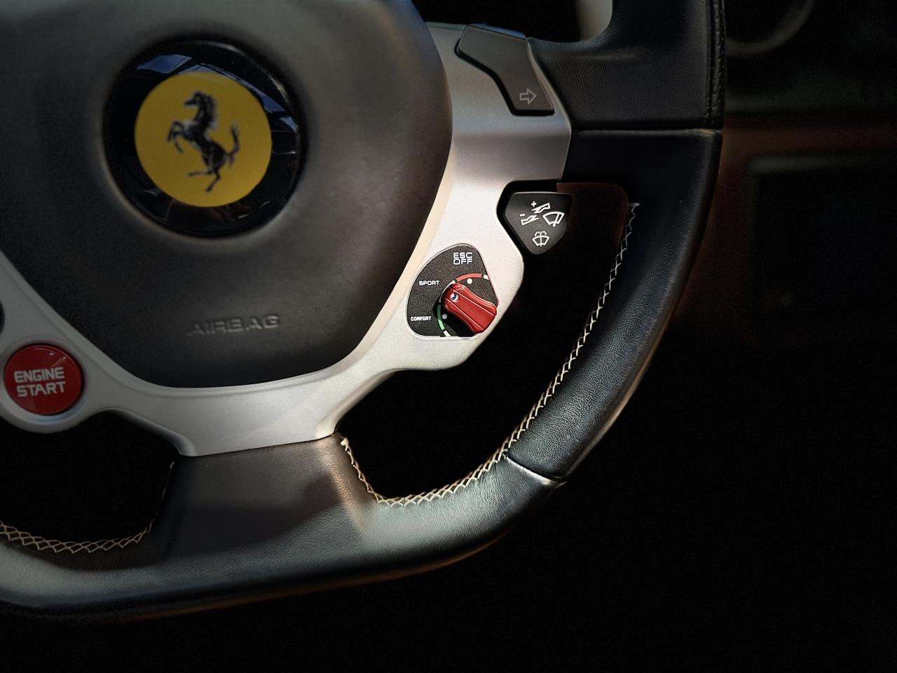 Nombreuses options : GPS, Caméra de parking AV et AR, radars avants et arrières de détection d'obstacles, Cache moyeu en fibre de Carbone, Cheval cabré brodé sur les reposes têtes, Contrôle de pression des pneus ( TPMS ), Couleur des tapis noir, Couleur sur demande pour coutures ( Bianco ), Ecussons Scuderia FERRARI sur les ailes AV, Etriers de frein céramique de couleur Giallo Modena ( Jaune ), Fond de compte-tours Blanc, Grille avant à profils chromés, Jantes 19" de couleur Grigio Cromato, Lecteur CD additionnel, Repose-pieds en Aluminium, Sièges de style Daytona, Sièges full électrique, Suspension magnétique Dual Mode, Système HELE ( High Emotion Low Emission ), Zone centrale des sièges en Alcantara, ...
