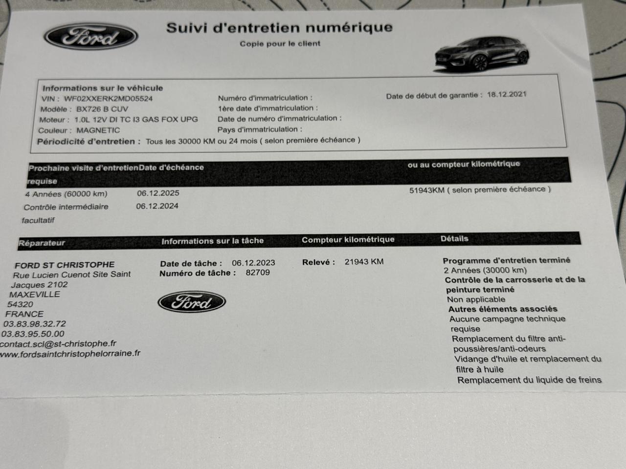 - 1er entretien fait le 06/12/2023 à 21 943Km chez Ford. ( Vidange moteur + filtre à poussière + liquide de frein )