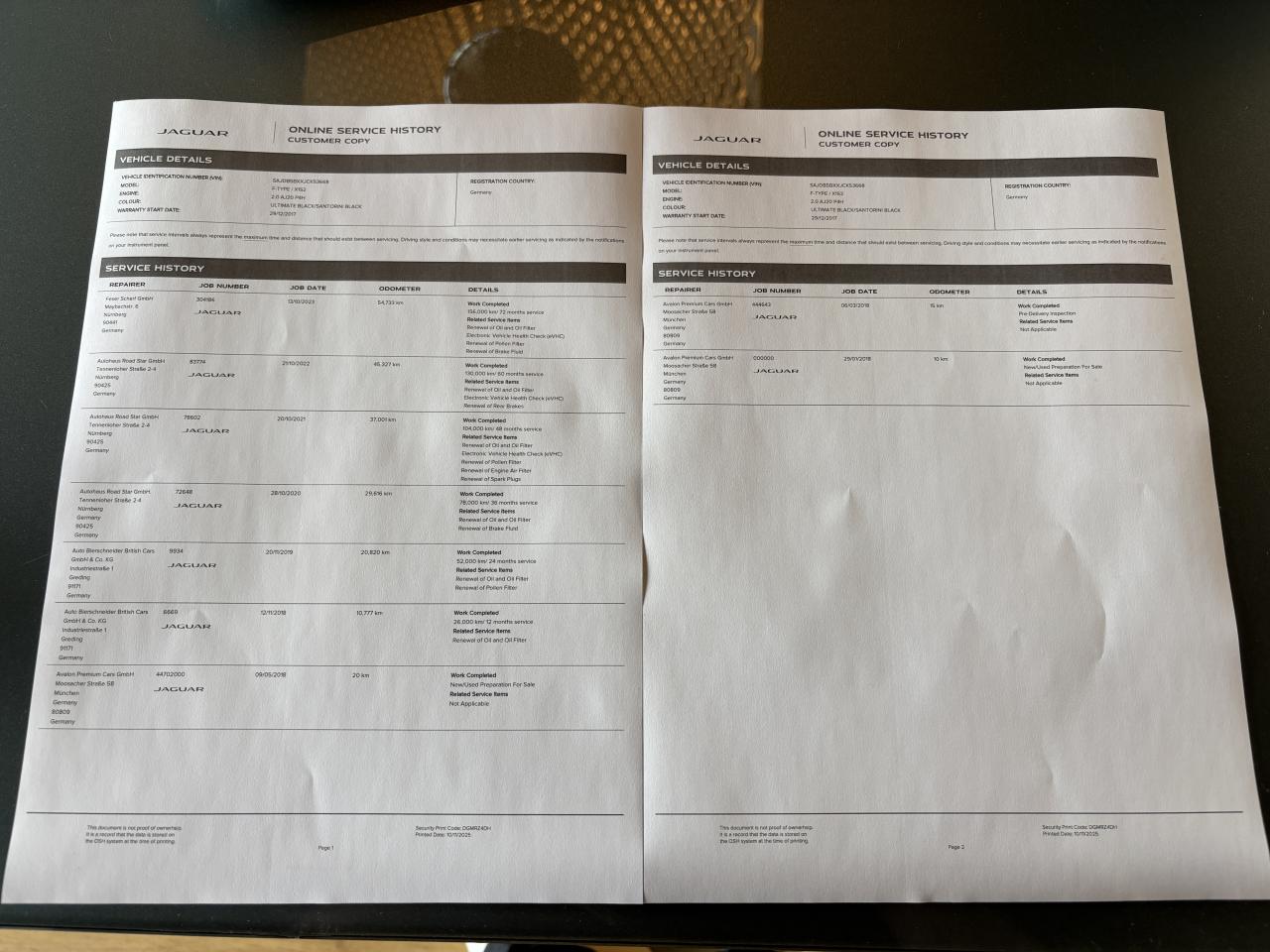 - 7ème entretien fait le 13/10/2023 à 54 733Km chez Jaguar. ( Vidange moteur + liquide de frein + filtre à pollen )