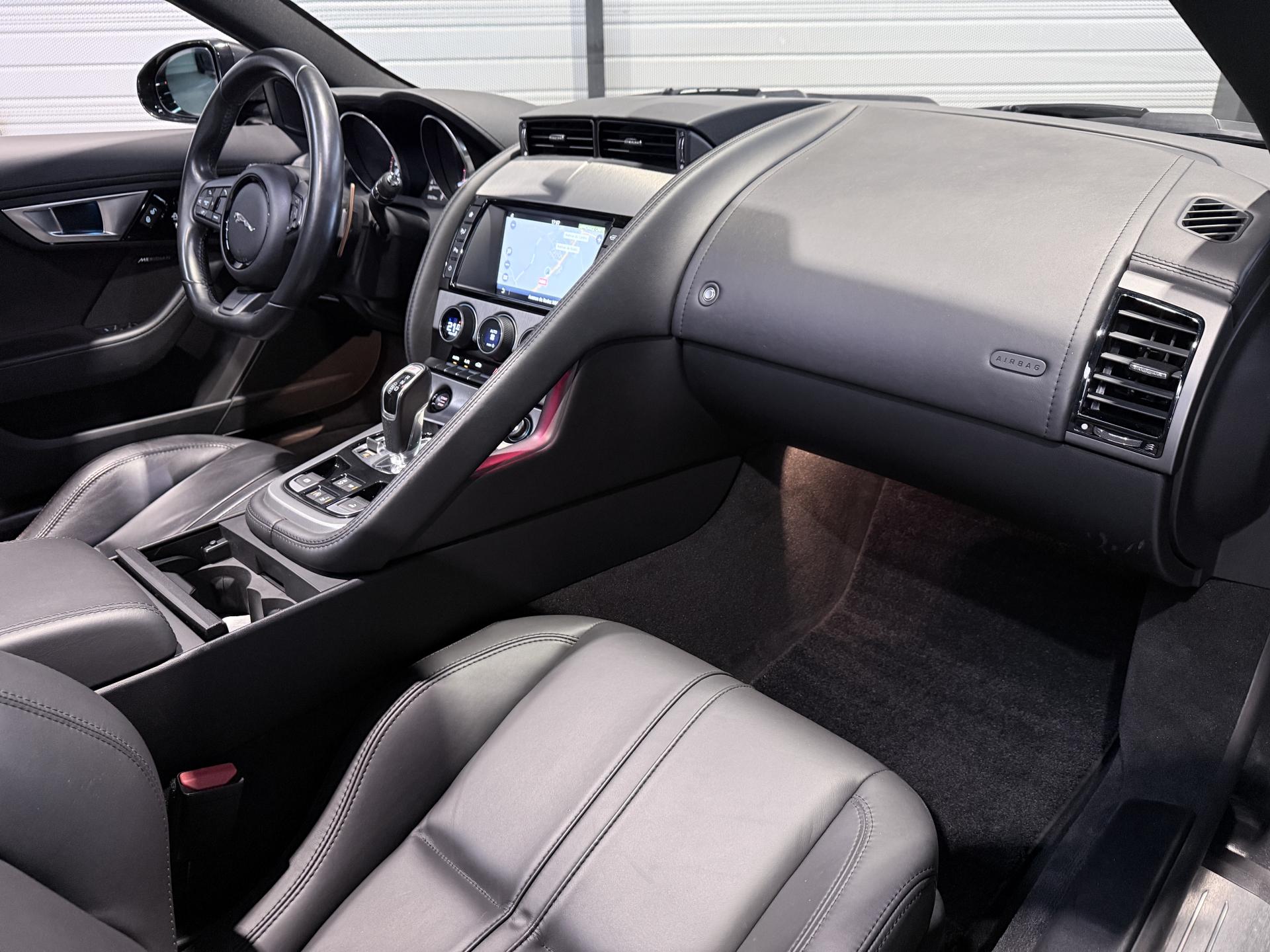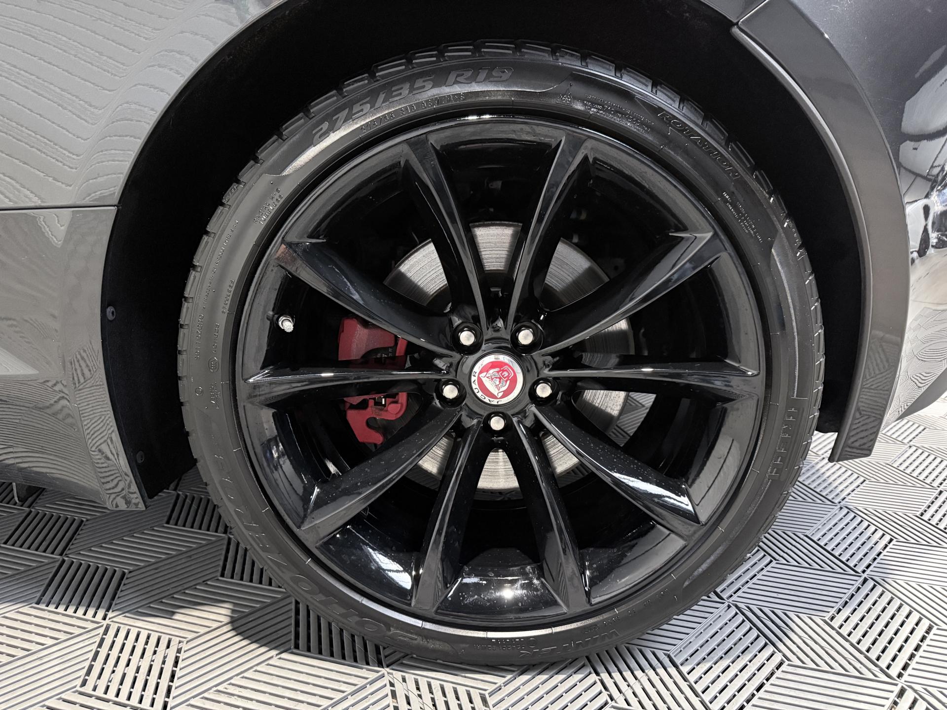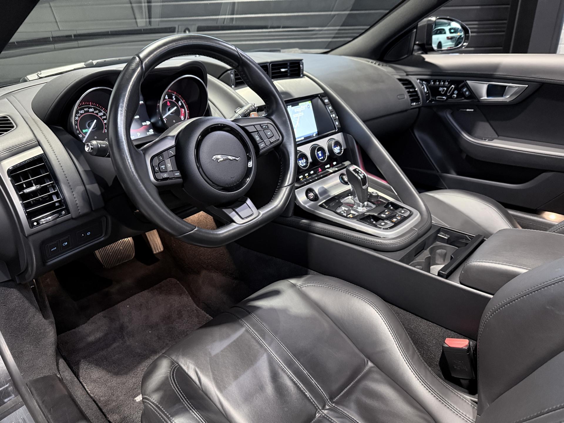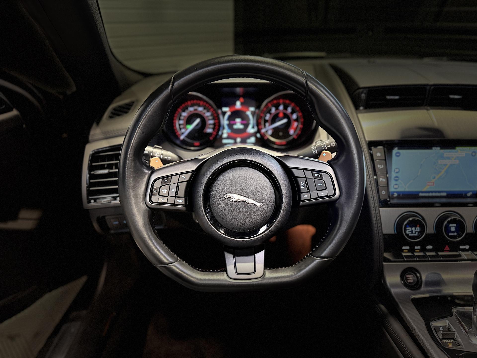 JAGUAR F-Type Cabriolet 3.0 V6 340Ch Essence Suralimenté BVA8, extérieur Gris ( Storm Grey métallisée ) ( 1 090 EUR ), intérieur Noir ( sellerie Performance habillés de cuir premium noir ) ( 2 420 EUR ), 23 cv, 2 portes, première mise en circulation le 30/06/2015.