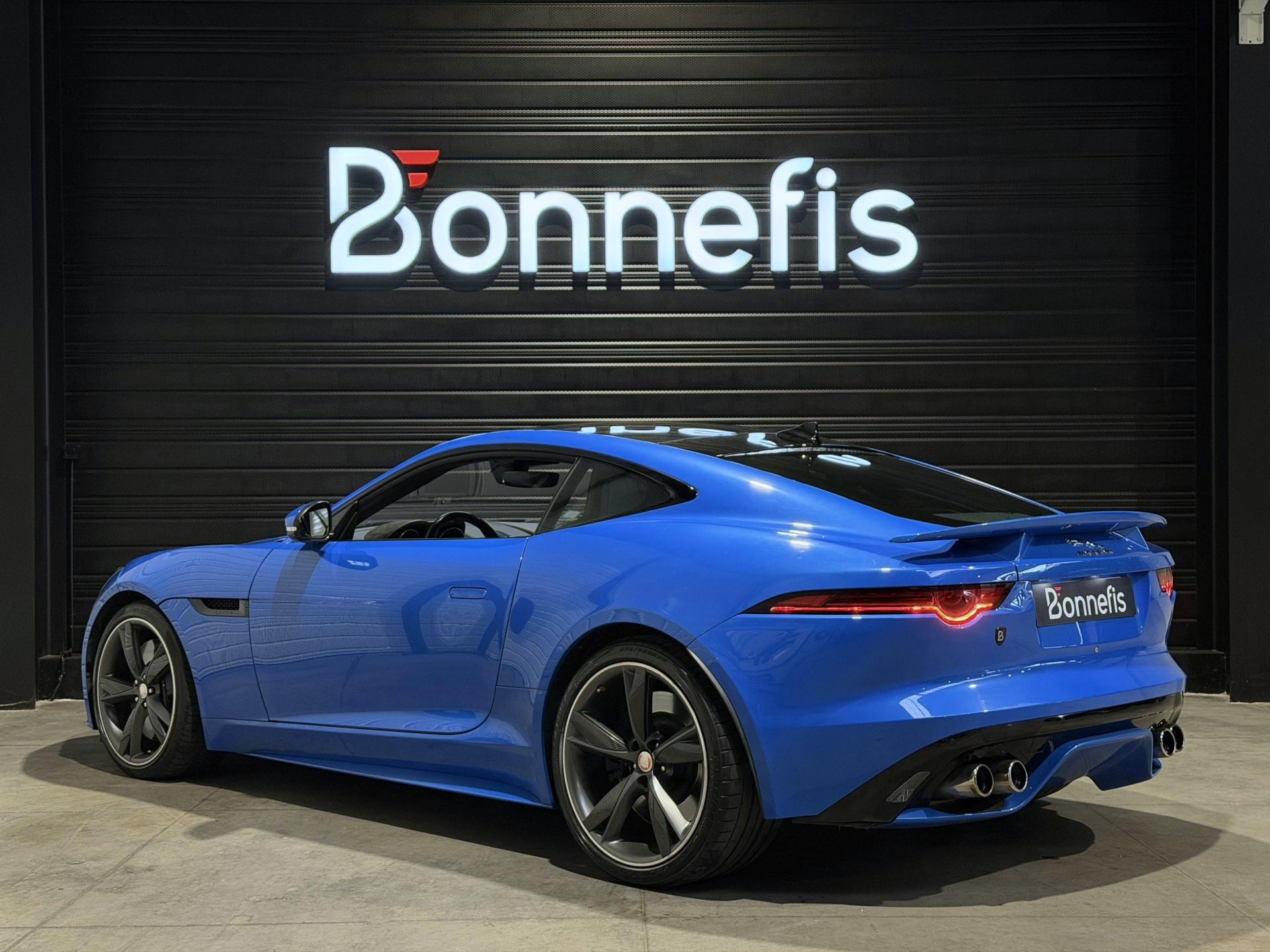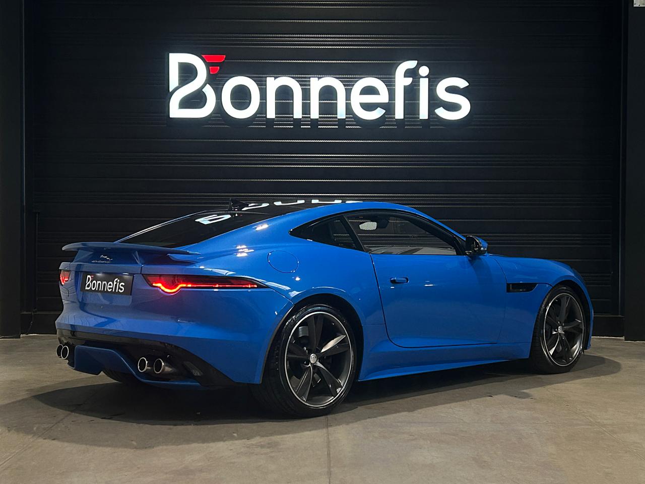 Jaguar F-Type Coupé Phase 2 R 5.0 V8 550Ch Essence suralimenté BVA8 AWD, 47 cv, extérieur bleu ultra, première mise en circulation le 01/07/2017.