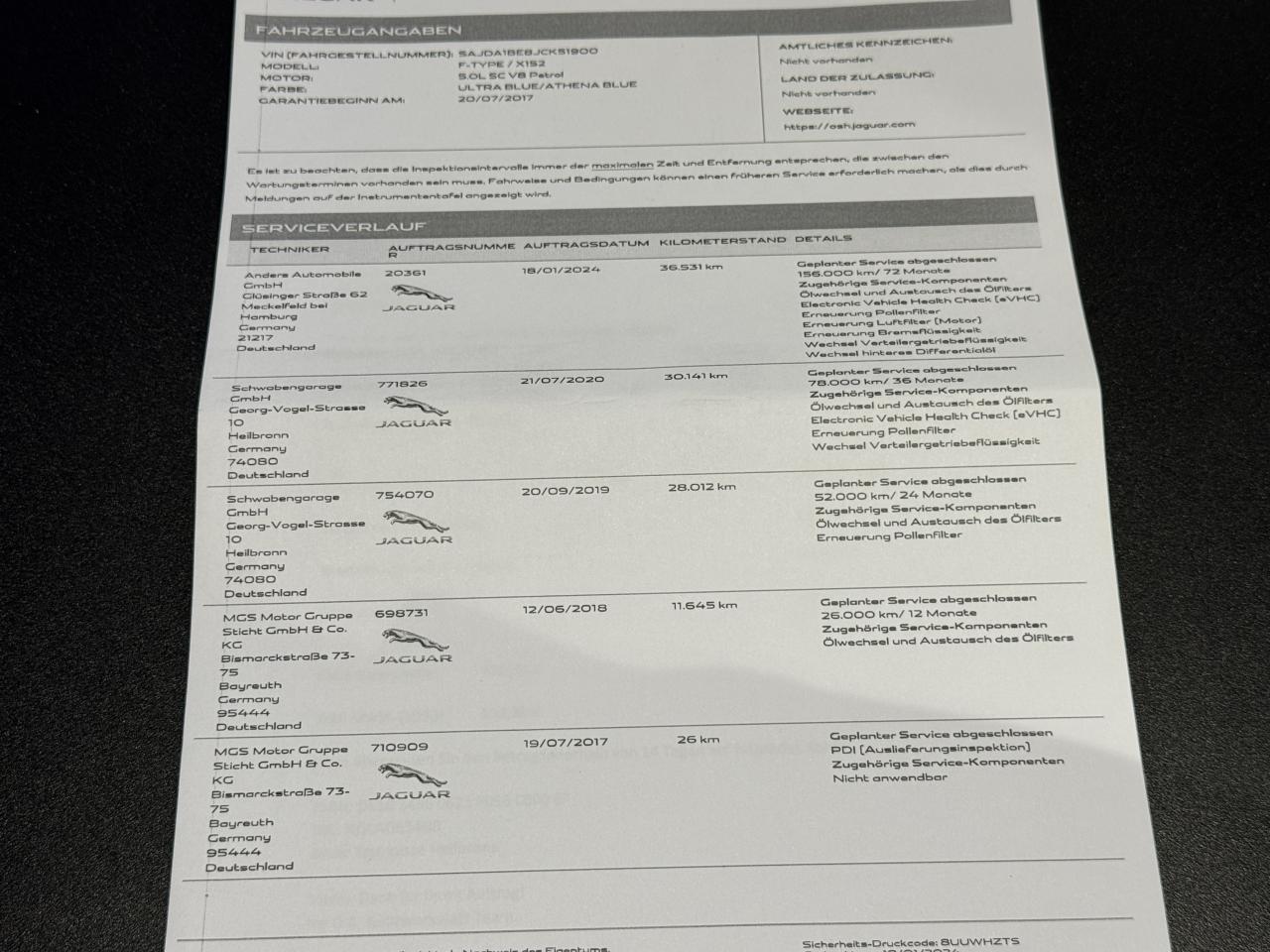 - 1er entretien fait le 19/07/2017 à 26Km chez Jaguar. ( Contrôle à la livraison )