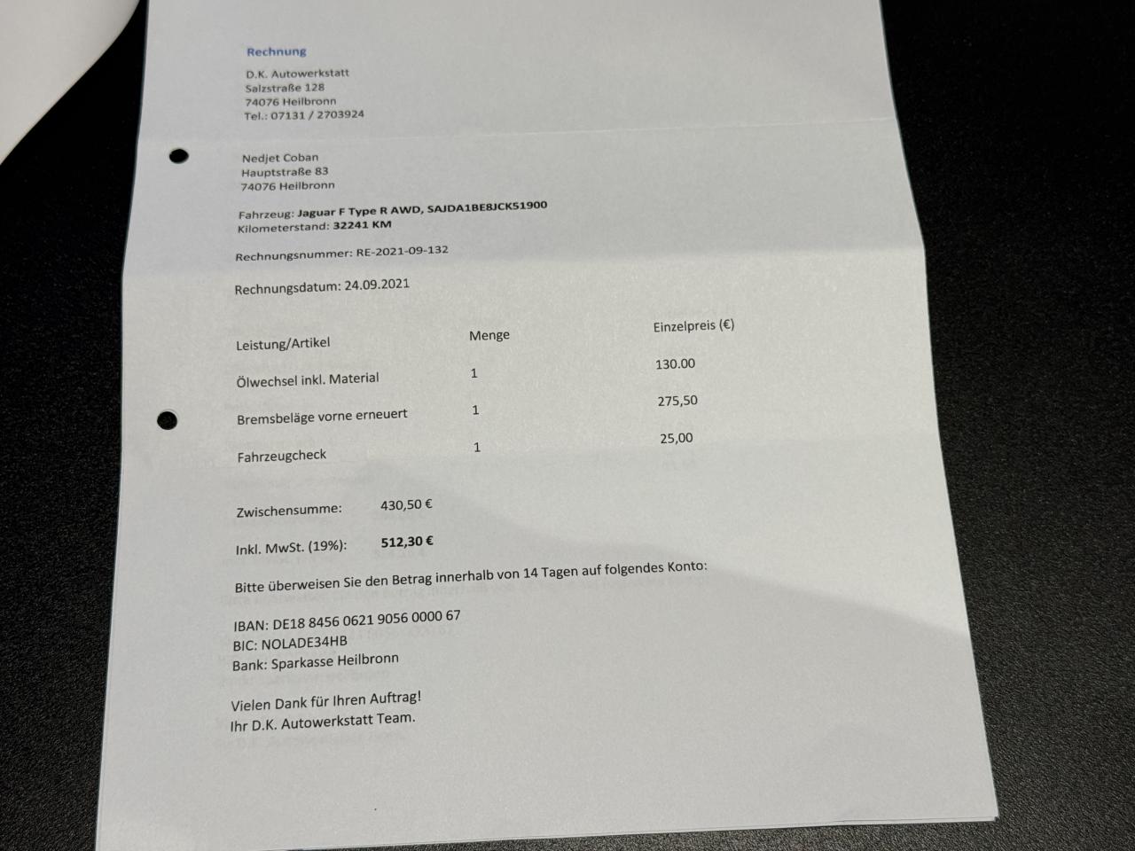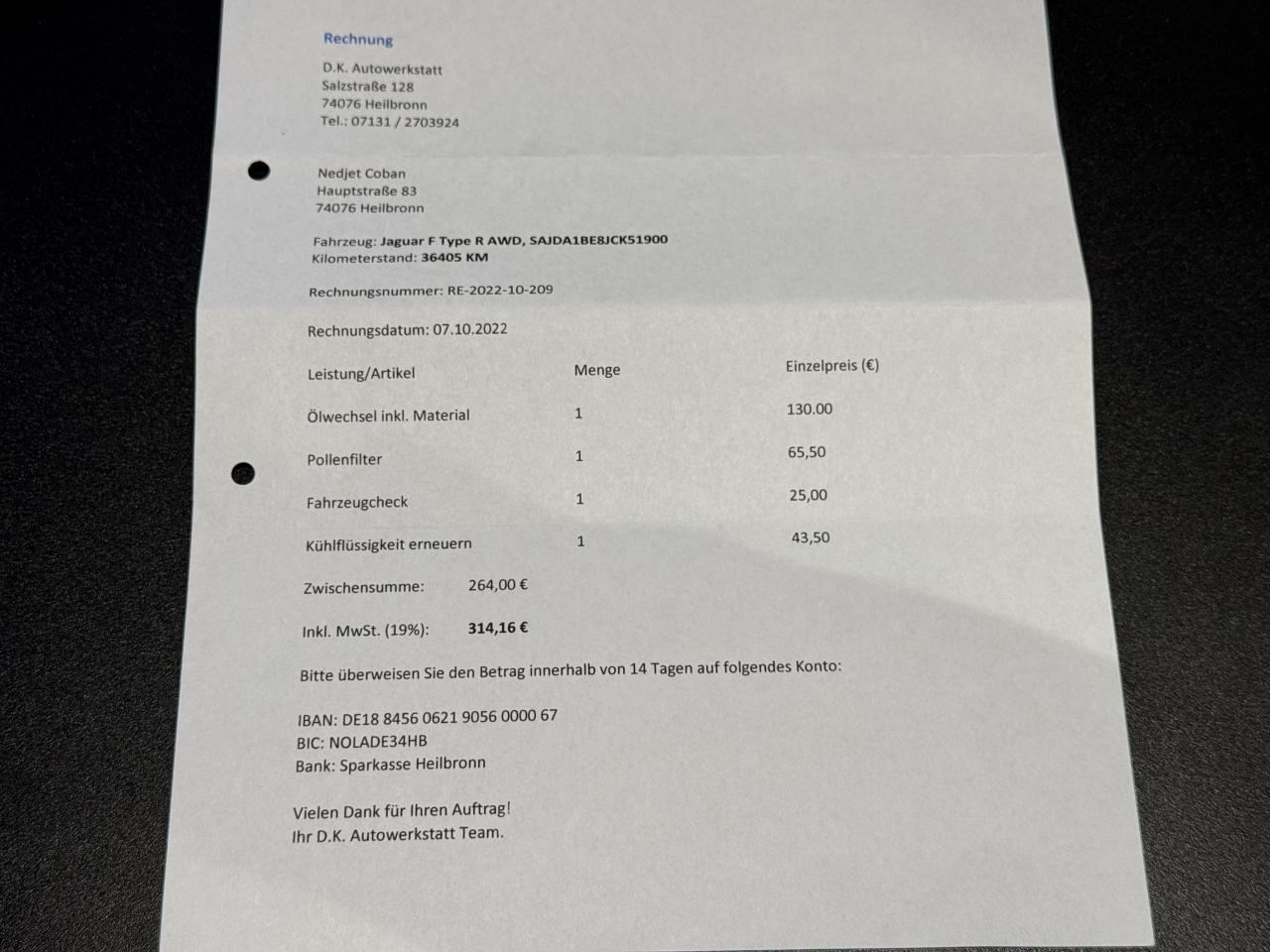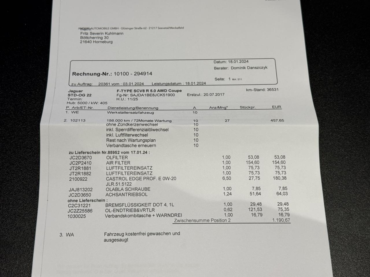 - 7ème entretien fait le 18/01/2024 à 36 531Km chez Jaguar. ( Vidange moteur + liquide de frein + filtre à pollen + filtre à air + vidange de boite + vidange du pont )