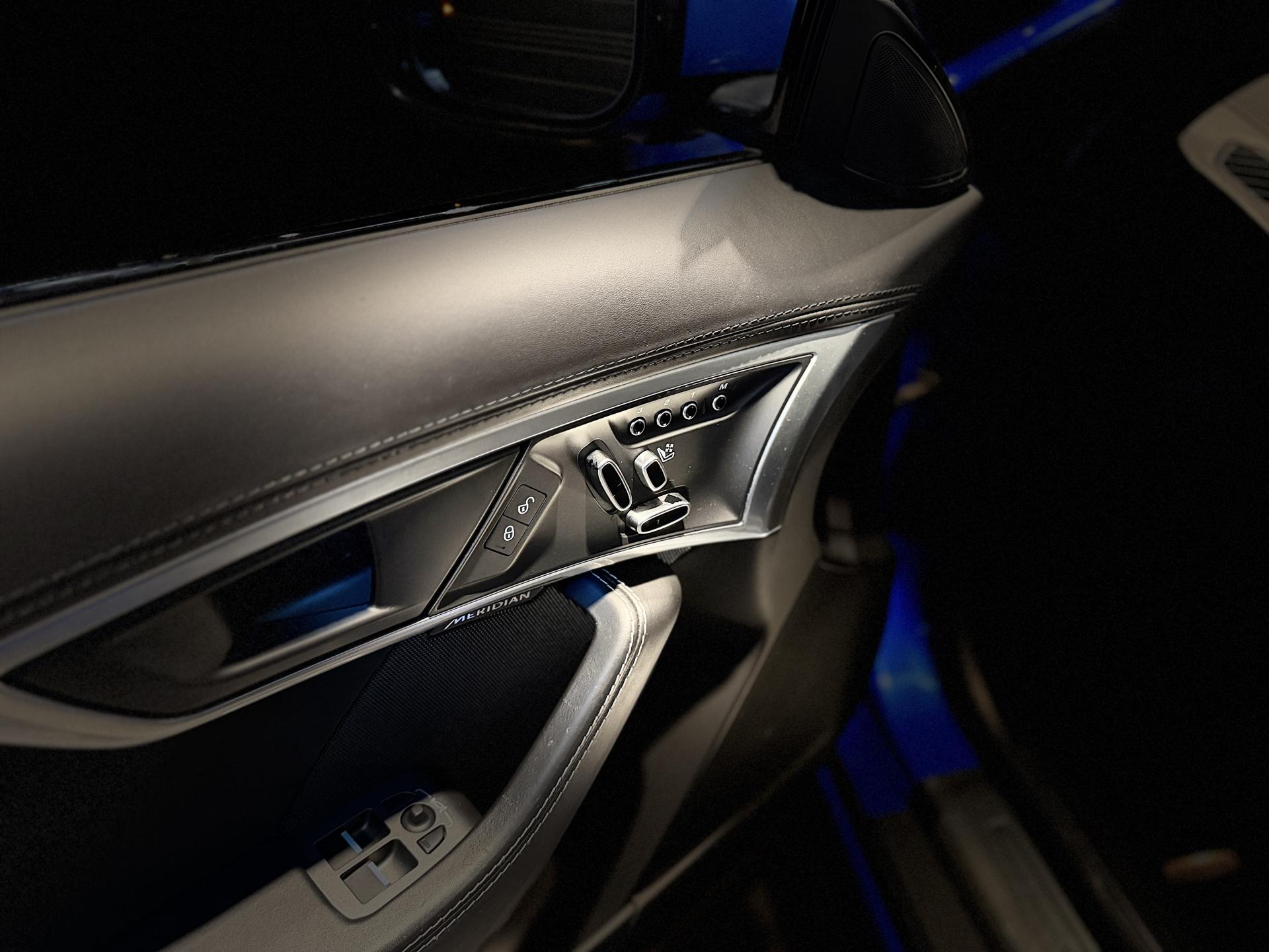 Nombreuses options : GPS ( 2 970 € ), caméra de recul, radars avants et arrières de détection d'obstacles, système audio Meridian 380W avec 10 haut-parleurs et caisson de basse ( 1 400 € ), système de surveillance des angles morts avec détection de trafic arrière ( 760 € ), commande électrique du coffre ( 520 € ), détecteurs d'obstacles arrière ( 460 € ), détecteurs d'obstacles avant ( 460 € ), sièges chauffants ( 430 € ), régulateur de vitesse ( 370 € ), siège conducteur et passager électrique à mémoire, volant chauffant, échappement sport, toit panoramique, avertisseur de franchissement de ligne, reconnaissance de signalisation routière, feux de route auto, sièges sport, ...
