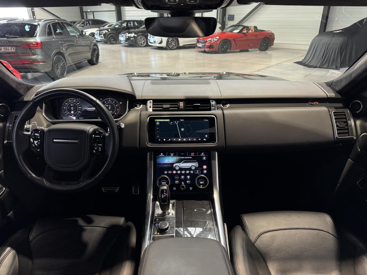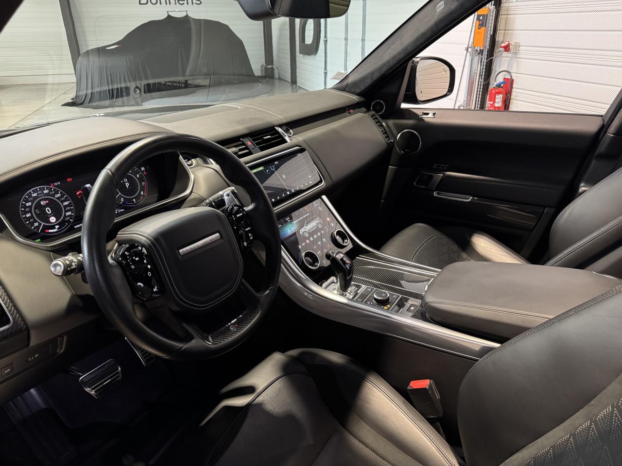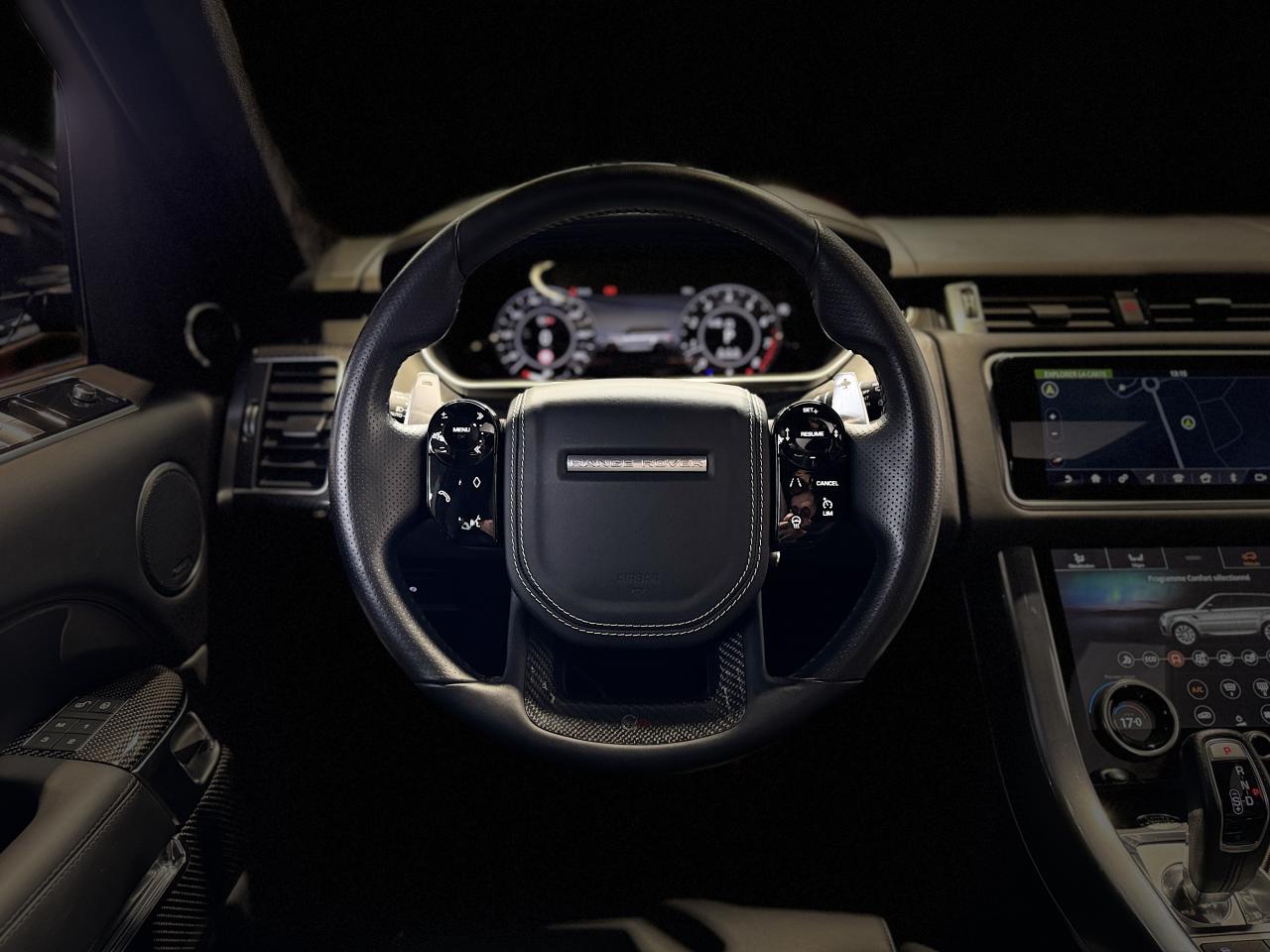 Nombreuses options : GPS, caméra périphériques à 360°, Android Auto, Apple CarPlay, radars avants et arrières de détection d'obstacles, Audio Meridian Signature Reference 1 700 W ( 5 036 € ), Toit ouvrant panoramique ( 2 373 € ), Couvre-moteur en fibre carbone ( 2 098 € ), Régulateur de vitesse adaptatif avec assistance embouteillage ( 2 098 € ) ( ACC / Active Cruise Control ), Finition fibre de carbone étendue dans les contre-portes ( 1 554 € ), Affichage tête haute à LED ( 1 364 € ), Phares Pixel-Laser LED adaptatifs avec signature LED ( 1 234 € ), Caméras panoramiques ( 840 € ), Climatisation automatique 4 zones ( 683 € ), Sièges AV chauffants et ventilés, AR chauffants ( 704 € ), Fermeture assistée des portières ( 630 € ), Vitrage AR fumé ( 514 € ), Réfrigérateur dans la console centrale AV ( 378 € ), Volant chauffant ( 211 € ), Ionisation de l'air dans l'habitacle ( 124 € ), Jantes 22'' Style 5083 Gloss Black ( 3 148 € ), Colonne de direction ajustable électriquement, Cuir étendu (milieu du tableau de bord et haut des portières), Eclairage d'ambiance configurable, Essuie-glace automatiques, Etriers de freins rouges SVR, Pédalier finition Bright Metal, Pavillon Suedine, Poignées de portes couleur carrosserie, Reconnaissance des panneaux de signalisation avec régulateur de vitesse intelligent, Seuils de portes avec marquage Range Rover, Sièges en cuir Windsor, Sièges AV SVR Performance réglables électriquement en 16x16 directions avec mémorisation, Suspension pneumatique à gestion électronique avec Dynamique Response, Toit couleur carrosserie, ...
