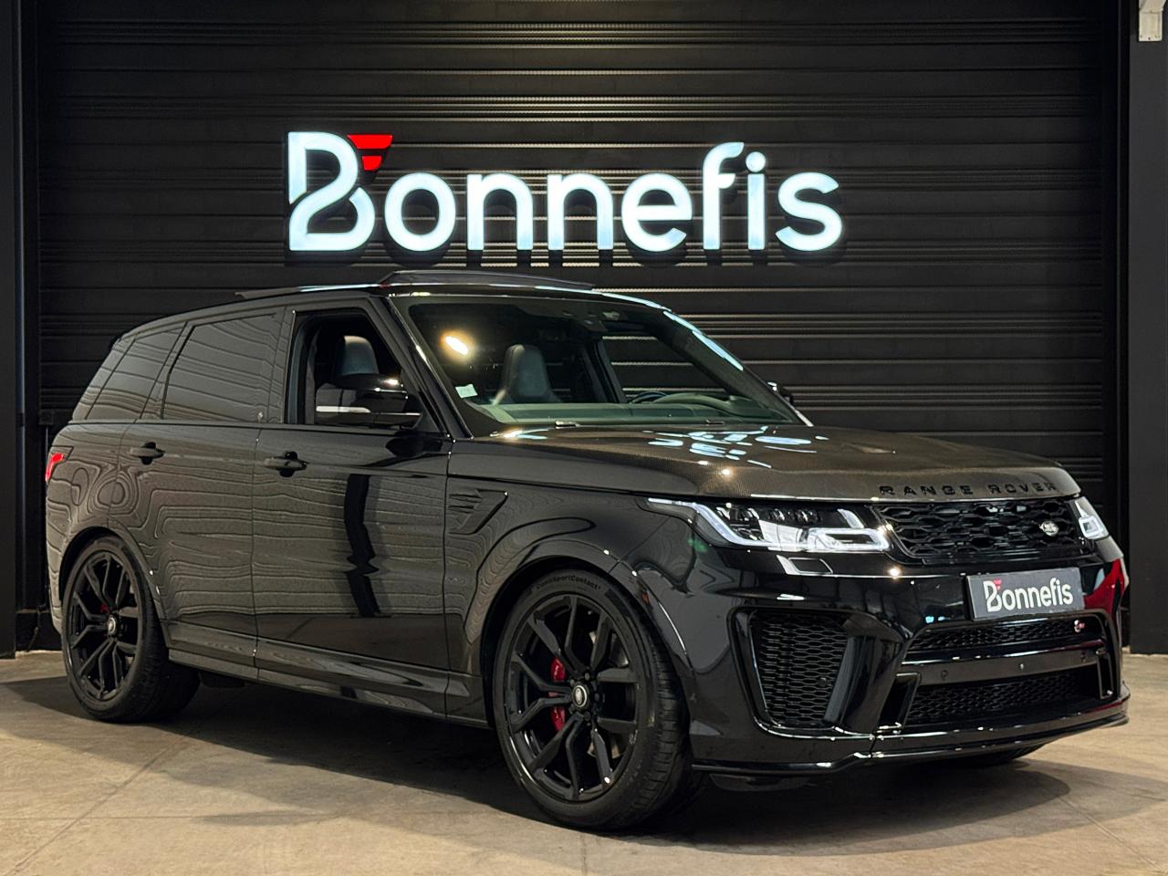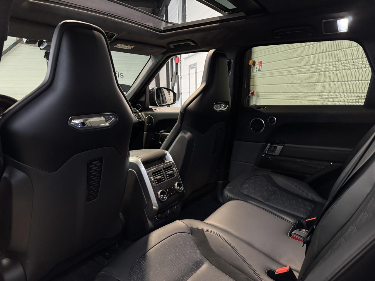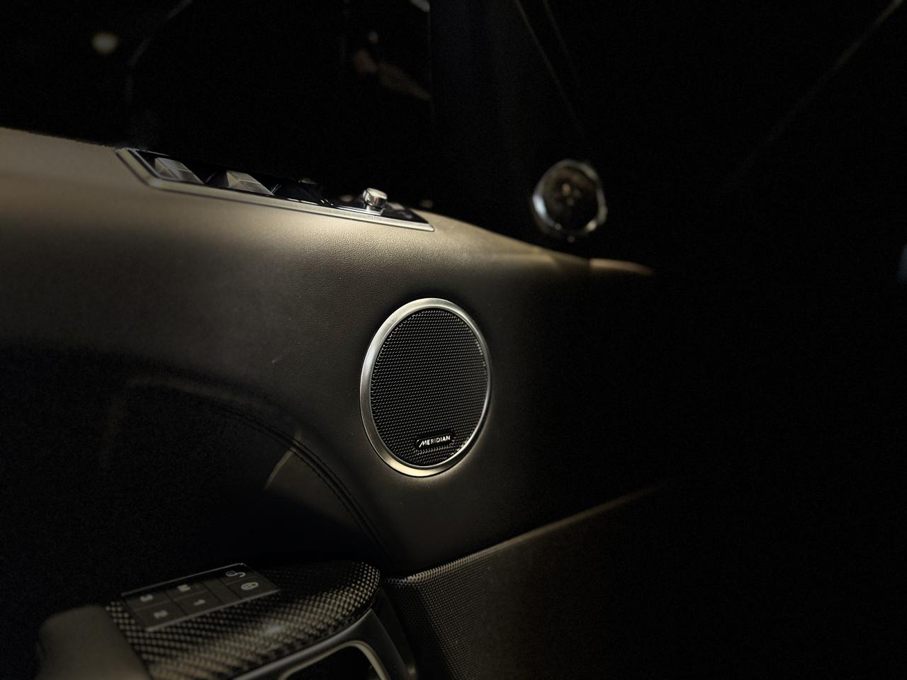 Nombreuses options : GPS, caméra périphériques à 360°, Android Auto, Apple CarPlay, radars avants et arrières de détection d'obstacles, Audio Meridian Signature Reference 1 700 W ( 5 036 € ), Toit ouvrant panoramique ( 2 373 € ), Couvre-moteur en fibre carbone ( 2 098 € ), Régulateur de vitesse adaptatif avec assistance embouteillage ( 2 098 € ) ( ACC / Active Cruise Control ), Finition fibre de carbone étendue dans les contre-portes ( 1 554 € ), Affichage tête haute à LED ( 1 364 € ), Phares Pixel-Laser LED adaptatifs avec signature LED ( 1 234 € ), Caméras panoramiques ( 840 € ), Climatisation automatique 4 zones ( 683 € ), Sièges AV chauffants et ventilés, AR chauffants ( 704 € ), Fermeture assistée des portières ( 630 € ), Vitrage AR fumé ( 514 € ), Réfrigérateur dans la console centrale AV ( 378 € ), Volant chauffant ( 211 € ), Ionisation de l'air dans l'habitacle ( 124 € ), Jantes 22'' Style 5083 Gloss Black ( 3 148 € ), Colonne de direction ajustable électriquement, Cuir étendu (milieu du tableau de bord et haut des portières), Eclairage d'ambiance configurable, Essuie-glace automatiques, Etriers de freins rouges SVR, Pédalier finition Bright Metal, Pavillon Suedine, Poignées de portes couleur carrosserie, Reconnaissance des panneaux de signalisation avec régulateur de vitesse intelligent, Seuils de portes avec marquage Range Rover, Sièges en cuir Windsor, Sièges AV SVR Performance réglables électriquement en 16x16 directions avec mémorisation, Suspension pneumatique à gestion électronique avec Dynamique Response, Toit couleur carrosserie, ...