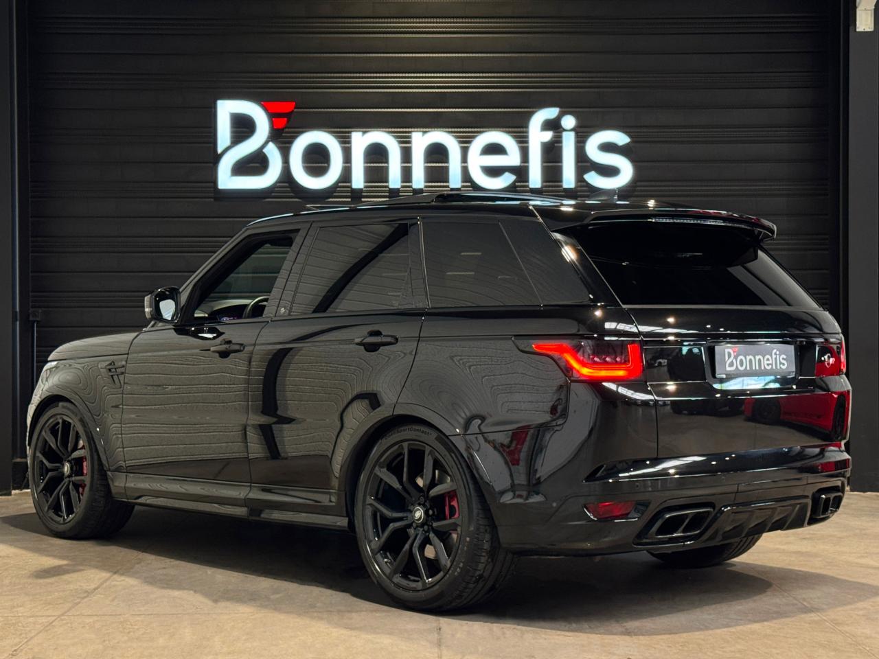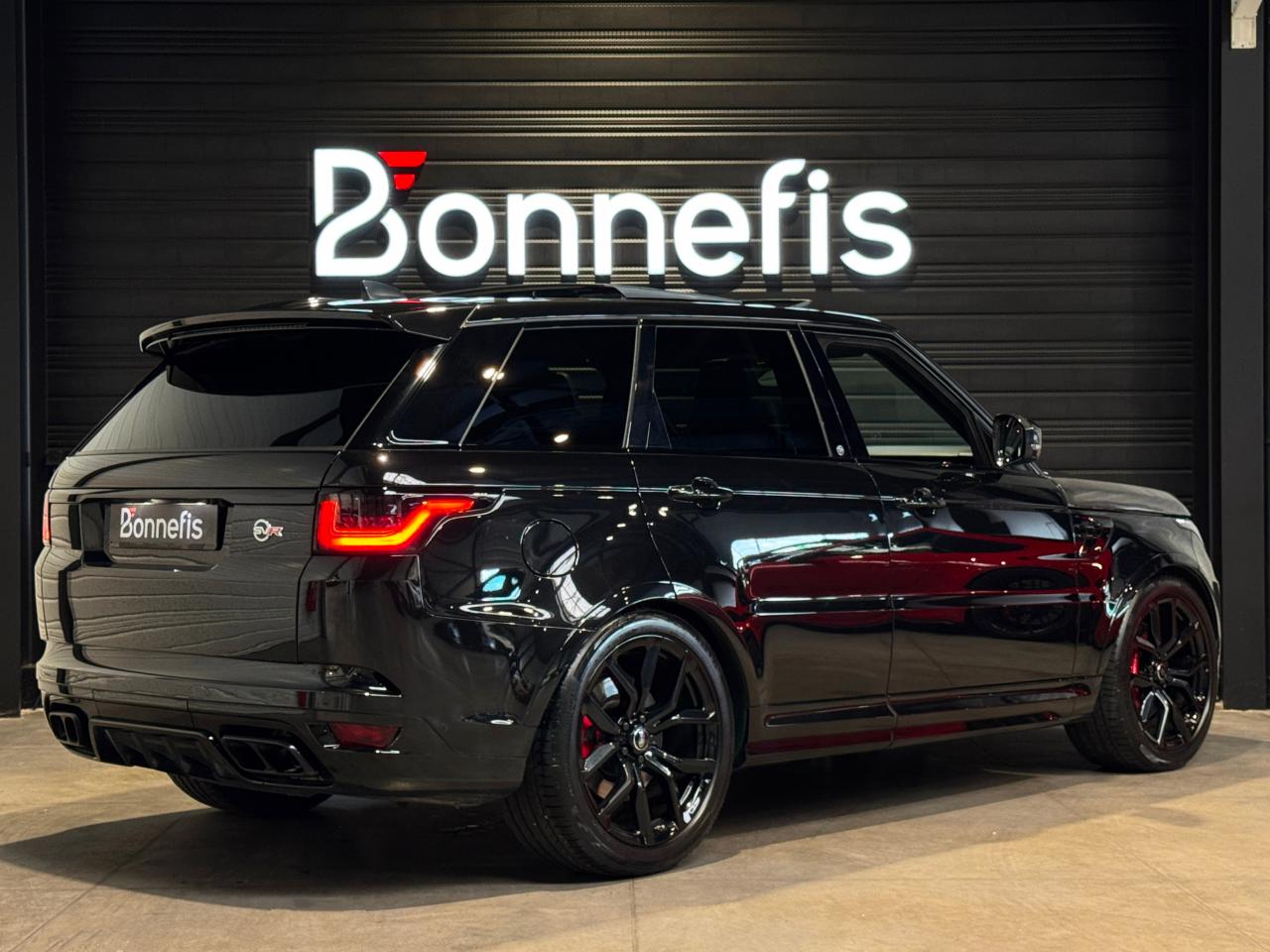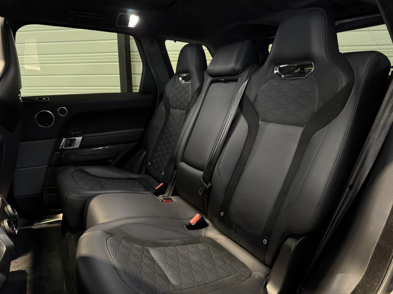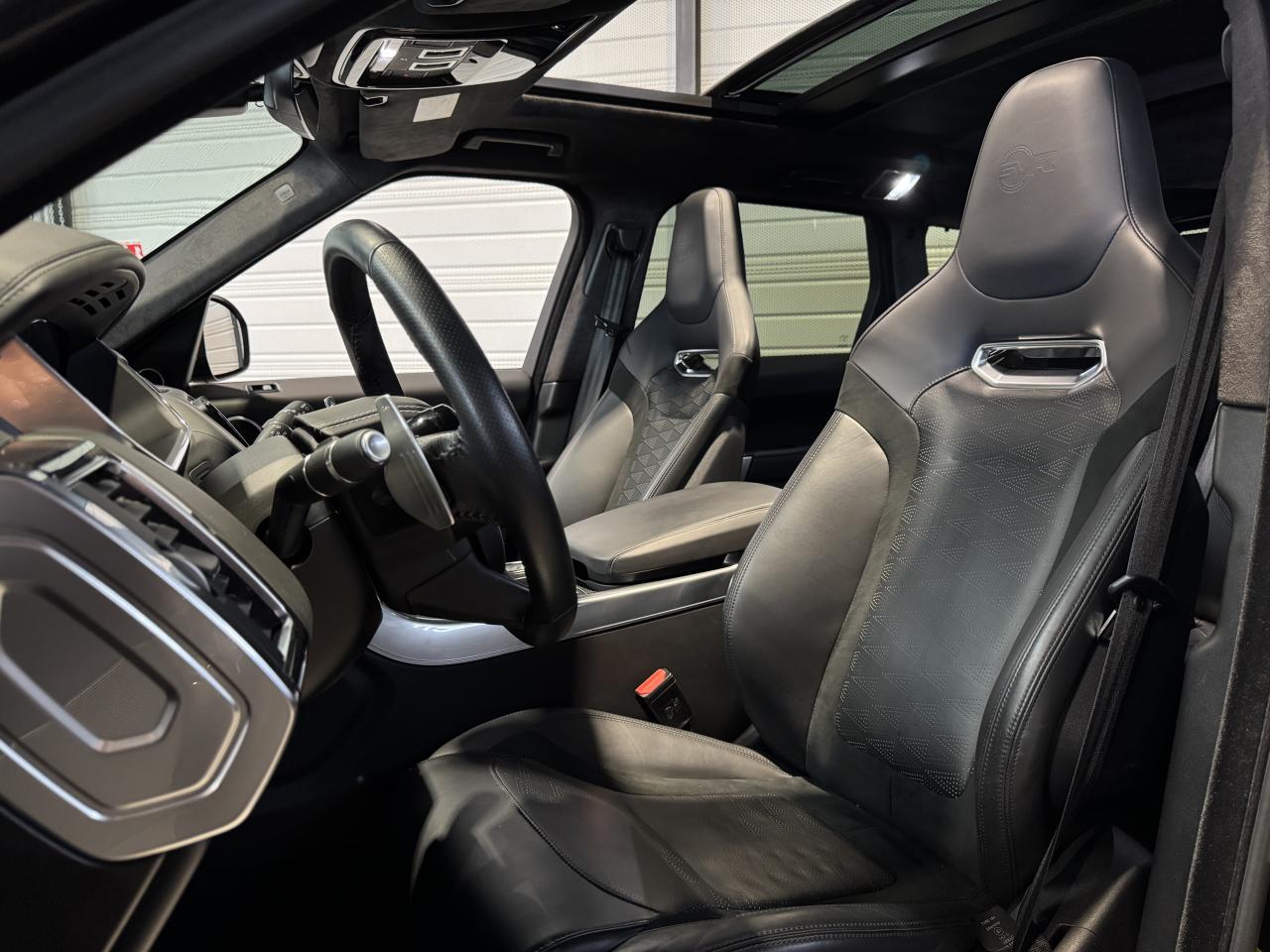 Land Rover Range Rover Sport SVR Mark VIII 5.0 V8 575 Ch SUV, extérieur noir Santorini métallisée ( 1 155 € ), intérieur cuir Windsor, 50 cv, 5 portes, première mise en circulation le 25/06/2020.