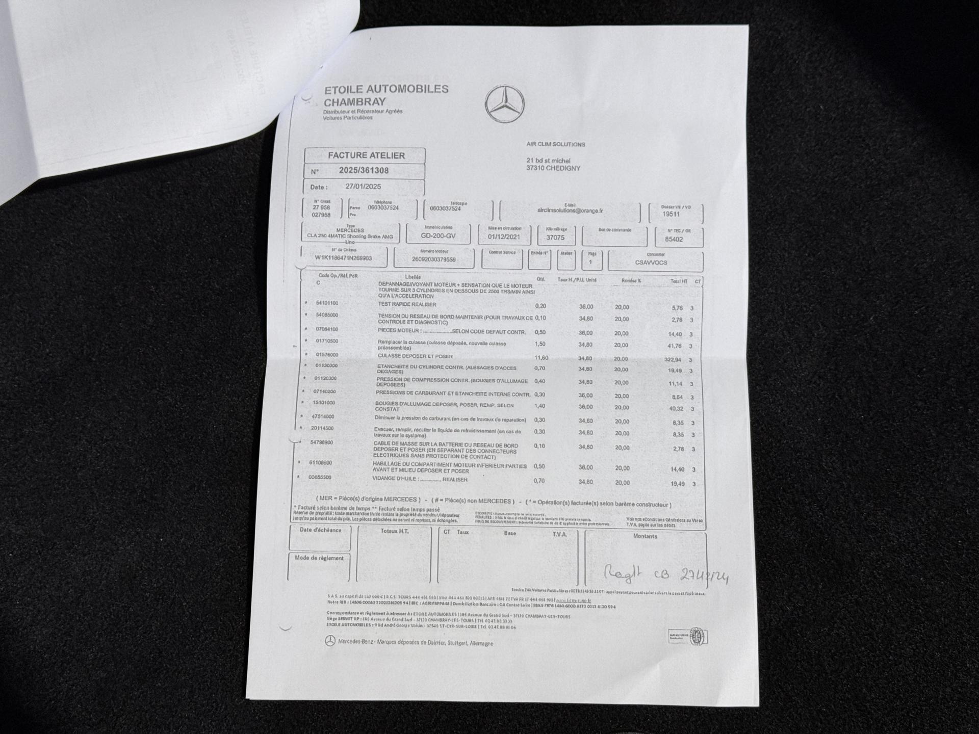 Nombreuses options : GPS, caméra de recul, radars avants et arrières de détection d'obstacles, Siège passager AV électrique avec fonction Mémoires, Accoudoir central AR, Assistant feux de route Plus, Baguette de ligne de ceinture finition noir brillant, Baguettes de seuil éclairées avec monogramme " Mercedes-Benz", Ciel de pavillon en tissu noir, Climatisation automatique THERMOTRONIC, Contrôle de la pression des pneumatiques, Coques de rétroviseurs extérieurs noir brillant, DYNAMIC SELECT, Eclairage d'ambiance, Entourage des vitres en noir brillant, Grille de calandre diamant avec pastilles noires et lamelle noir brillant, Instrumentation digitale avec écran 10", MBUX système multimedia, Pack Confort KEYLESS-GO, Projecteurs MULTIBEAM à LED, Régulateur de vitesse TEMPOMAT avec limiteur de vitesse, Rétroviseurs extérieurs rabattables électriquement, Siège conducteur tout électrique avec fonction Mémoires, Sièges AV chauffants, Soutien lombaire à 4 réglages, Splitter AV en finition noir brillant, Système de sonorisation Advanced, Toit ouvrant panoramique, Vitrage athermique foncé, ...