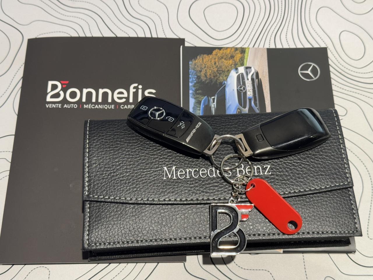 Nombreuses options : GPS, caméra de recul, radars avants et arrières de détection d'obstacles, Jantes forgées AMG 19", branches en Y Noir mat/rebord de jante argent ( 1 750 € ), MBUX Réalité augmentée pour la navigation ( 250 € ), Volant Performance AMG en microfibre DINAMICA ( 125 € ), Eclairage de proximité avec projection du logo ( 125 € ), Prééquipement pour services de navigation ( 83 € ), AMG Driver's package Vitesse maxi de 270 km/h, Pilote automatique de régulation de distance actif DISTRONIC ( ACC / Active Cruise Control ), Assistant directionnel actif, Assistant de limitation de vitesse actif, Assistant feux de route Plus, Système de sonorisation Surround Burmester, Projecteurs MULTIBEAM à LED, Toit ouvrant panoramique, Siège conducteur tout électrique avec fonction Mémoires, Sièges AV chauffants, Rétroviseurs intérieur et extérieur côté conducteur à commutation jour/nuit automatique, Rétroviseurs extérieurs rabattables électriquement, Hayon Easy-Pack à ouverture et fermeture automatiques, Inserts décoratifs en aluminium AMG noir/argent, Baguettes de seuil éclairées avec l'inscription Mercedes-Benz, Ceintures de sécurité Designo Rouges, Eclairage d'ambiance, DYNAMIC SELECT AMG, Pavé tactile TOUCHPAD, Pack Sièges Confort, Ciel de pavillon en tissu noir, Boîte de vitesse automatique à 8 rapports 8G-DCT SPEEDSHIFT AMG, Essuie-glaces avec détecteur de pluie, Détecteur de panneaux de signalisation, Système PRE-SAFE, Système d'appel d'urgence Mercedes-Benz, Contrôle de la pression des pneumatiques, Vitrage athermique foncé, MBUX système multimédia, Etriers de frein peints en rouge, ...