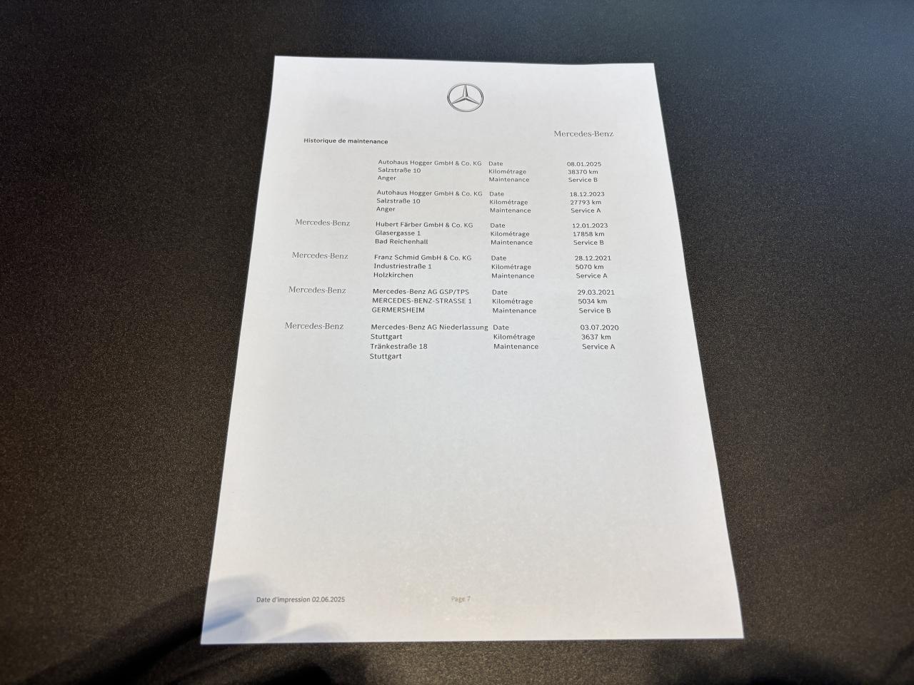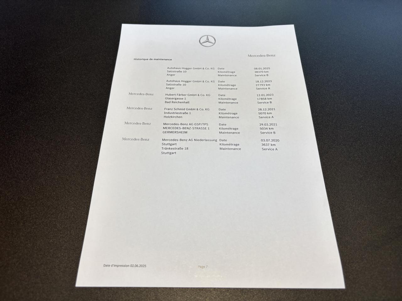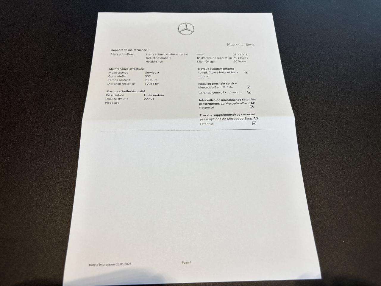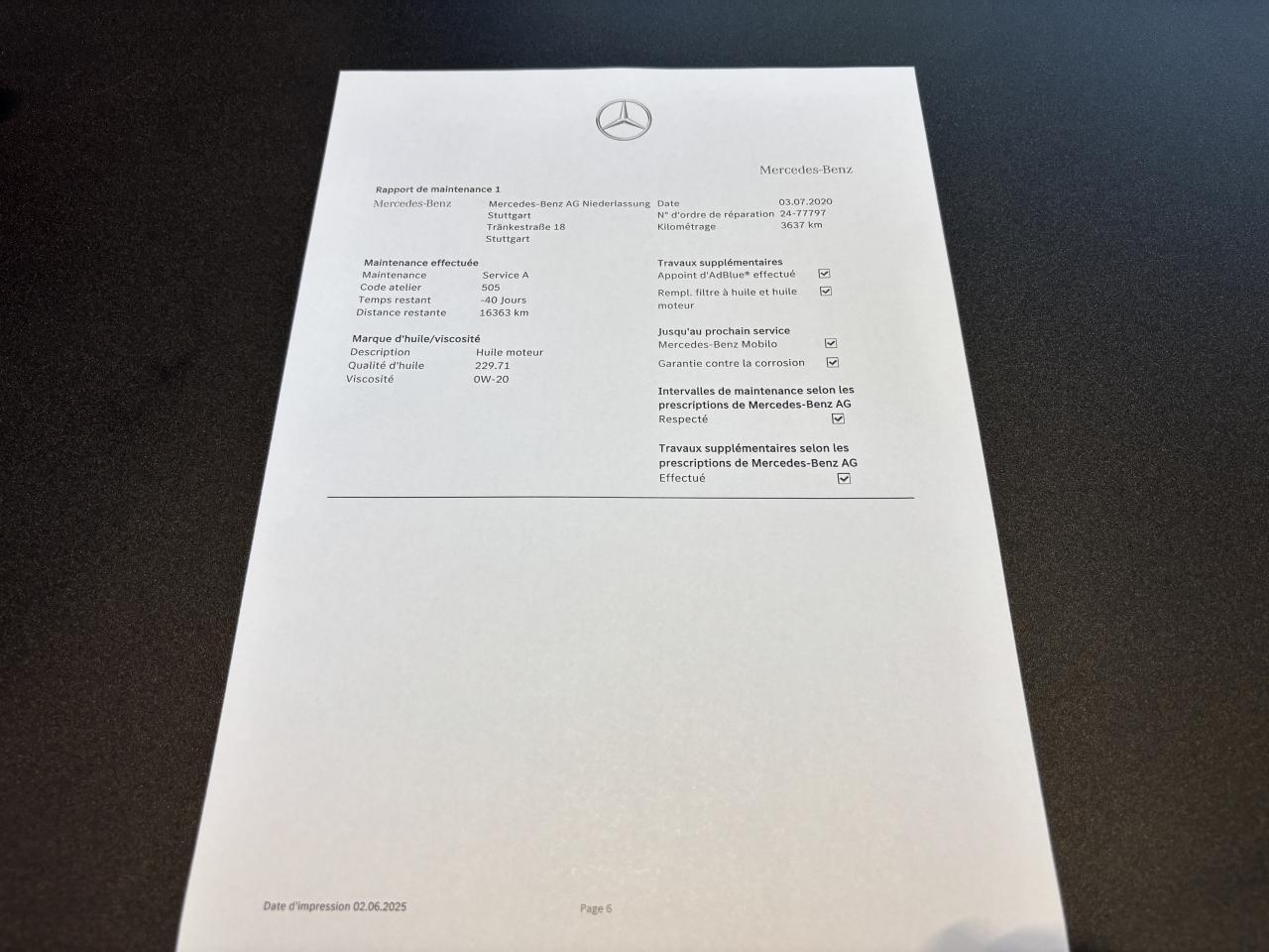- 1er entretien fait le 03/07/2020 à 3 637Km chez Mercedes. ( Vidange moteur )