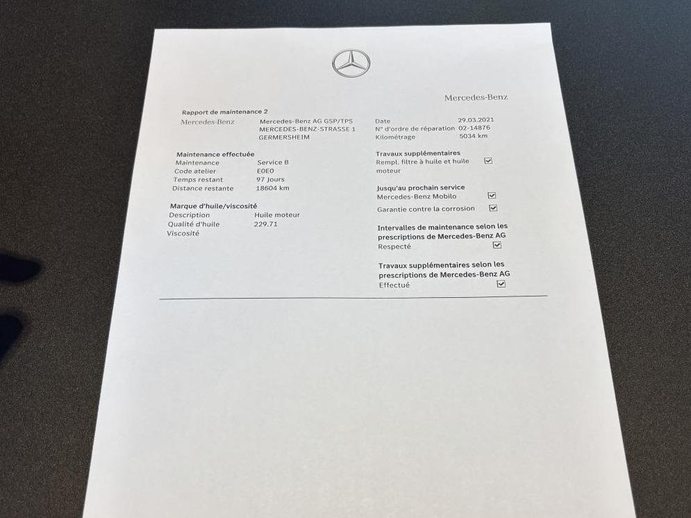 - 2ème entretien fait le 29/03/2021 à 5 034Km chez Mercedes. ( Vidange moteur )