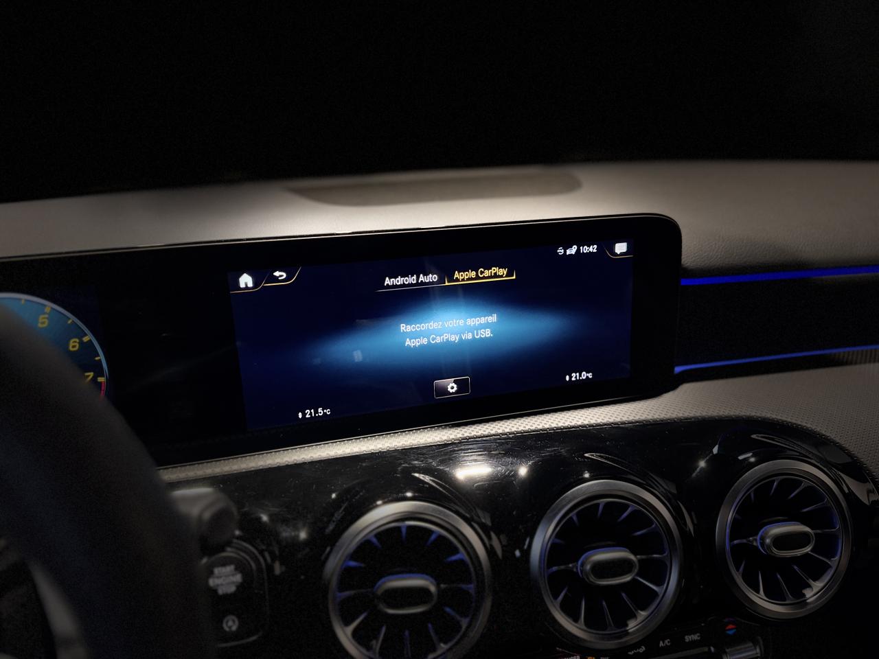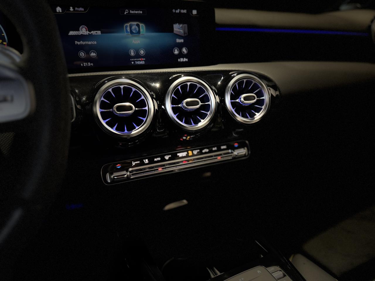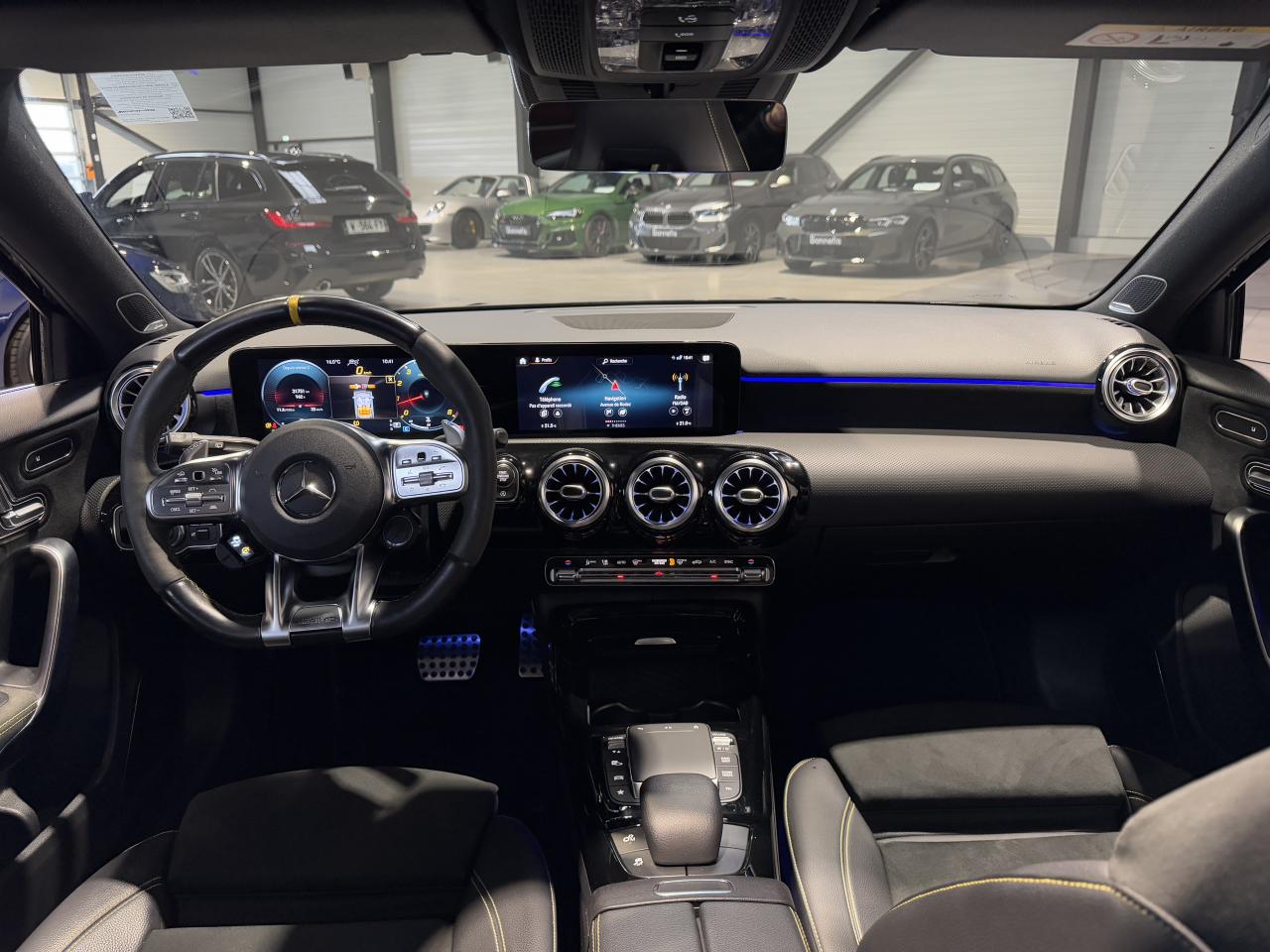 Nombreuses options : GPS, caméra de recul, Apple CarPlay, radars avants et arrières de détection d'obstacles, régulateur de vitesse, Jantes forgées AMG 19", branches en Y Noir mat/rebord de jante argent ( 1 750 € ), Pack d'Assistance à la conduite ( 1 833 € ), MBUX Réalité augmentée pour la navigation ( 416 € ), Prééquipement pour Pack Connectivité Navigation ( 83 € ), Système PRE-SAFE ( 333 € ), Sièges AV chauffants, Toit ouvrant panoramique, Jupe AR AMG avec insert décoratif chromé, Vitrage athermique foncé, Volant Performance AMG en cuir Nappa/microfibre DINAMICA, Android Auto...