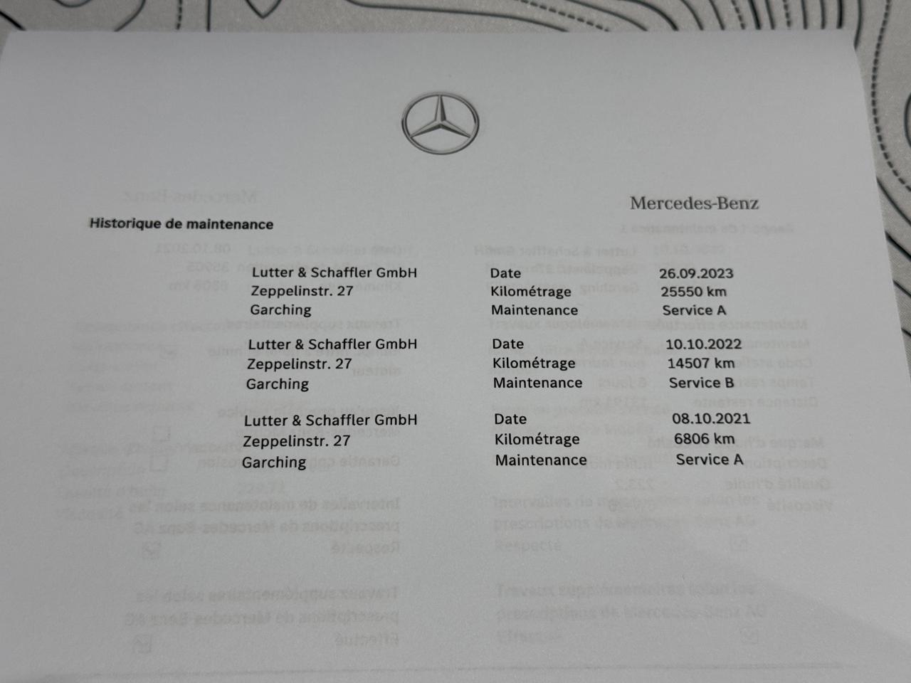 Justificatif d'entretien exclusif Mercedes :