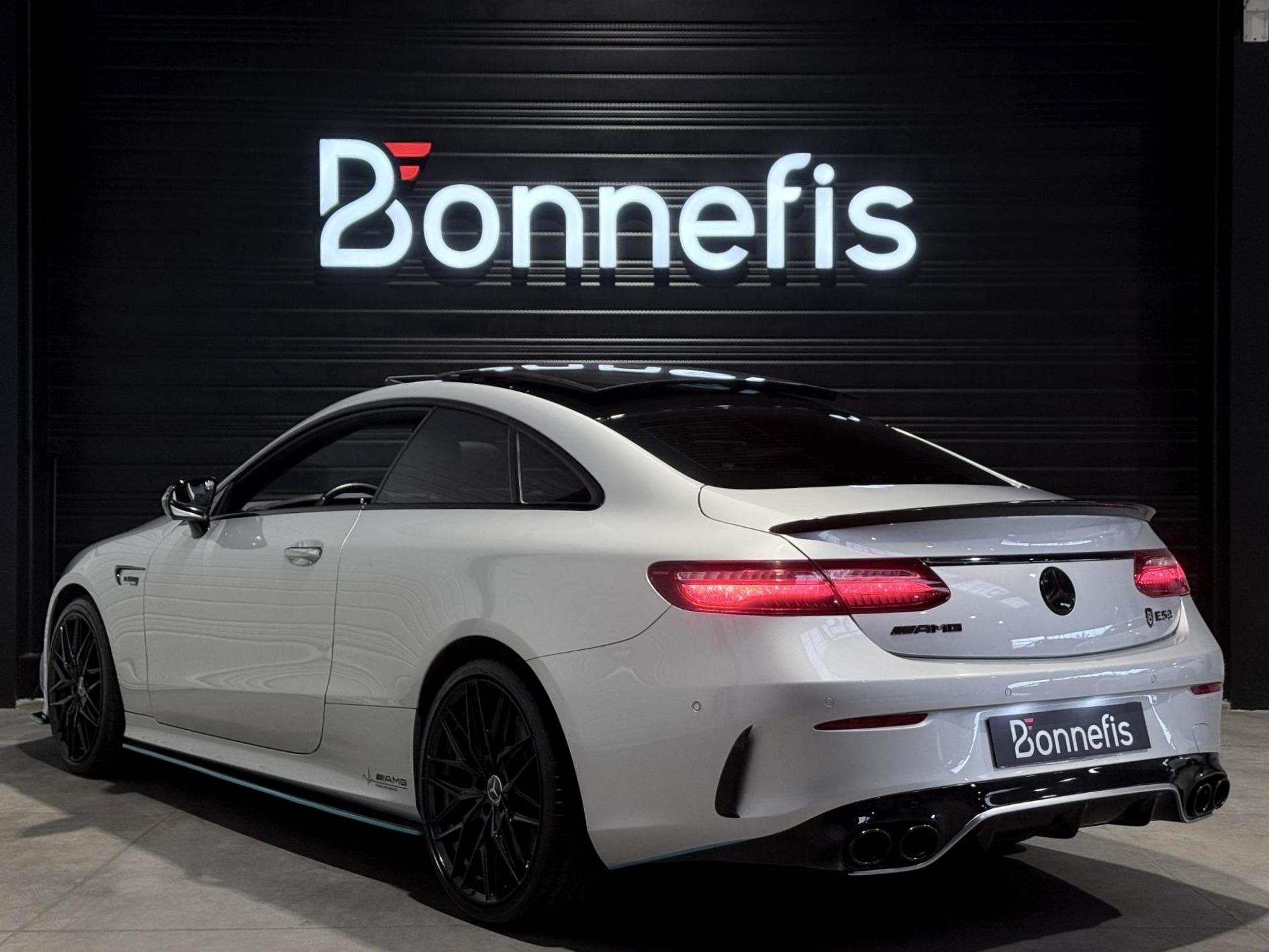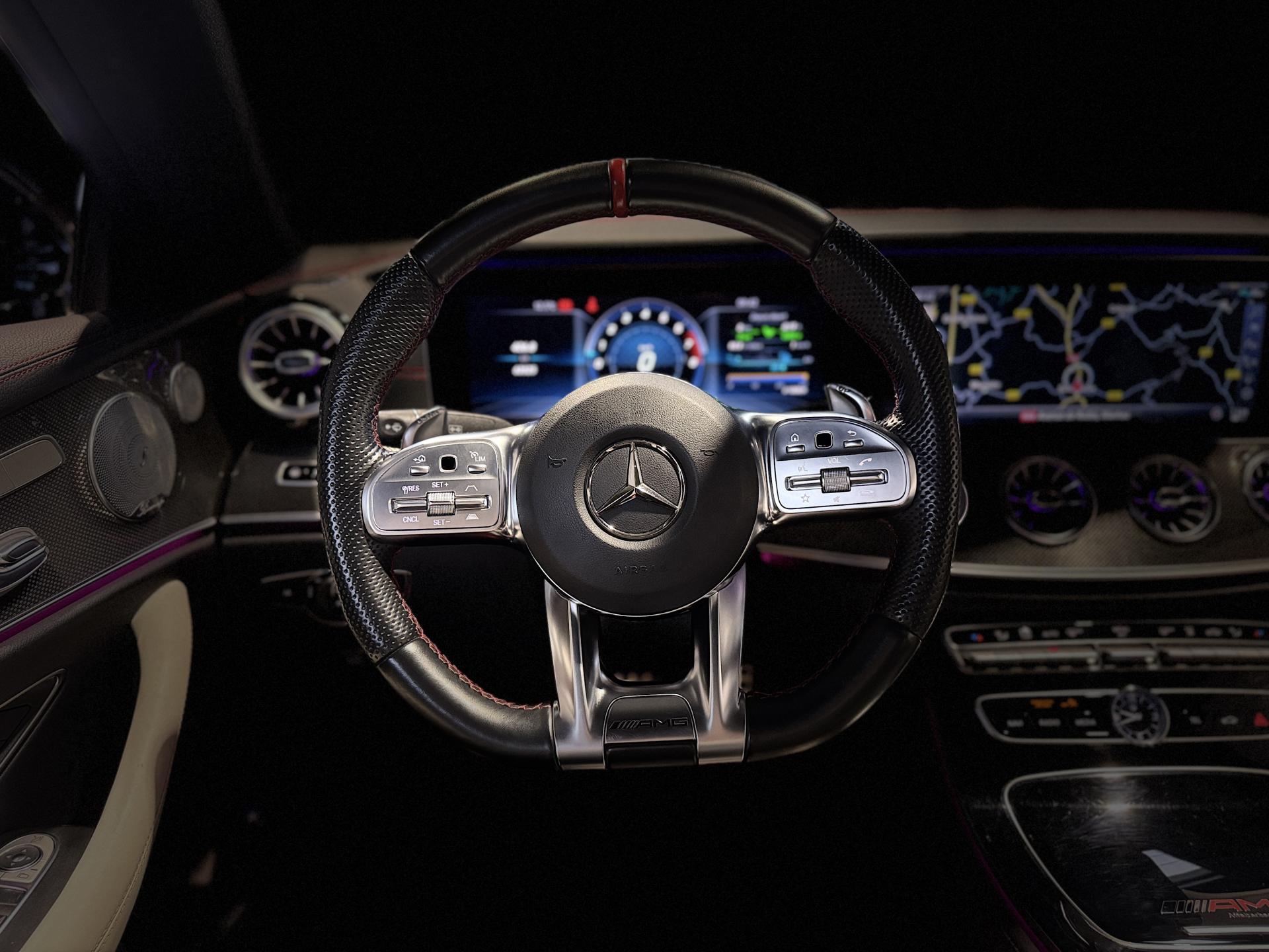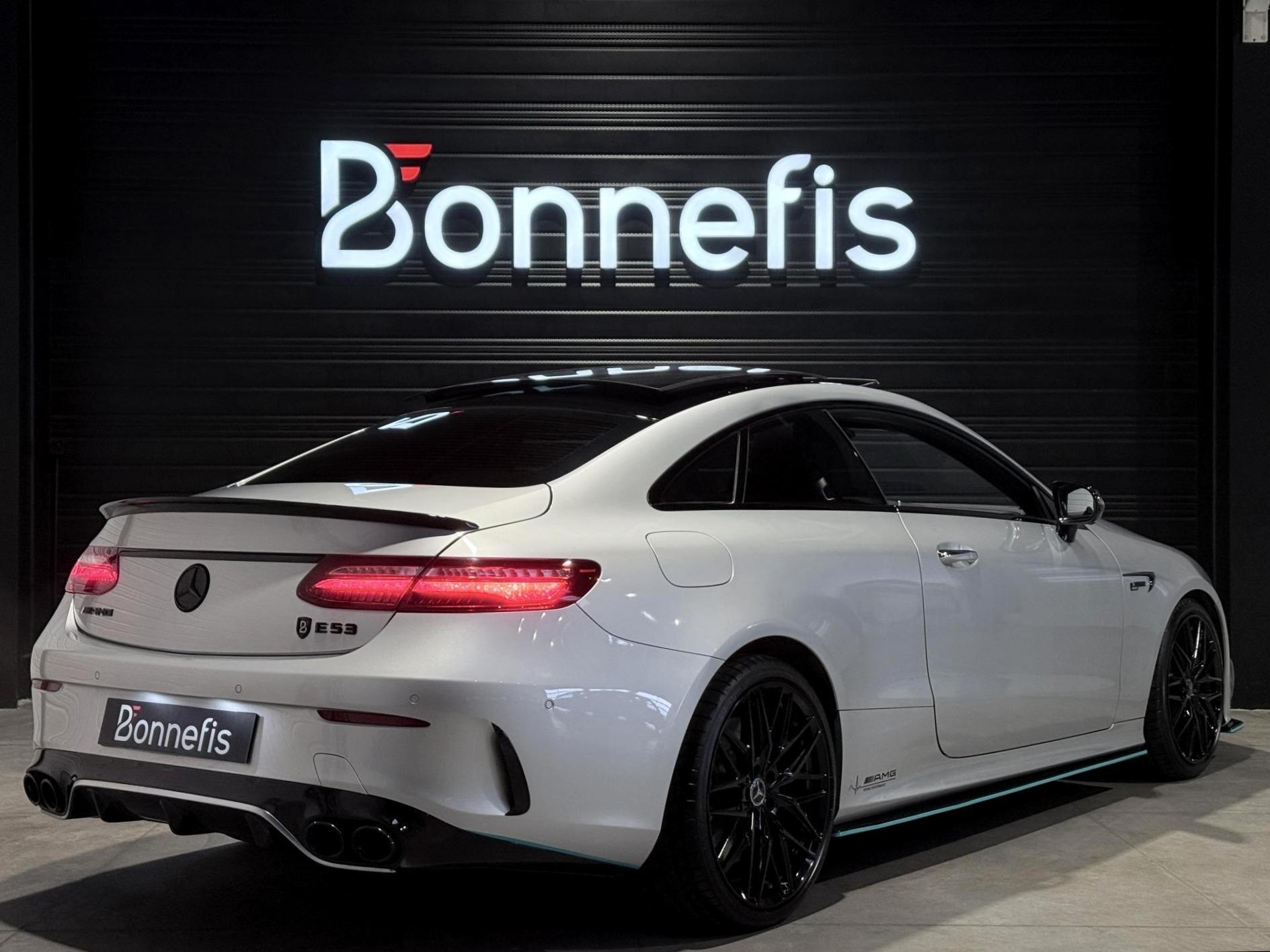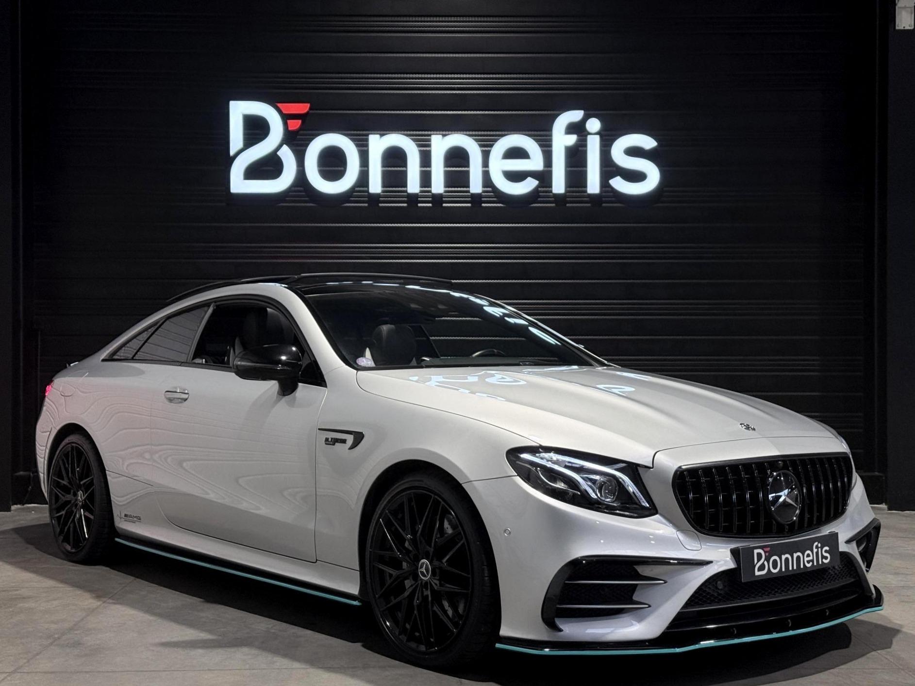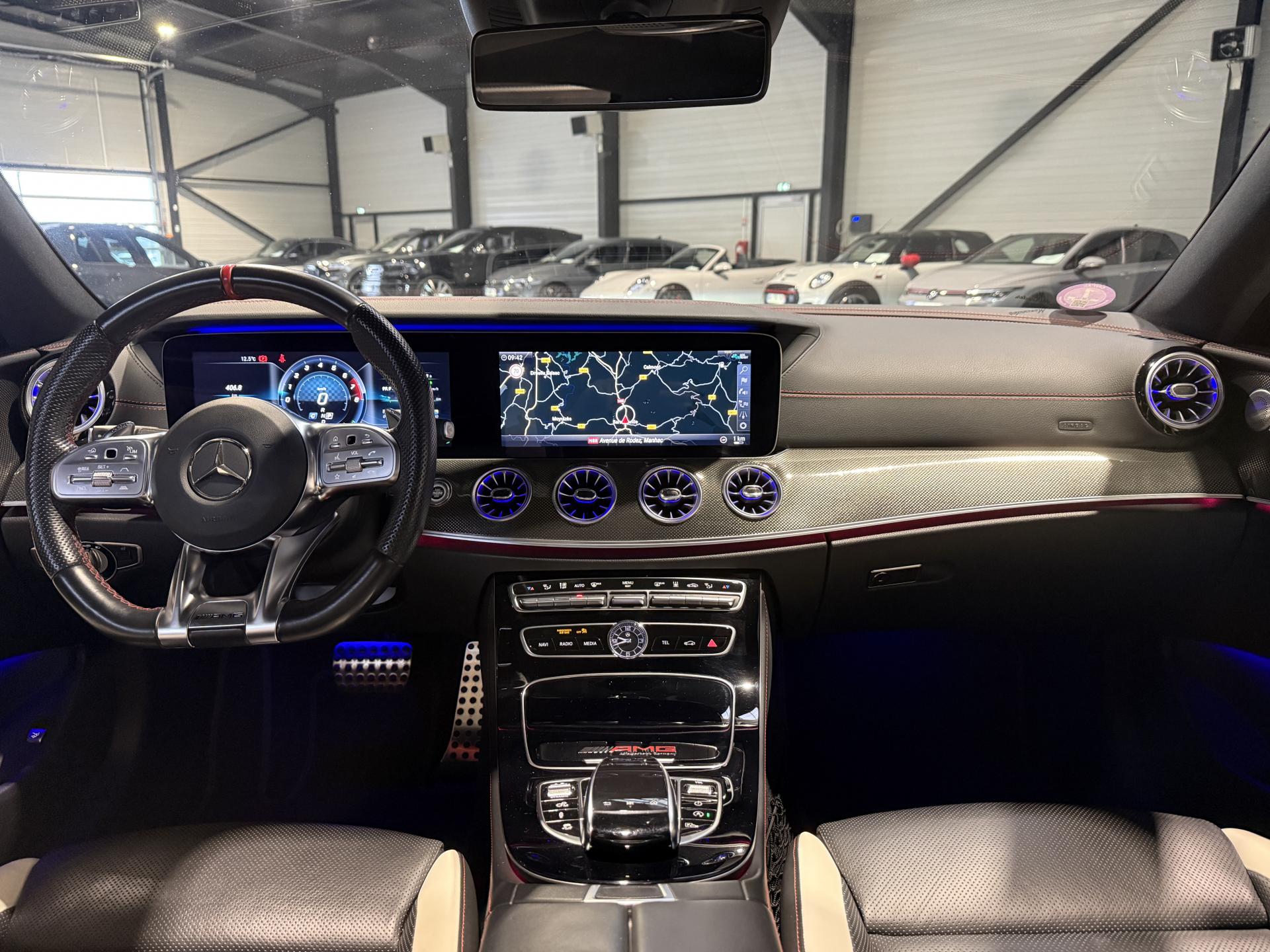 Mercedes Classe E53 AMG Coupé 3.0 457 Ch, extérieur gris métalisée, intrérieur bi-couleur cuir noir / blanc, 32 cv, 3 portes, première mise en circulation le 14/12/2018.