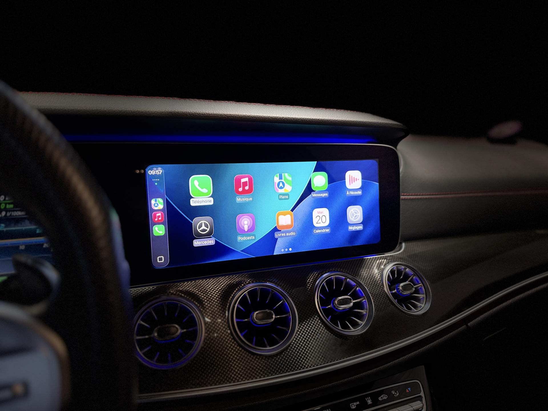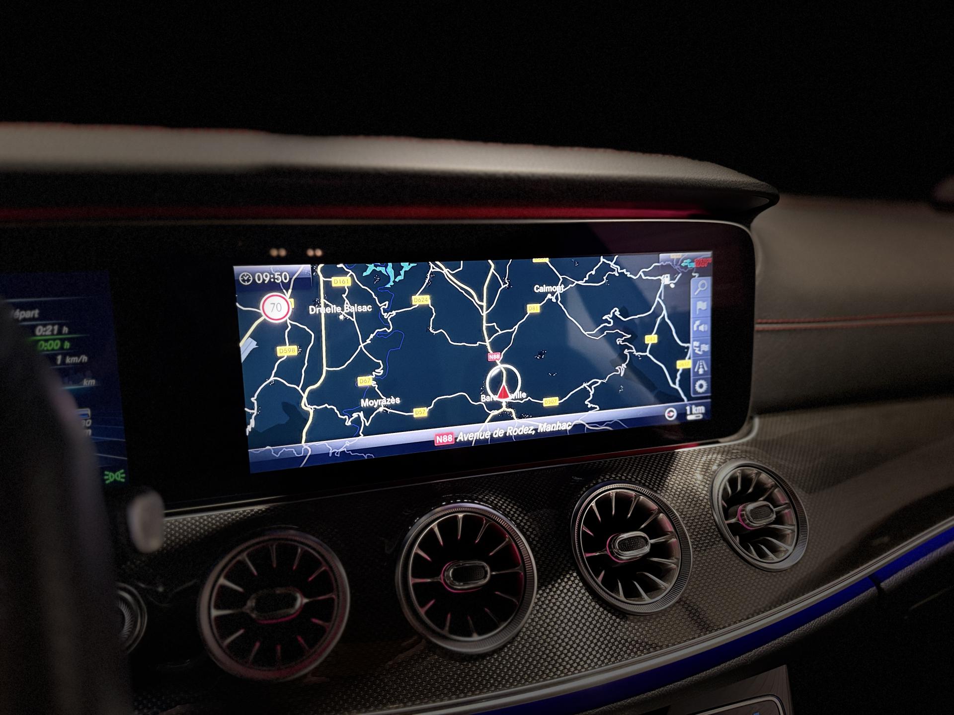 Nombreuses options : GPS, caméra périphériques à 360°, Apple CarPlay, radars avants et arrières de détection d'obstacles, Affichage tête haute ( 1 000 € ), Climatisation automatique confort THERMOTRONIC 3 zones ( 875 € ), Ceintures de sécurité Designo Rouges ( 333 € ), MAGIC VISION CONTROL ( 333 € ), Fermeture assistée des portes AV et AR ( 291 € ), Inserts décoratifs en structure métallique ( 208 € ), Extincteur ( 125 € ), Assistant feux de route Plus, Détecteur de panneaux de signalisation, Contrôle de la pression des pneumatiques, DYNAMIC SELECT AMG, Eclairage d'ambiance avec 64 tonalités différentes et 3 zones de couleur, Ciel de pavillon en tissu noir, Horloge analogique, Pack AMG Line Extérieur, Pack AMG Line Intérieur, Palettes de changement de rapports au volant galvanisées, Projecteurs MULTIBEAM LED, Rétroviseurs à commutation jour/nuit automatique, Sièges AV chauffants, Suspension AIR BODY CONTROL, Système d'appel d'urgence Mercedes-Benz, Système de sonorisation Surround Burmester, Toit ouvrant panoramique électrique, Volant Performance AMG en cuir Nappa à 3 branches, ...