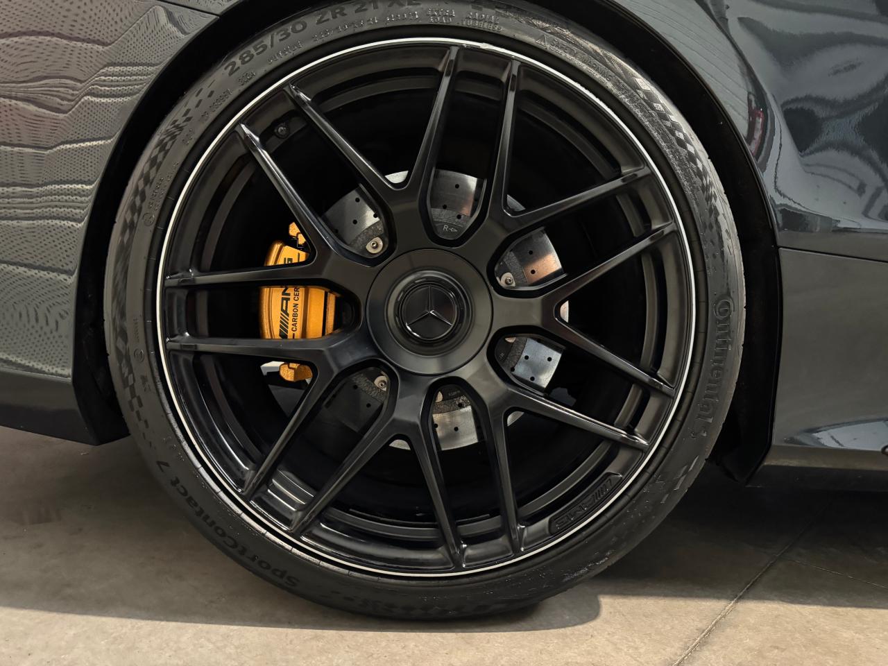 Nombreuses options : GPS, Apple Carplay, caméra de recul, radars avants et arrières de détection d'obstacles, Pack Carbone Extérieur AMG ( 4 916 € ), Inserts décoratifs Carbone AMG et laque noire ( 3 916 € ), ILS (Intelligent Light System) à LED avec cristaux Swarovski ( 2 833 € ), Assistant de vision de nuit Plus ( 2 041 € ), Driver’s Package AMG ( 1 916 € ), Chauffage d'appoint avec système de ventilation à l'arrêt en été ( 1 250 € ), Système de sonorisation 3D-Surround Burmester ( 5 333 € ), Système de freinage hautes performances en céramique composite AMG ( 6 958 € ), Volant Performance AMG en cuir Nappa/microfibre DINAMICA noir à 3 branches ( 416 € ), Pare-brise chauffant ( 458 € ), Store pare-soleil électrique pour lunette AR ( 458 € ), Protection du soubassement moteur ( 166 € ), Accoudoirs centraux et accoudoirs AV/AR en cuir Nappa avec surpiqûres contrastées, Accoudoirs chauffants sur la console centrale et dans les portes, Affichage tête haute, Baguettes décoratives sur la jupe AV AMG façon aile de jet dans le ton noir, Baguettes décoratives sur le diffuseur de la jupe AR AMG dans le ton noir, Baguettes de seuil éclairées, Baguettes de seuil en acier inoxydable avec inscription AMG, Boîtiers de rétroviseurs extérieurs finition noir brillant, Caméras panoramiques, Chauffage de siège Plus très réactive aux places AV, Ciel de pavillon designo en microfibre DINAMICA Porcelaine, Garnitures intérieures en cuir Nappa Etendu designo AMG noir, Inserts des habillages de bas de caisse AMG finition noir brillant, Motif des sièges en losanges et perforations, Pare-soleil en microfibre DINAMICA, Partie centrale des contre-portes en cuir Nappa avec surpiqûres contrastées, Partie supérieure de la planche de bord en cuir Nappa avec surpiqûres contrastées, Plage AR en similicuir ARTICO, Plaquettes designo sur les dossiers, Poches aumônières au dos des sièges AV en cuir Nappa, Splitter AV en finition noir brillant, Système d'echappement sport AMG à deux doubles sorties noires chromées, Tapis de sol designo avec liseré en similicuir et plaquettes designo, Touches du chauffage des sièges et des accoudoirs au niveau des blocs de commande des portes, Volant sport multifonctions chauffant, ciel de toit étoilé, hayon de coffre électrique...