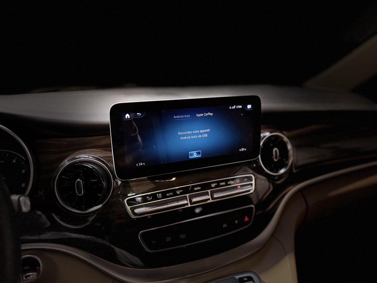 Nombreuses options : GPS ( 711 € ), caméra périphériques à 360° ( 728 € ), Apple Carplay, radars avants et arrières de détection d'obstacles ( 1 514 € ), Transmission intégrale permanente ( 3 906 € ), Pack Design Intérieur ( 2 369 € ), Chauffage additionnel à air chaud ( 2 196 € ), AIRMATIC ( 2 076 € ), Jantes alliage 8Jx19" ( 1 912 € ), Intelligent Light System à LED ( 1 837 € ), Pack Assistance à la conduite ( 1 263 € ), Pack Sport Extérieur ( 1 248 € ), Attelage boule 2T amovible sans outil ( 1 063 € ), Assistant régulation de distance actif DISTRONIC ( 999 € ), Commande électrique pour la porte coulissante droite ( 881 € ), Climatiseur semi-automatique TEMPMATIC AR ( 860 € ), Climatiseur automatique Thermotronic ( 711 € ), Couvercle de coffre EASY-PACK ( 704 € ), Parktronic ( 673 € ), Ecran visuel 26 cm (10,25") ( 603 € ), Avertisseur d'angle mort ( 537 € ), Avertisseur de franchissement de ligne ( 537 € ), Pack Rétroviseurs ( 537 € ), Freinage d'urgence assisté actif ( 498 € ), Lunette AR à ouverture séparée ( 481 € ), Siège passager confort pivotant ( 480 € ), Vitres teintées AR et côtés noir ( 459 € ), PSM Module Spécial paramètrable pour carrossiers ( 454 € ), Pack Intégration pour smartphone ( 384 € ), Alarme antivol et anti-effraction ( 375 € ), Batterie supplémentaire pour consommateurs montés ( 324 € ), Rétroviseur extérieur rabattable automatiquement ( 323 € ), Siège conducteur confort pivotant ( 300 € ), Déflecteur AMG sur hayon ( 299 € ), Pack Acoustique ( 295 € ), Banquette et siège passager AV chauffants ( 228 € ), Siège conducteur chauffant ( 228 € ), Chauffage pour lave-glaces ( 216 € ), Assistant de feux de route Plus ( 201 € ), Volant gainé cuir ( 194 € ), Monogramme de seuil Mercedes-Benz éclairé ( 151 € ), Relais de coupure pour batterie supplémentaire ( 134 € ), Console centrale avec vide-poche et porte-gobelet mi-luxe ( 115 € ), Prises 12V pour les rangées de sièges AR ( 88 € ), Kit câble interface média ( 65 € ), Soutien lombaire pour siège conducteur ( 65 € ), Soutien lombaire pour siège passager ( 65 € ), 2 porte-gobelets amovibles dans accoudoirs AR ( 54 € ), Trousse de secours dans porte passager AV ( 54 € ), Oeillets d'arrimage pour rails de sièges amovibles ( 39 € ), ...