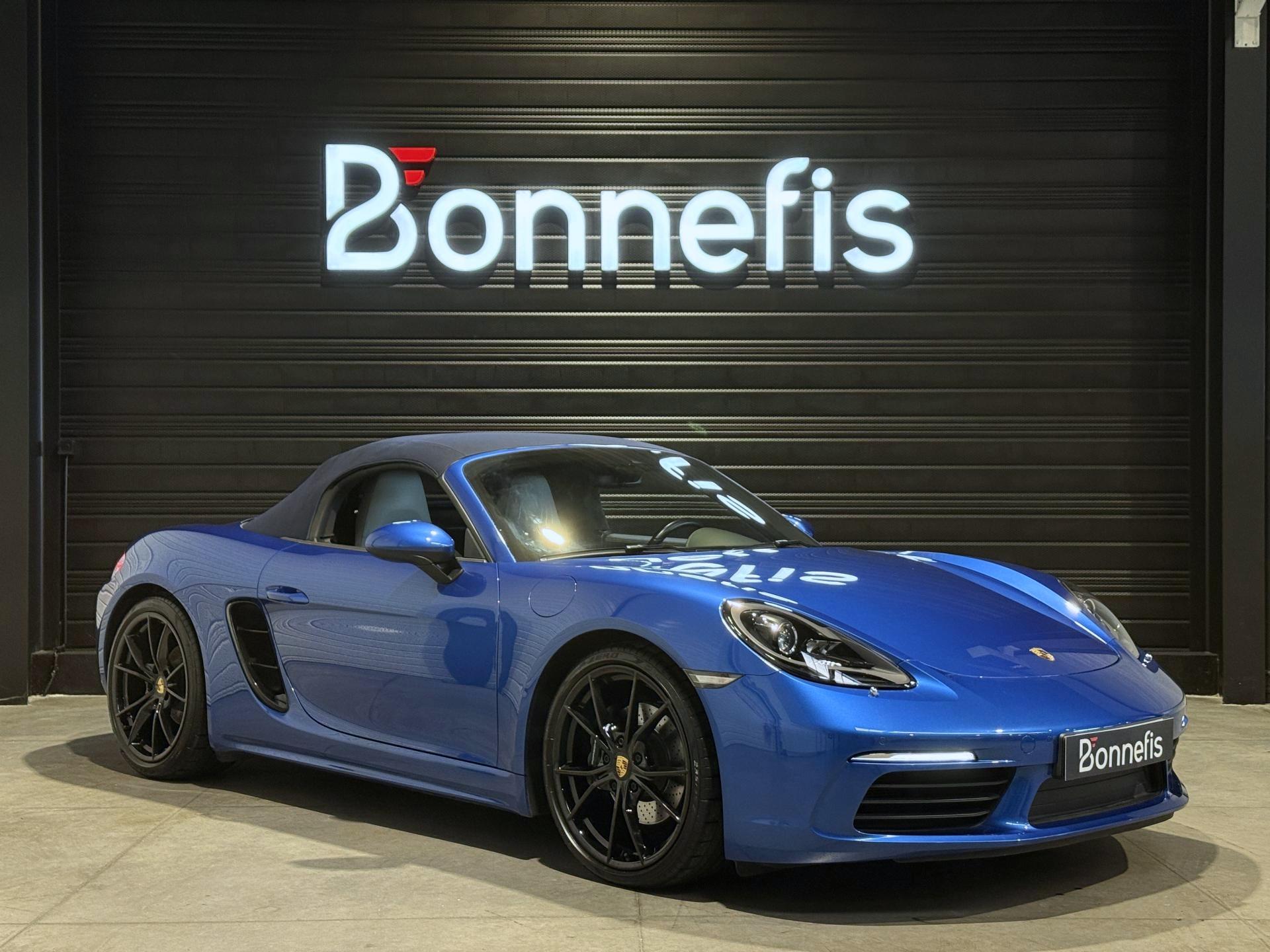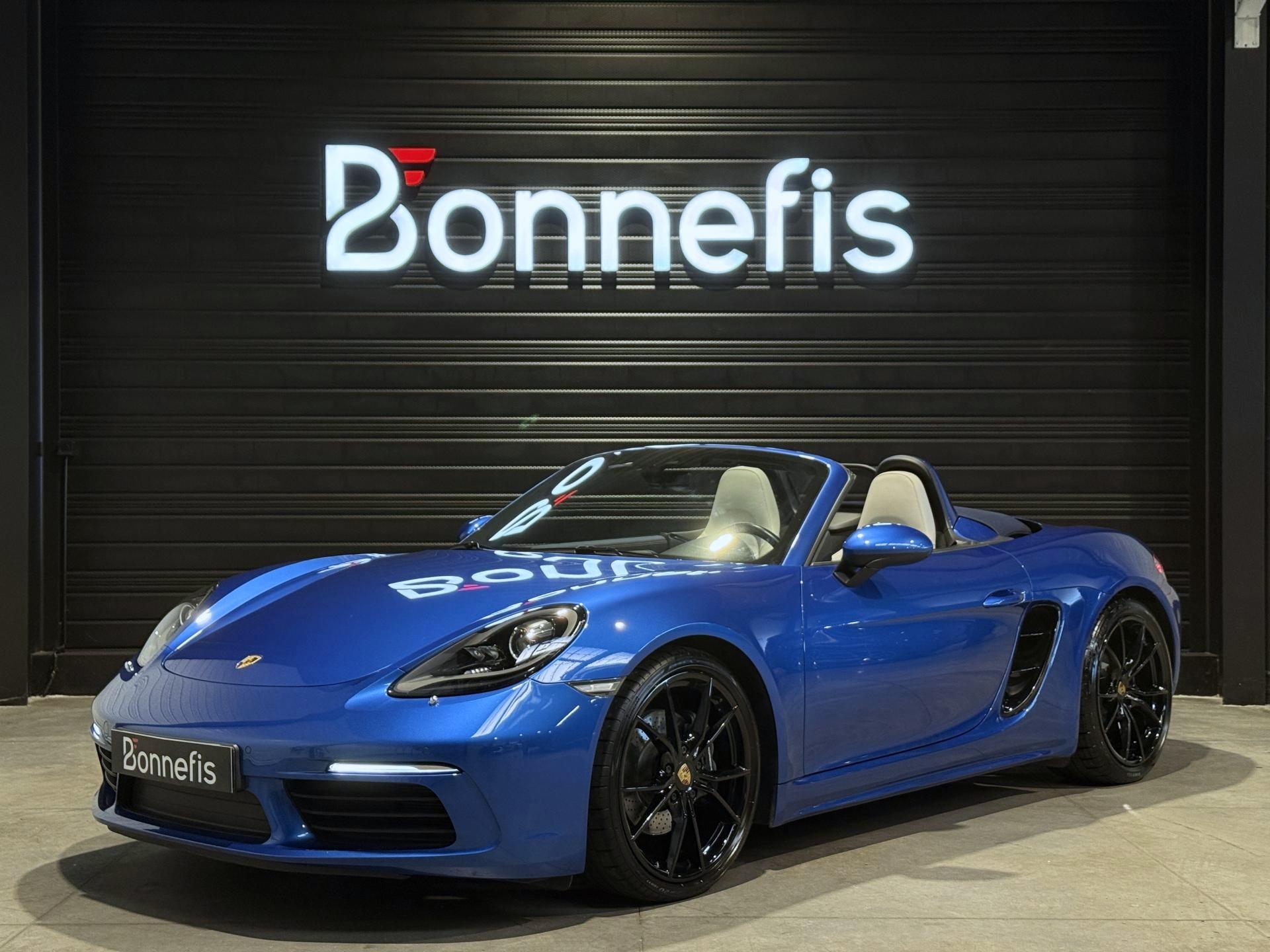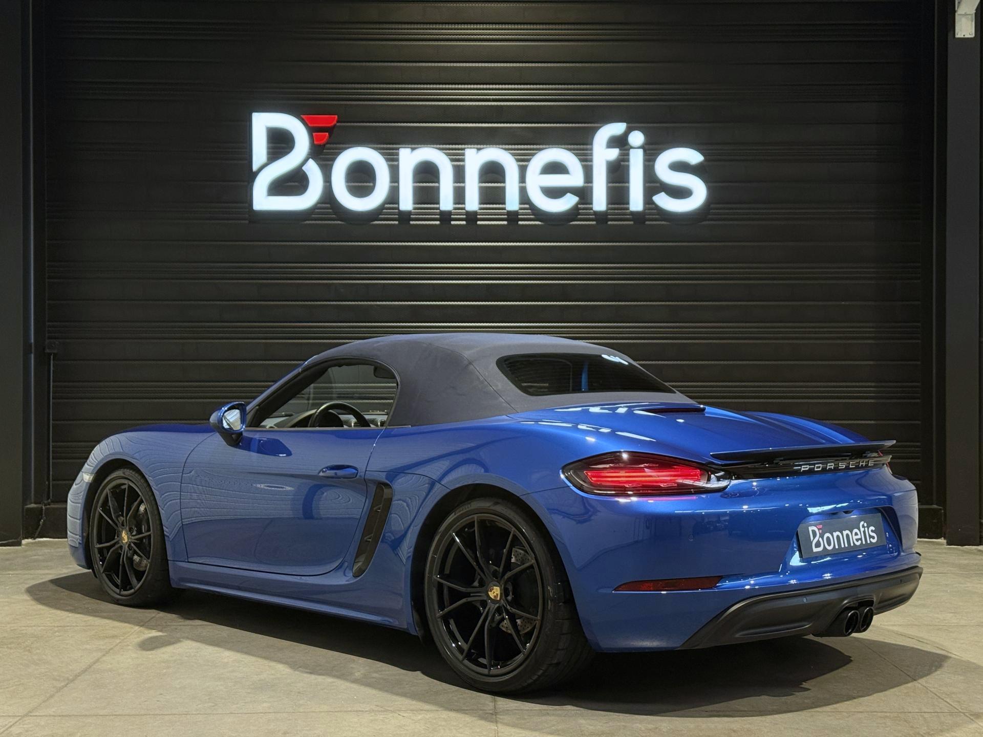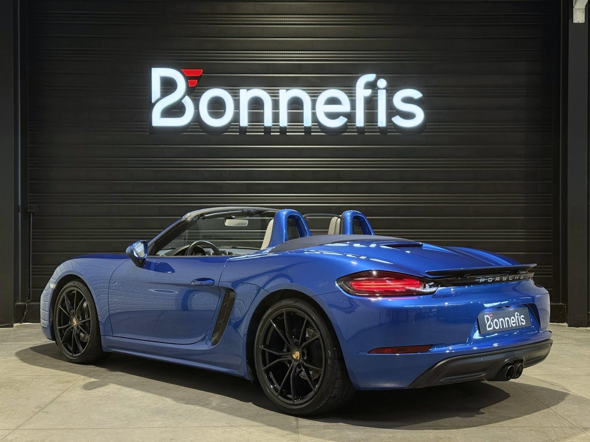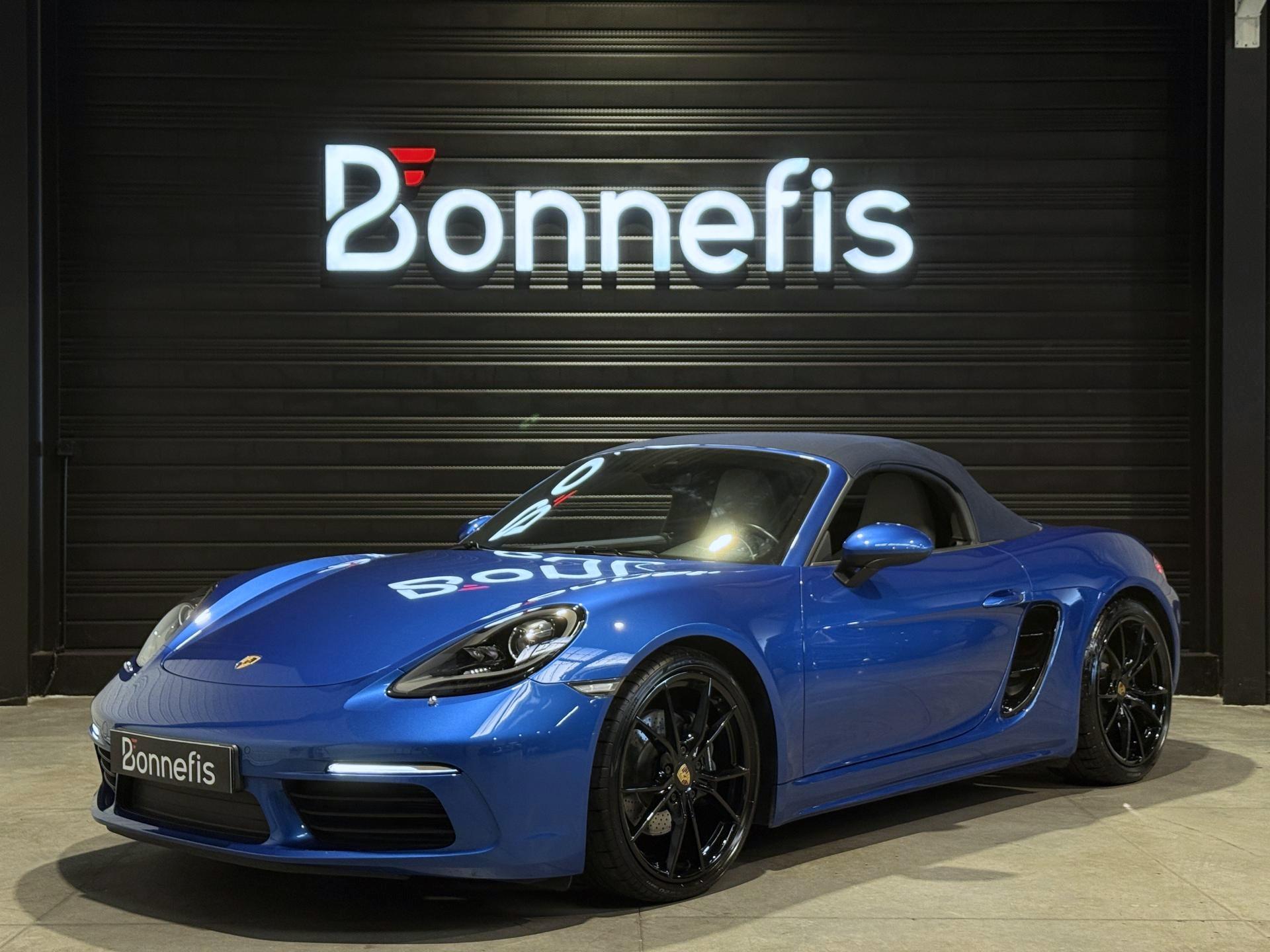 Porsche 718 Boxster 2.0 300 Ch BVA PDK cabriolet, extérieur bleu saphir métallisée, intérieur cuir bicolore Noir / Craie ( 3 590 € ), 19 cv, 2 portes, première mise en circulation le 23/03/2017.