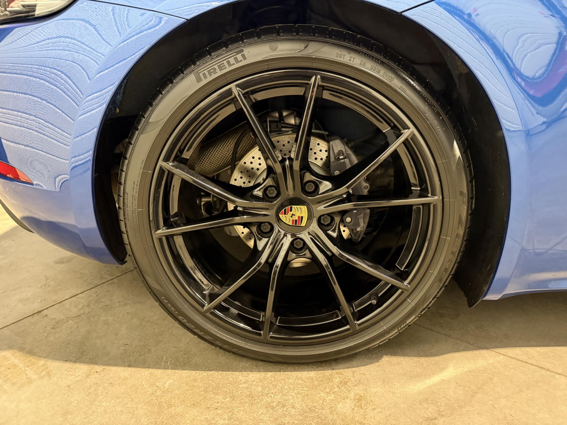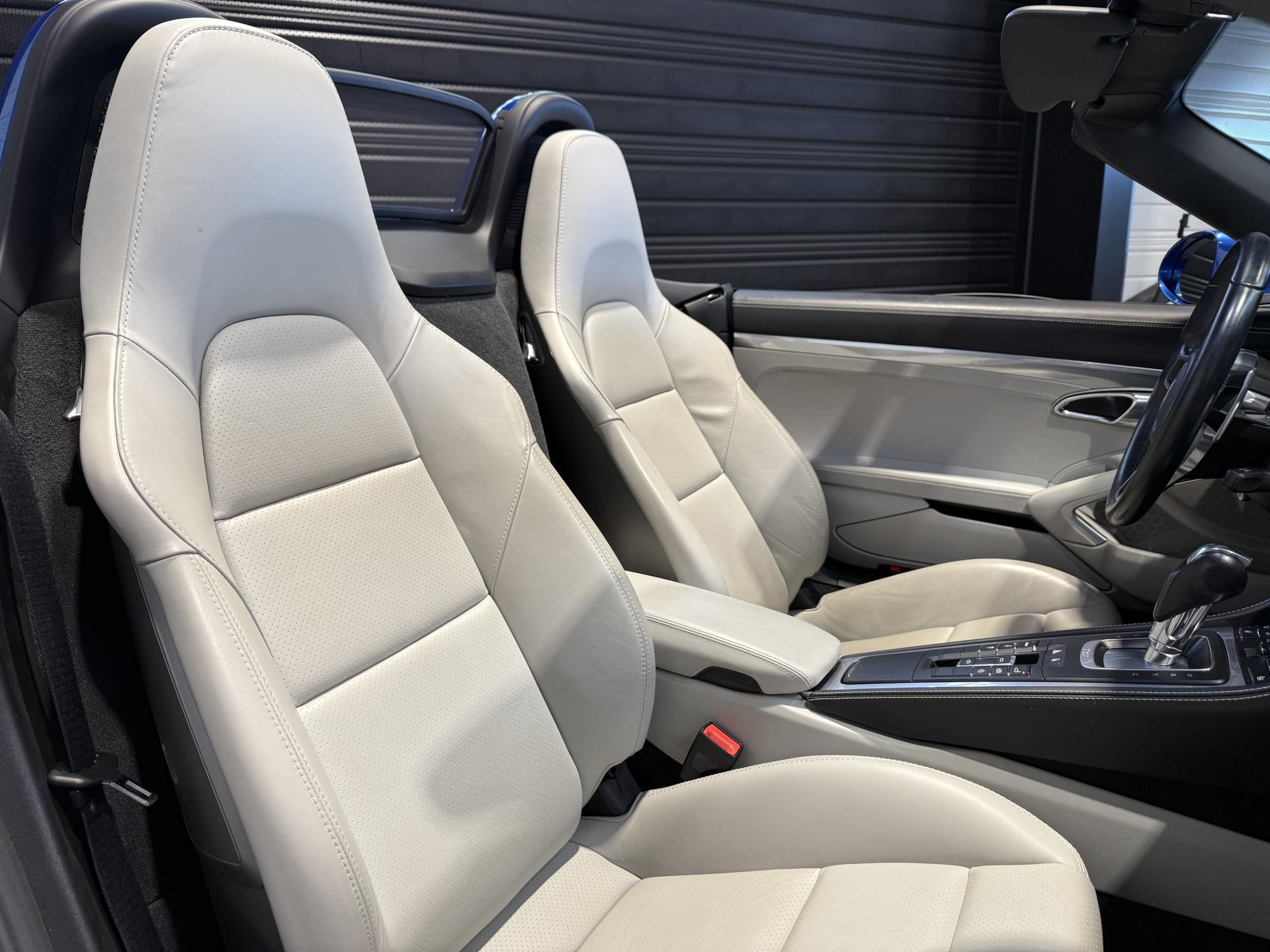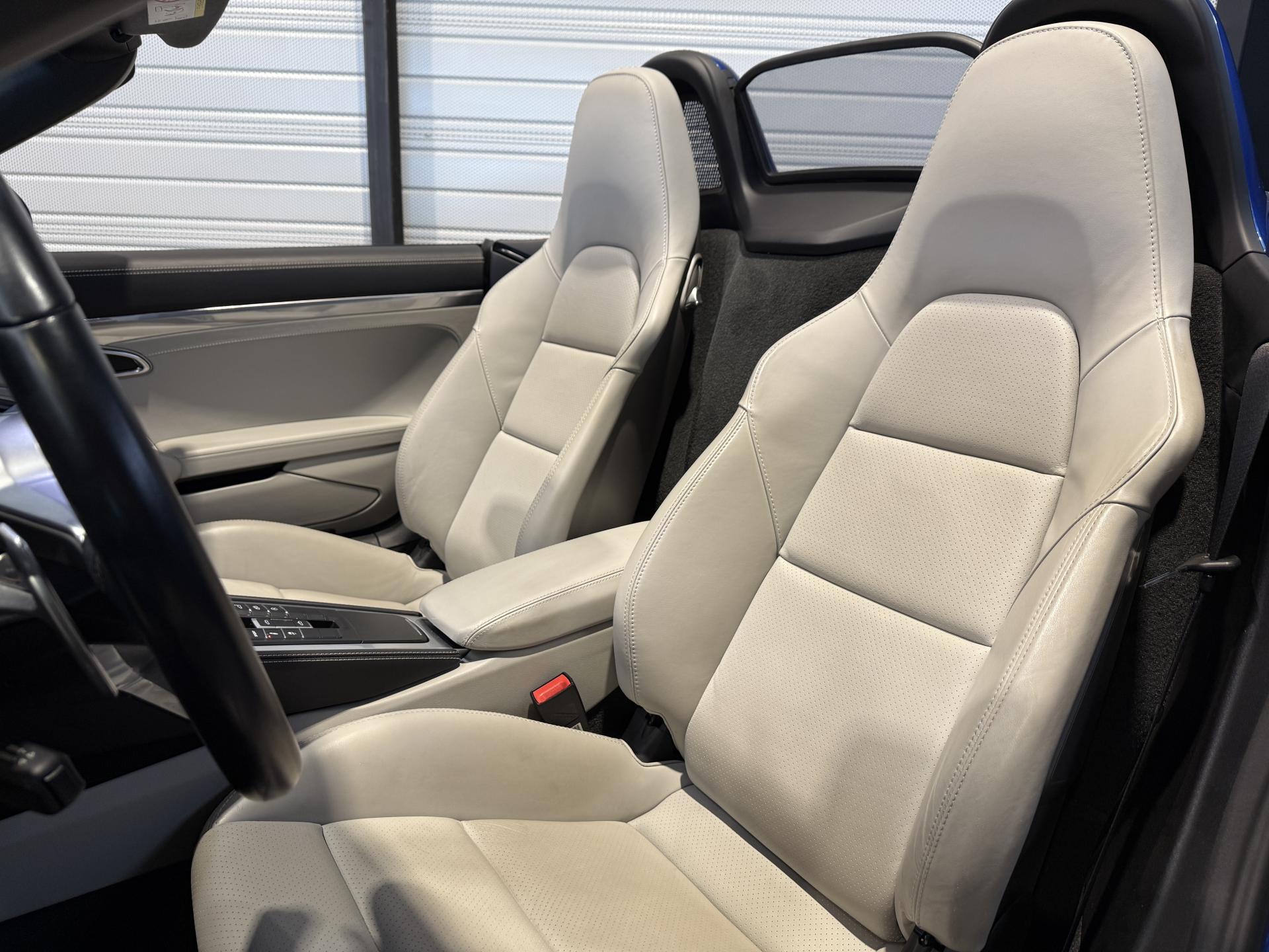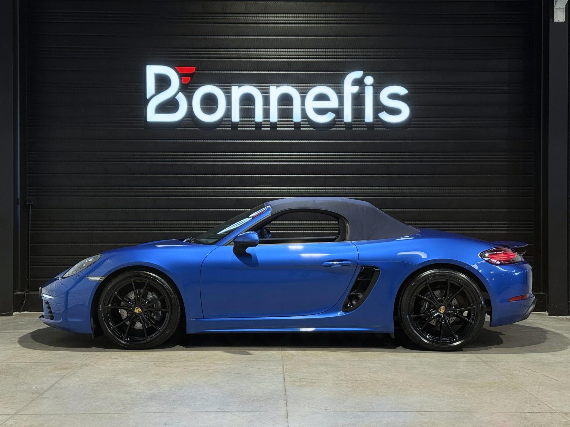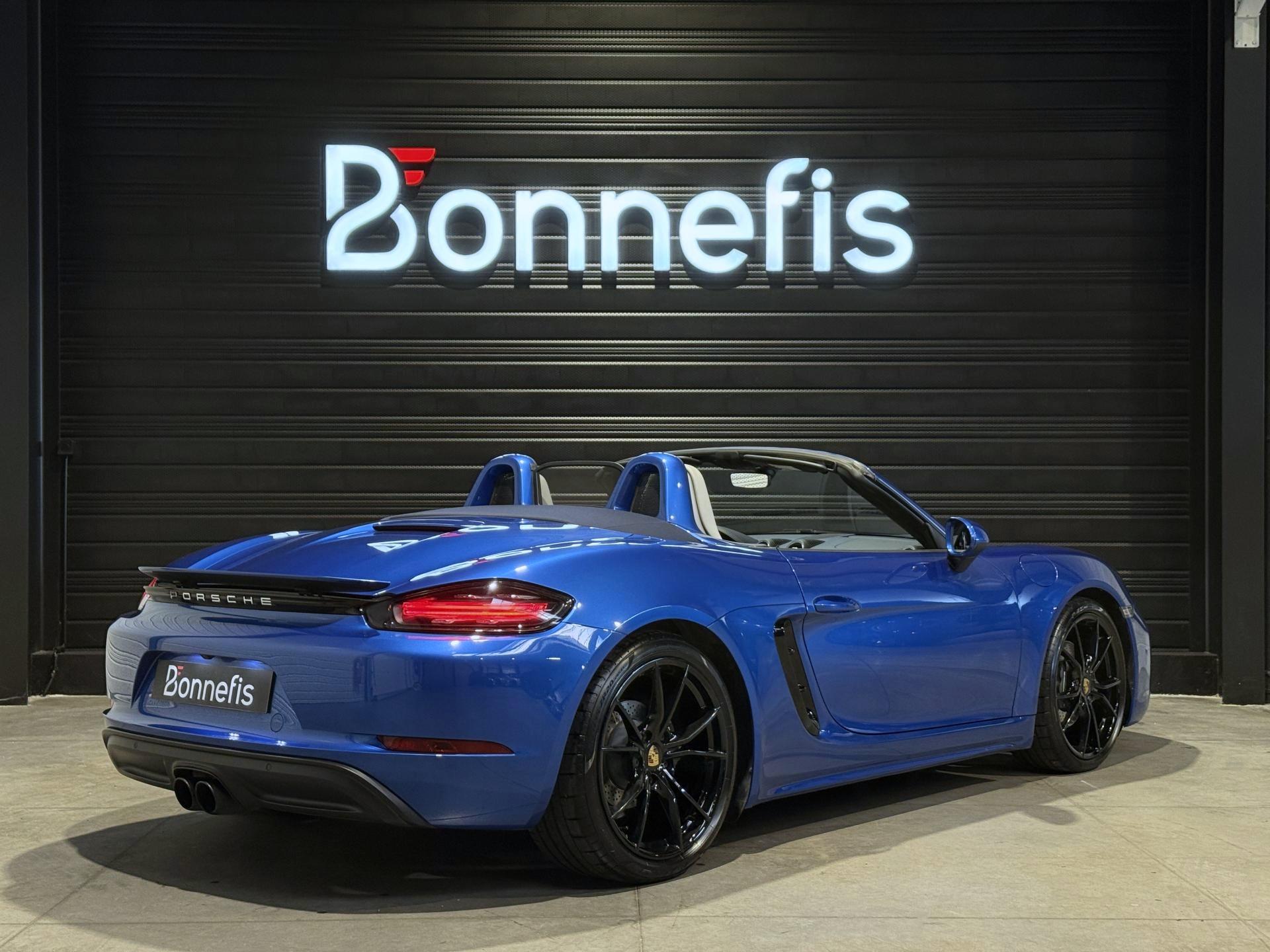 Porsche 718 Boxster 2.0 300 Ch BVA PDK cabriolet, extérieur bleu saphir métallisée, intérieur cuir bicolore Noir / Craie ( 3 590 € ), 19 cv, 2 portes, première mise en circulation le 23/03/2017.