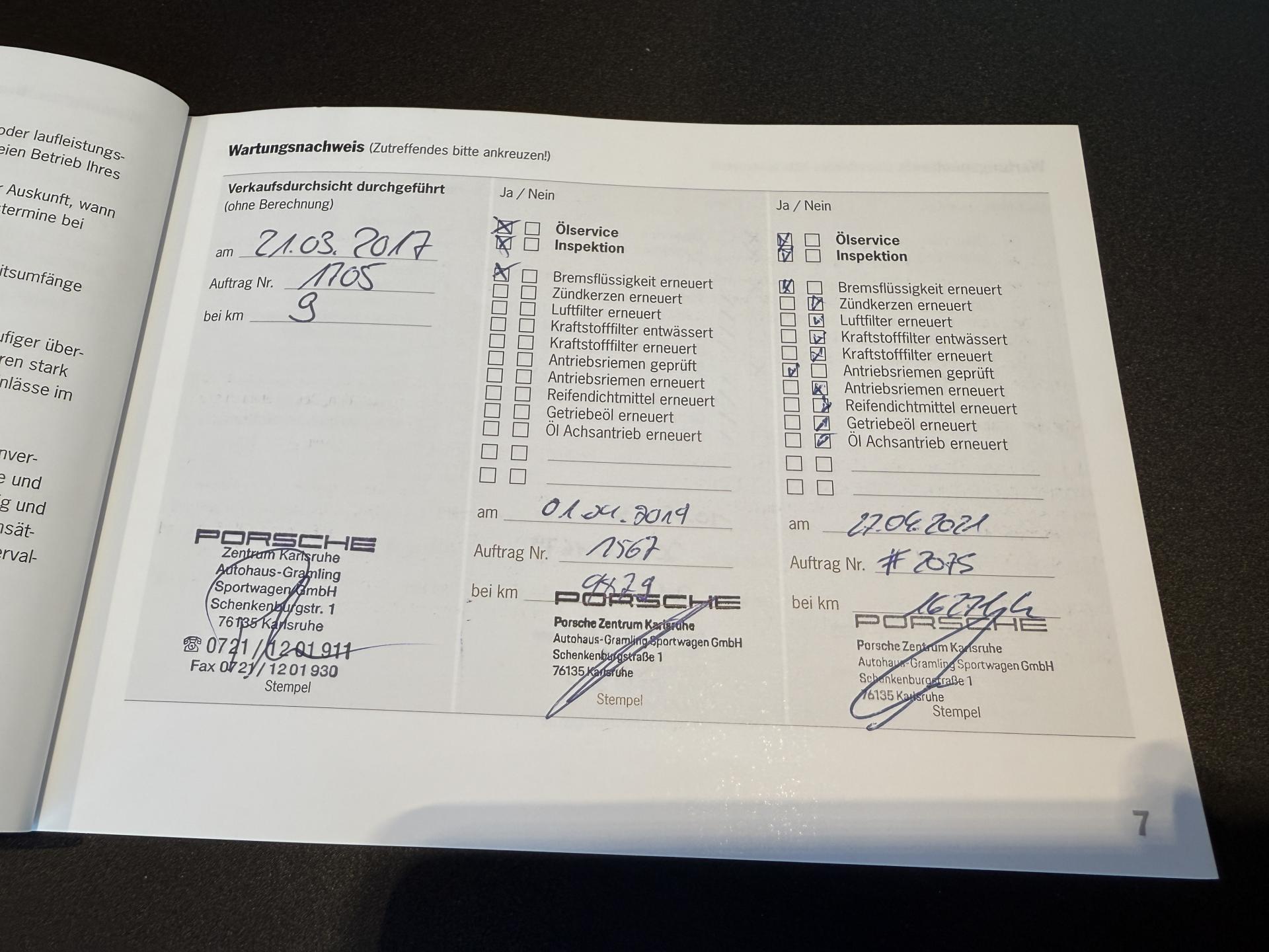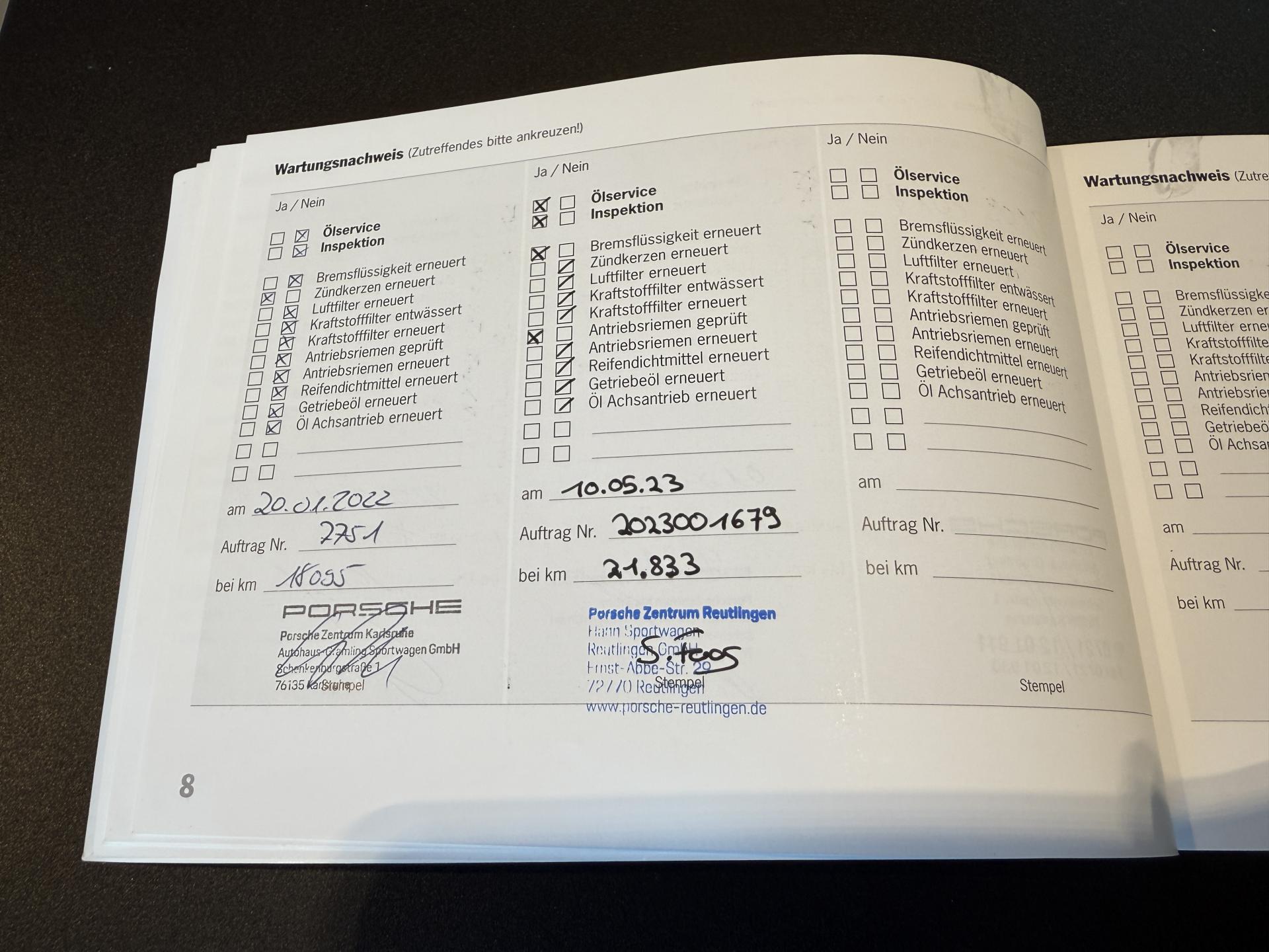 - 1er entretien fait le 01/04/2019 à 9 879Km chez Porsche. ( Vidange moteur + liquide de frein )