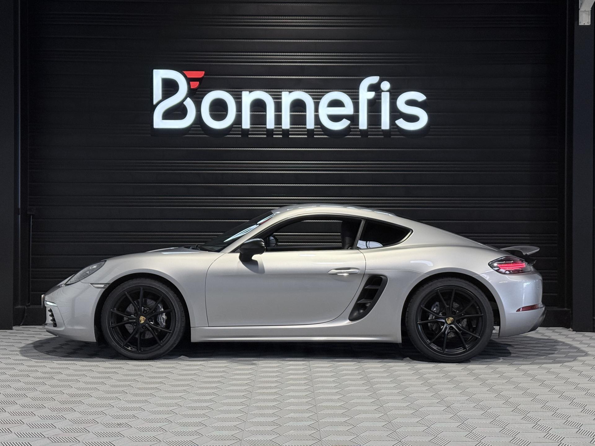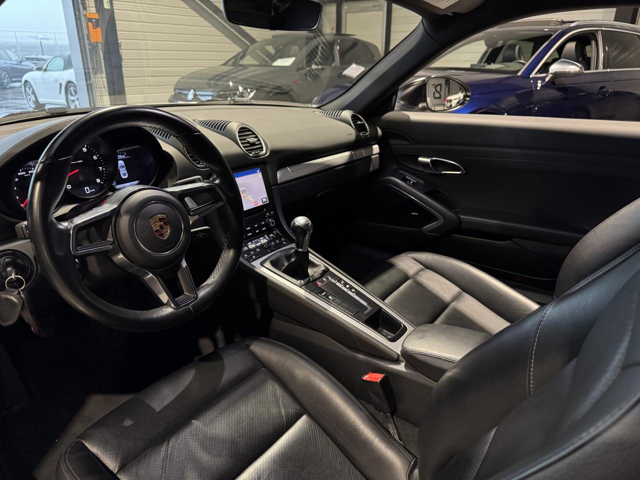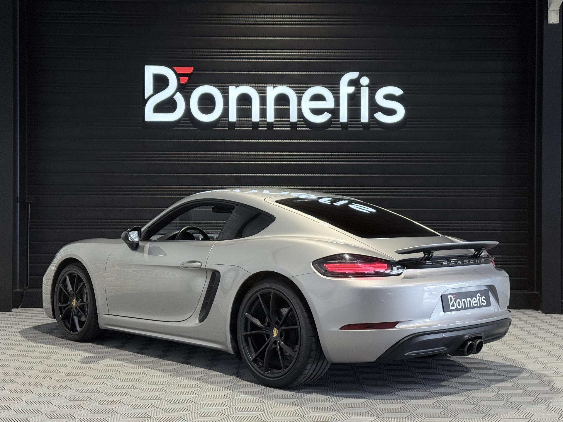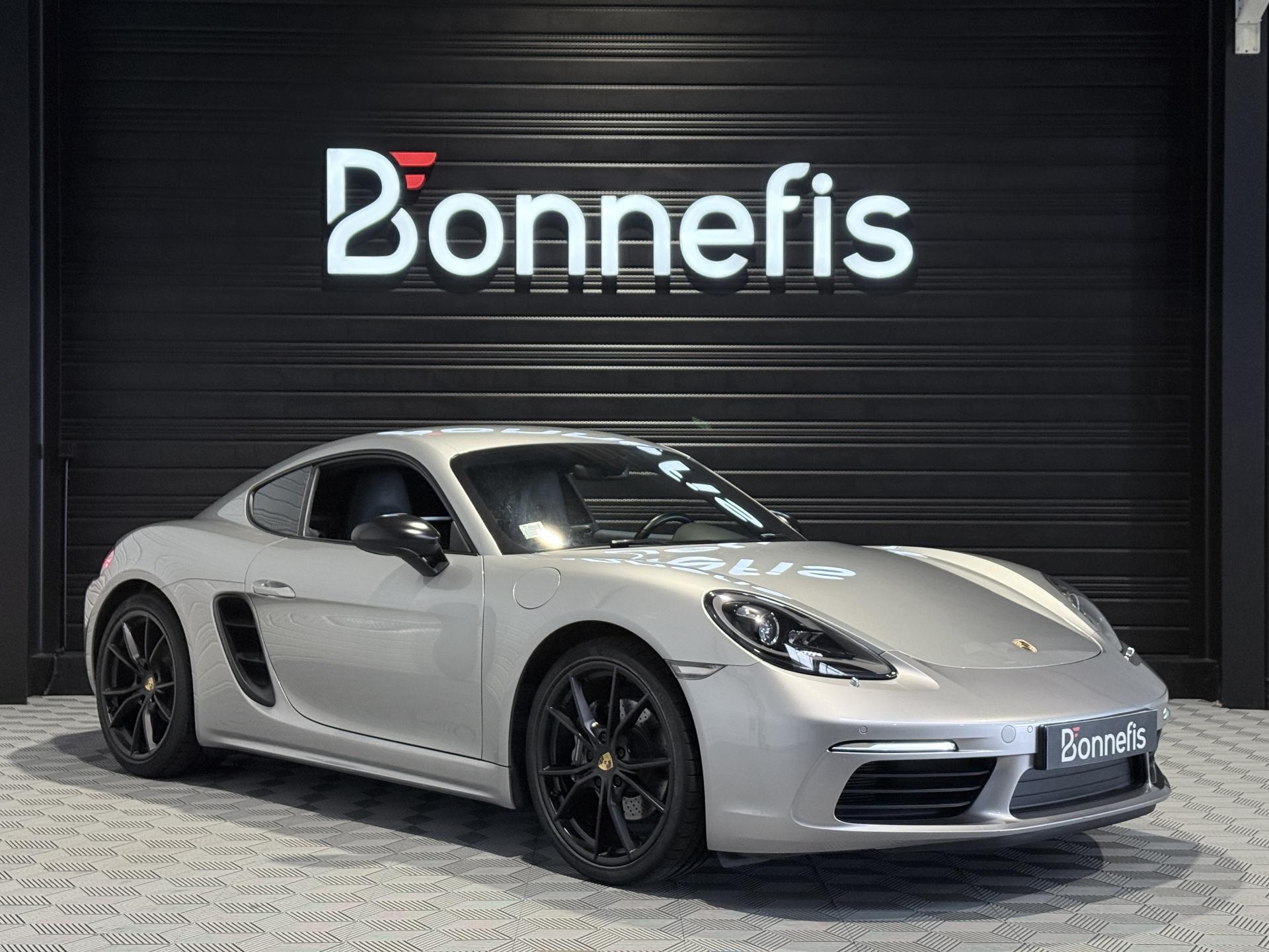 Porsche 718 Cayman 2.0 300Ch coupé BVM, extérieur argent GT métallisée ( 830 € ), intérieur pack cuir / similicuir noir, 20 cv, 2 portes, première mise en circulation le 14/03/2017.