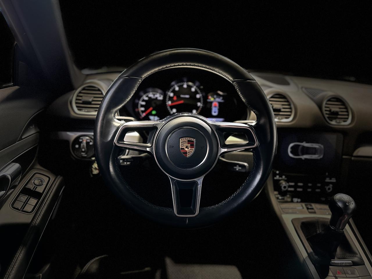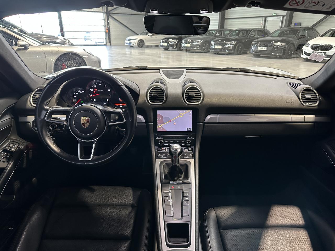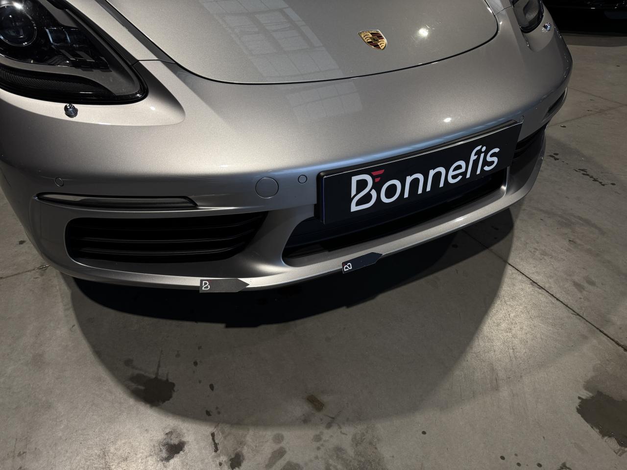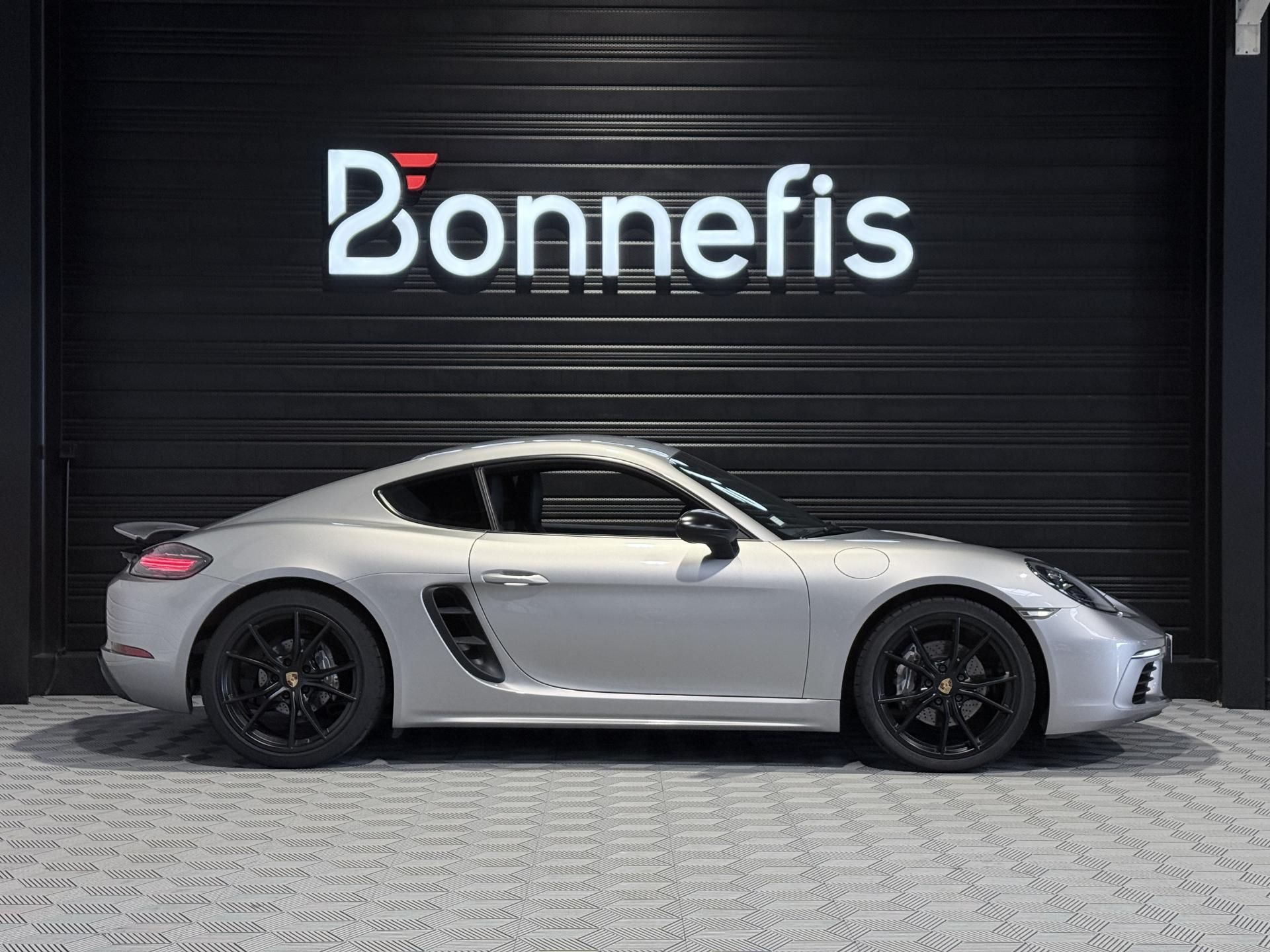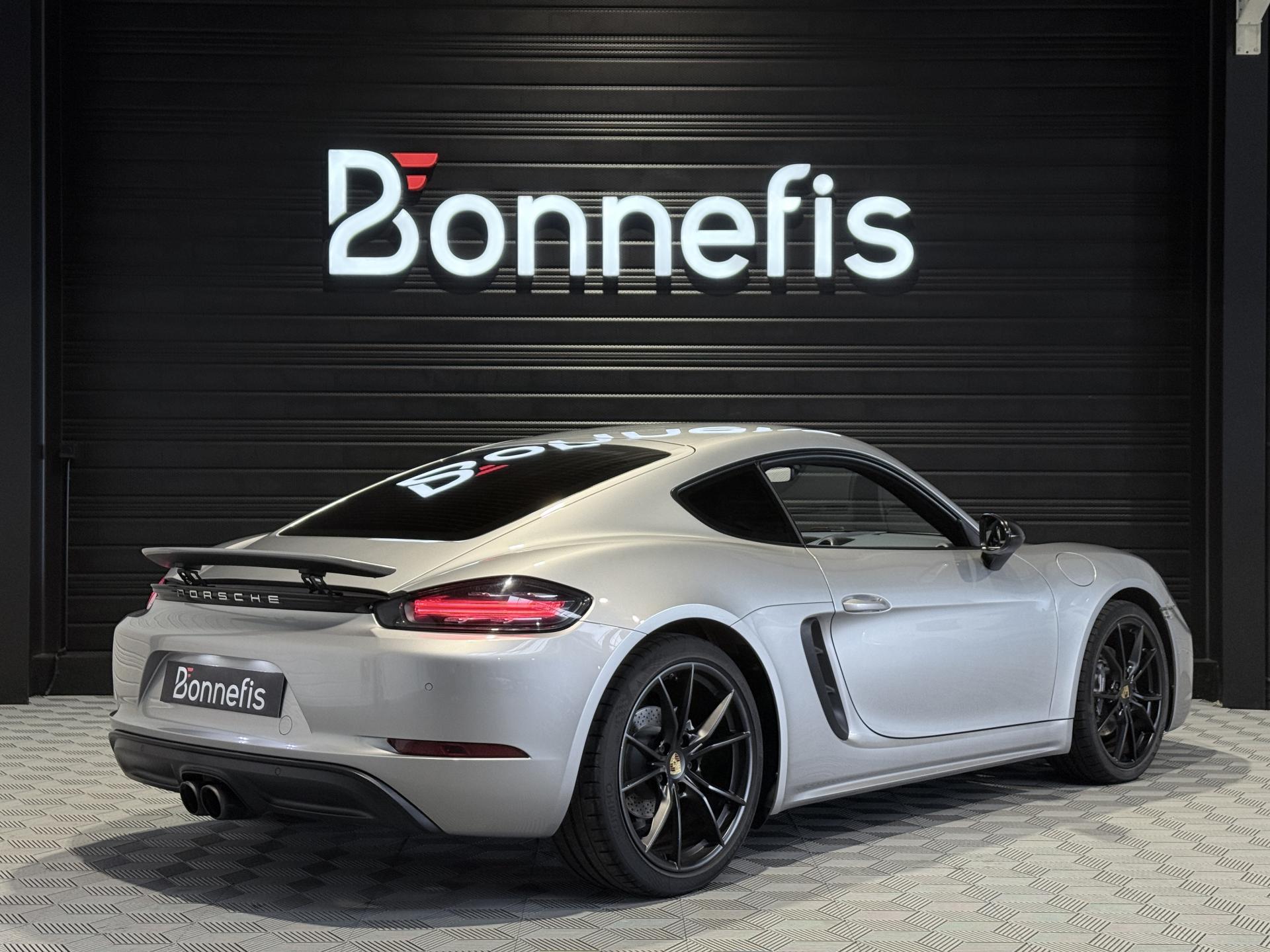 Porsche 718 Cayman 2.0 300Ch coupé BVM, extérieur argent GT métallisée ( 830 € ), intérieur pack cuir / similicuir noir, 20 cv, 2 portes, première mise en circulation le 14/03/2017.