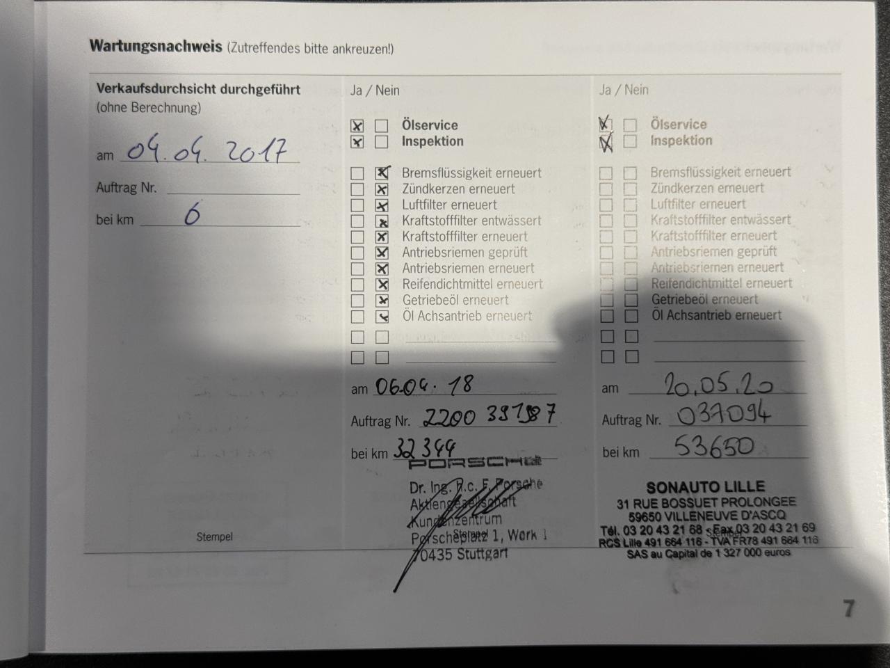 - 1er entretien fait le 06/04/2018 à 32 344Km chez Porsche. ( Vidange moteur )