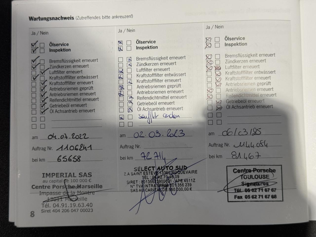 - 3ème entretien fait le 04/07/2022 à 65 658Km chez Porsche. ( Vidange moteur + liquide de frein + bougies d'allumage )