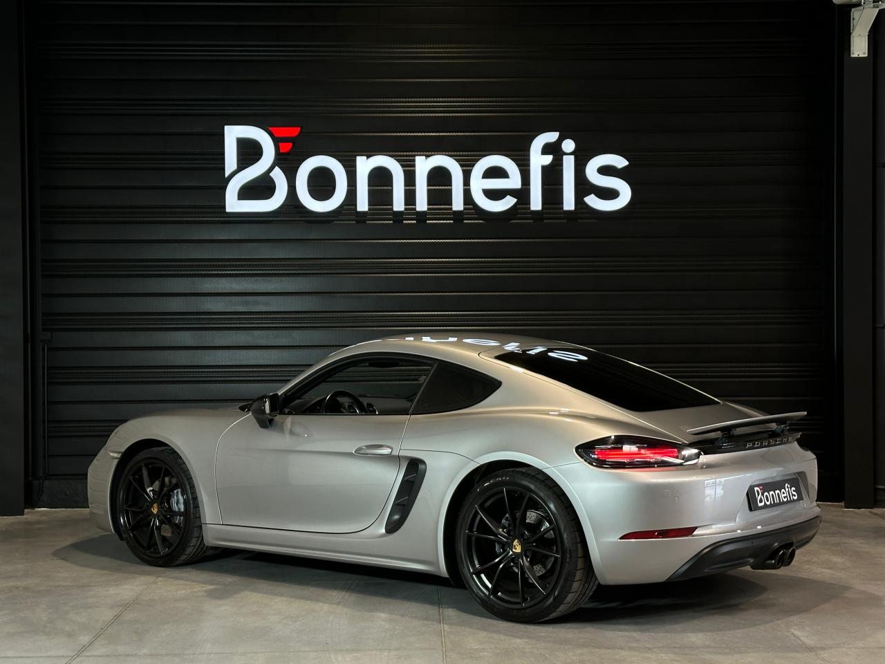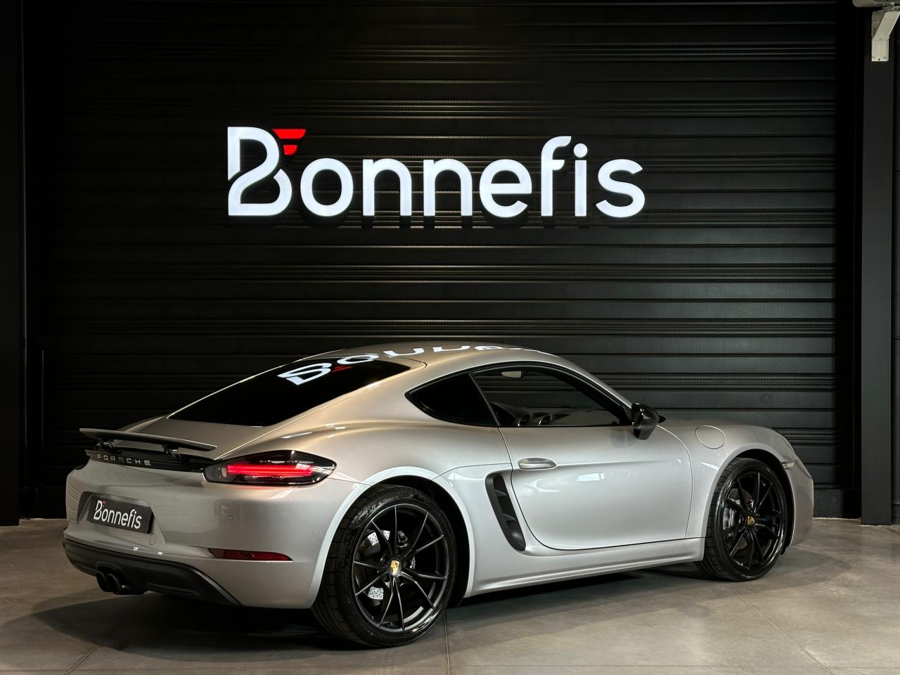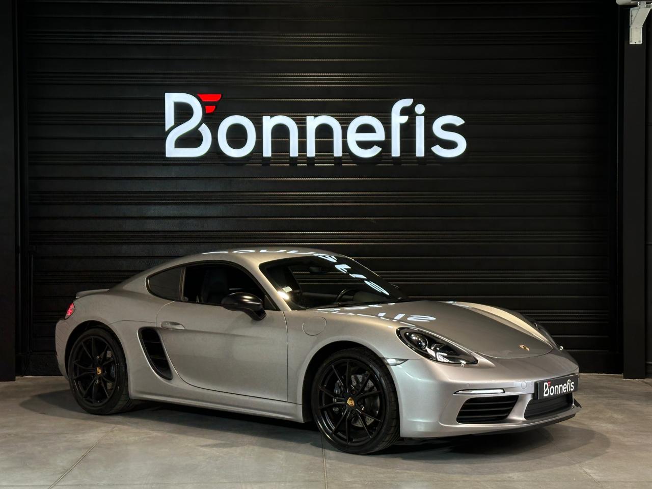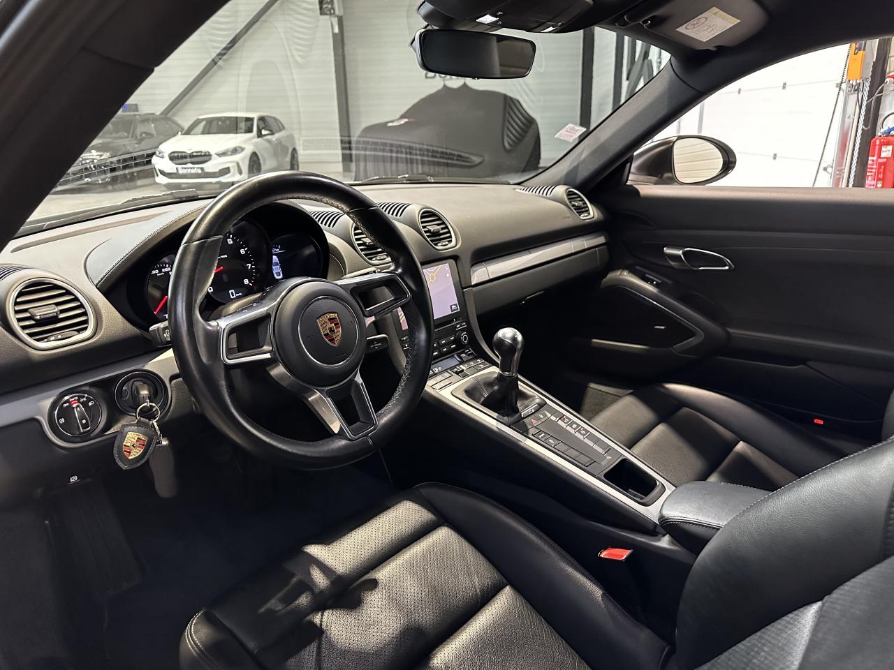 Porsche 718 Cayman 2.0 300Ch coupé BVM, extérieur argent GT métallisée ( 830 € ), intérieur pack cuir / similicuir noir, 20 cv, 2 portes, première mise en circulation le 14/03/2017.