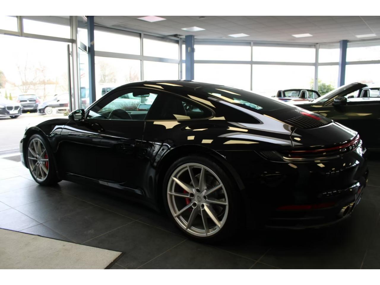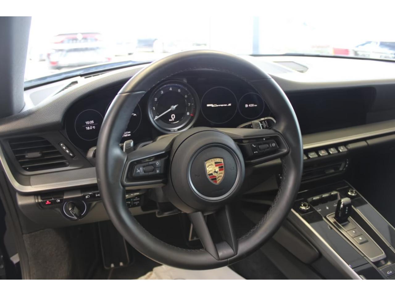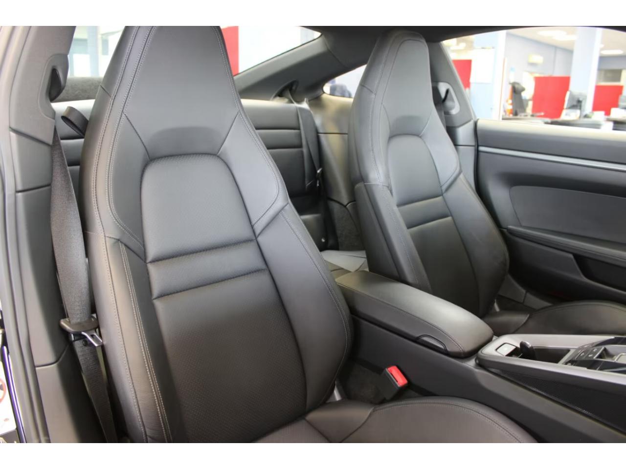 Airbag conducteur/passager, rétroviseur extérieur asphérique gauche, rétroviseurs extérieurs à réglage électrique. Rétroviseurs extérieurs réglables et chauffants (avant et arrière), clignotants à LED, étriers de freins rouges, Connect Plus (Bluetooth, Apple CarPlay, Wi-Fi, système de suivi du véhicule), ciel de toit en tissu, système d'alarme antivol avec surveillance intérieure, compte-tours, allumage automatique des phares, seuils de porte en aluminium avec désignation du modèle, aide au démarrage en côte, système d'alerte de collision avec freinage d'urgence et détection des piétons, aide au stationnement avant et arrière, vitres électriques, encadrement de vitres noir, tapis de sol, régulateur de vitesse, boîte de vitesses à double embrayage à 8 rapports (PDK), porte-gobelets, phares à LED, feux arrière à LED, lunette arrière chauffante, aileron arrière, chargeur sans fil pour smartphones, intérieur cuir, couleur cuir standard, filtre à air d'habitacle à charbon actif (filtre anti-odeurs), pack éclairage intérieur/pack design lumière, pack intérieur : Diamar Dark Silver. Fixations Isofix pour siège enfant sur le siège passager avant, carrosserie 2 portes, Keyless Drive, crochets porte-manteaux sur les dossiers des sièges en cuir, climatisation automatique bizone, système de protection contre les impacts latéraux Porsche (POSIP) avec airbags rideaux, airbags frontaux tête/épaules (airbag thorax), jantes alliage avant/arrière : 8,5x20 / 11,5x21 (jantes Carrera S), volant multifonctions (cuir sport/lisse, 3 branches), services mobiles en ligne Android Auto, moteur 3.0 L - 331 kW, pot catalytique, filtre à particules essence (GPF), frein de stationnement électrique, Porsche Active Suspension Management (PASM), Porsche Communication Management (PCM) avec module de navigation en ligne, Porsche Stability Management (PSM), Porsche Torque Vectoring Plus (PTV Plus), radio numérique (DAB+), système de surveillance de la pression des pneus, lettrage de la série du modèle, bas de caisse peints, direction assistée électromécanique. Pack audio Plus, Bouton Sport, Sièges Sport Plus (réglables électriquement, 2 positions), Système Start/Stop, Turbo, Peinture opaque, Système de suivi du véhicule (PVTS), Vitres teintées, Antidémarrage, Verrouillage centralisé avec télécommande, Rétroviseurs extérieurs rabattables électriquement, Système d'assistance à la conduite : ParkAssist avant et arrière avec caméra de recul, Système d'assistance à la conduite : Assistance au maintien de voie, Système d'assistance à la conduite : Assistance au changement de voie, Véhicule sans désignation de modèle, Véhicule sans désignation de type sur les appuie-tête, Régulateur de vitesse avec régulateur de distance, Phares à DEL incl. Système d'éclairage dynamique Porsche (PDLS), Réservoir de carburant : 84 litres, Réservoir de carburant : 90 litres, Toit ouvrant électrique (verre), Sièges avant chauffants, Système audio BOSE, Sièges sport (réglables électriquement, 4 positions),