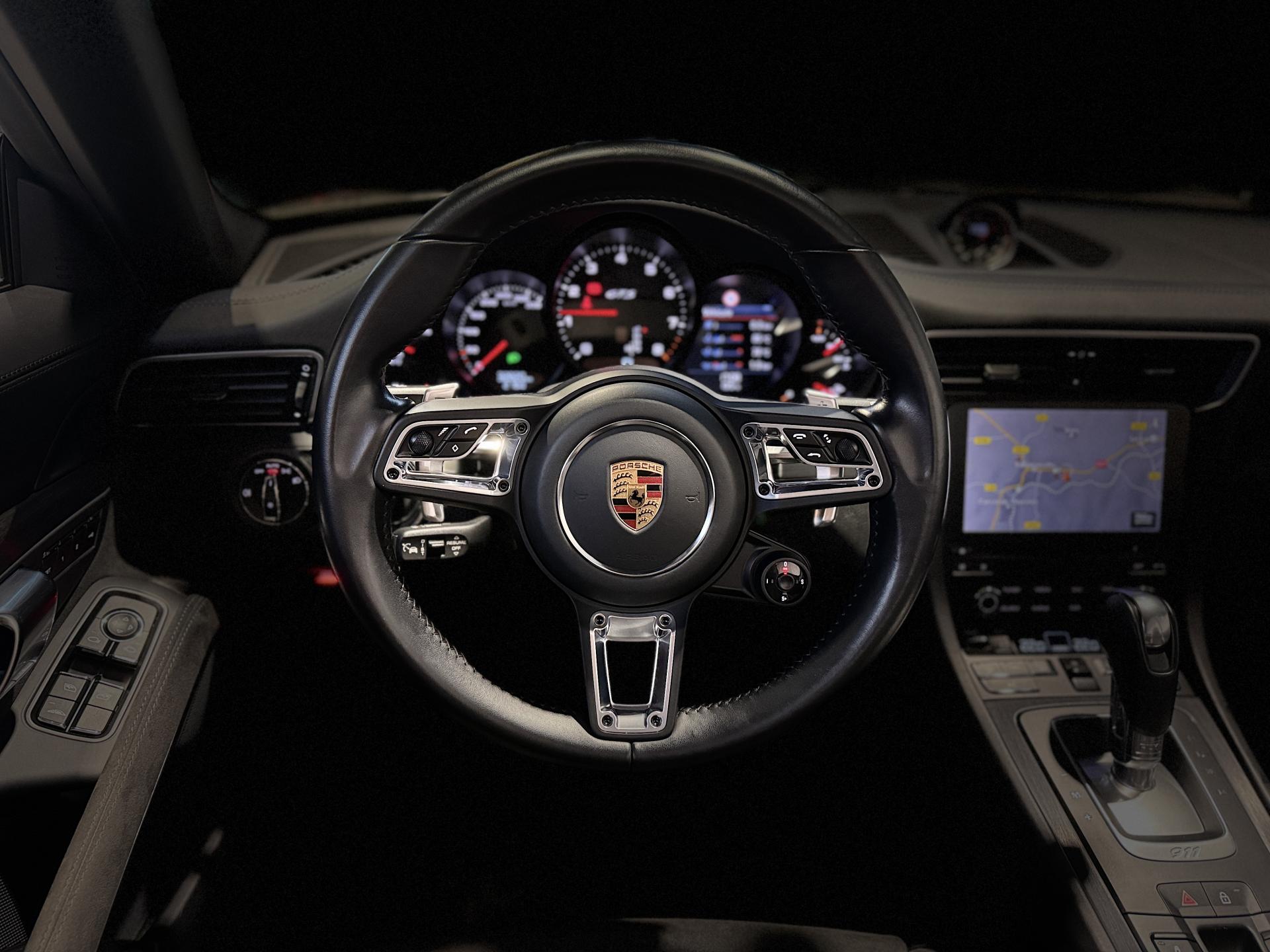 Nombreuses options : GPS, caméra de recul, Apple Carplay, radars avants et arrières de détection d'obstacles ( 1 020 € ) , sièges sport adaptatifs plus (18 réglages électriques) avec pack mémoire ( 2 840 € ), phares à LED en noir avec fonction Porsche Dynamic Light System Plus (PDLS+) ( 2 530 € ), système de levage de l'essieu avant : suspension autonivelante : manuelle AV ( 2 280 € ), pack Sport Chrono ( 2 240 € ), régulateur de vitesse adaptatif avec fonction Porsche Active Safe (PAS) ( 2 220 € ), dossiers des sièges Sport Plus en cuir ( 1 550 € ), Bose Surround Sound-System : 12 haut-parleurs haute fidélité BOSE, amplificateur, puissance totale de 445W ( 1 430 € ), pack Design Sport (habillages de bas de caisse couleur caisse Design Sport) ( 1 200 € ), assistance angles morts ( 700 € ), jupes latérales peintes ( 620 € ), rétroviseurs intérieur/extérieur avec fonction anti-éblouissement automatique et capteur de pluie intégré ( 550 € ), radio numérique ( 480 € ), volant multifonction et chauffant ( 470 € ), sièges chauffants ( 470 € ), pack luminosité : éclairage d’ambiance d’intensité variable à diodes électroluminescentes (DEL), éclairage de seuil de porte ( 440 € ), affichage des limitations de vitesse ( 420 € ), HomeLink (ouverture de porte de garage) ( 290 € ), Servotronic Plus : direction assistée Servotronic ( 260 € ), pare-brise teinté dégradé ( 110 € ), pack fumeur (cendrier et allume-cigares) ( 50 € ), volant Sport GT en cuir, jantes 911 Turbo S 20", filets de rangement au niveau du plancher côté passager, ...