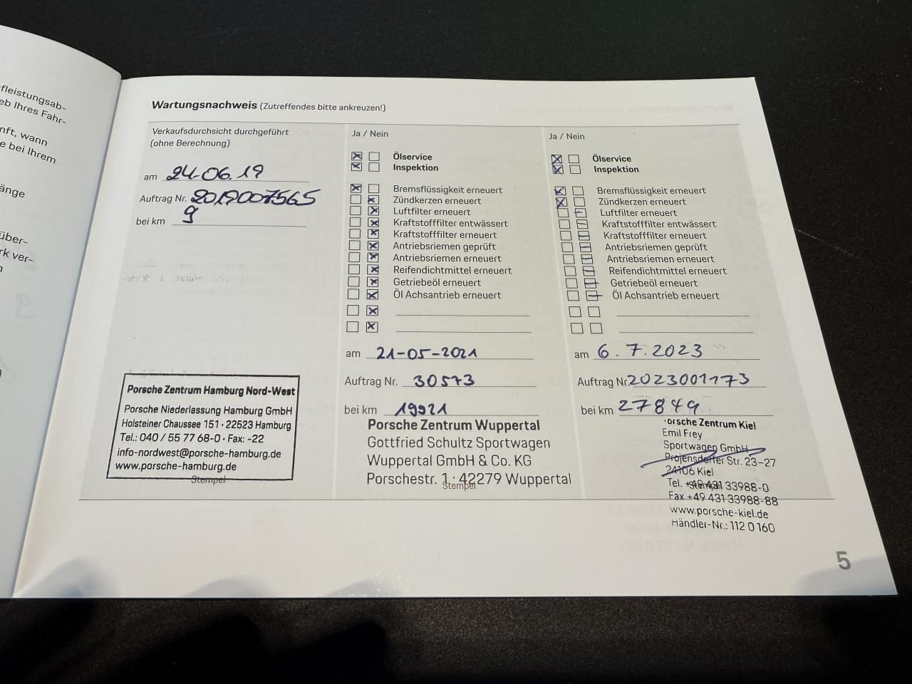 Carnet d'entretien Porsche disponible :