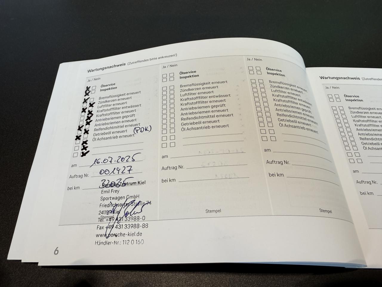 - 3ème entretien fait le 16/07/2025 à 32 035Km chez Porsche. ( Vidange moteur + liquide de frein + filtre à air + vidange de boîte )