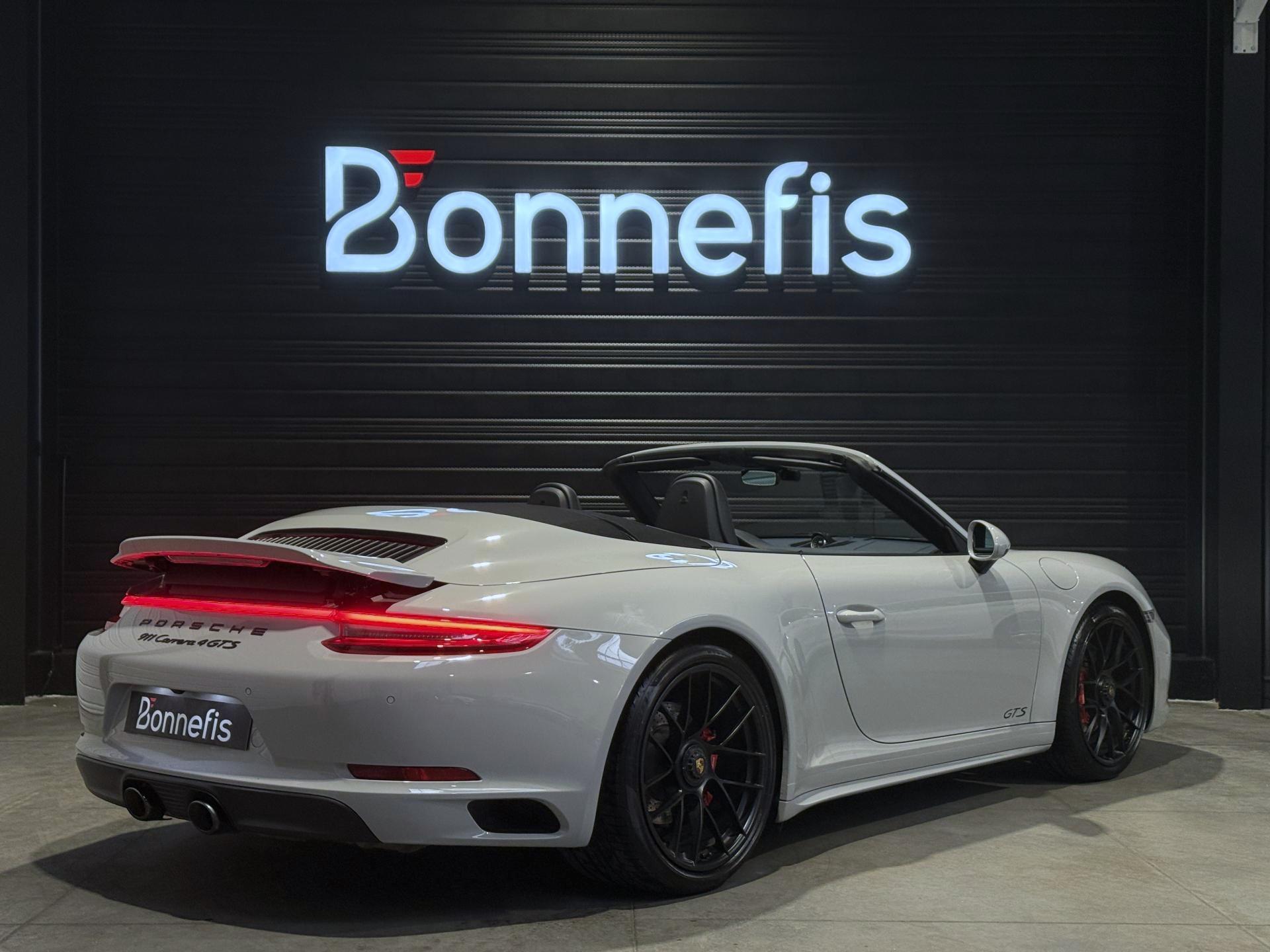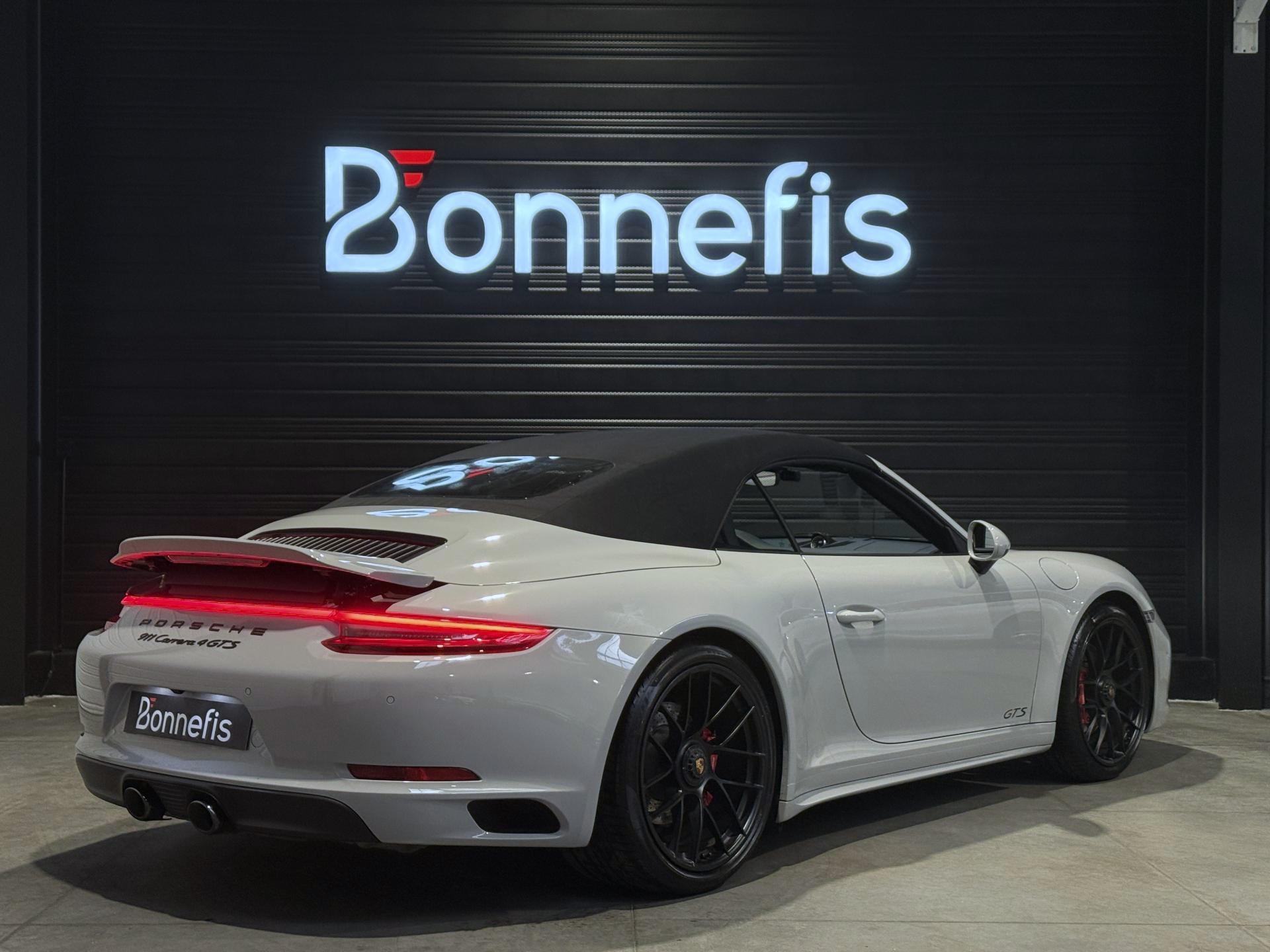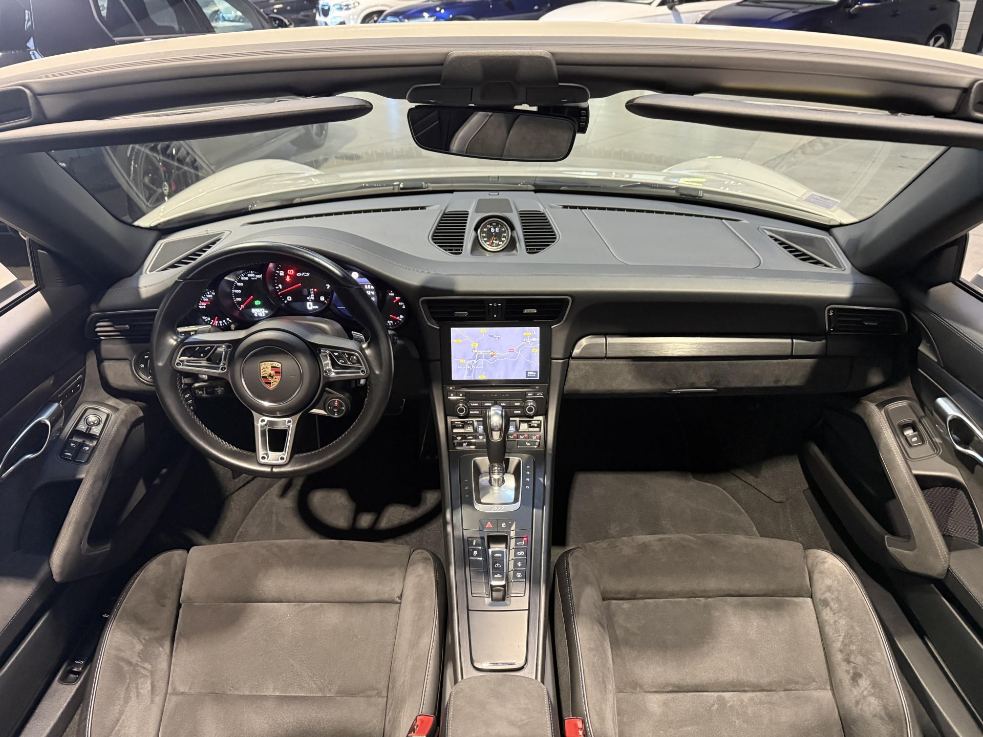 Porsche 911 991.2 Cabriolet Carrera 4 GTS 3.0 450 Ch BVA PDK, extérieur gris craie ( 2 680 € ), intérieur cuir / alcantara noir ( 3 410 € ), 34 cv, 2 portes, première mise en circulation le 27/06/2019.