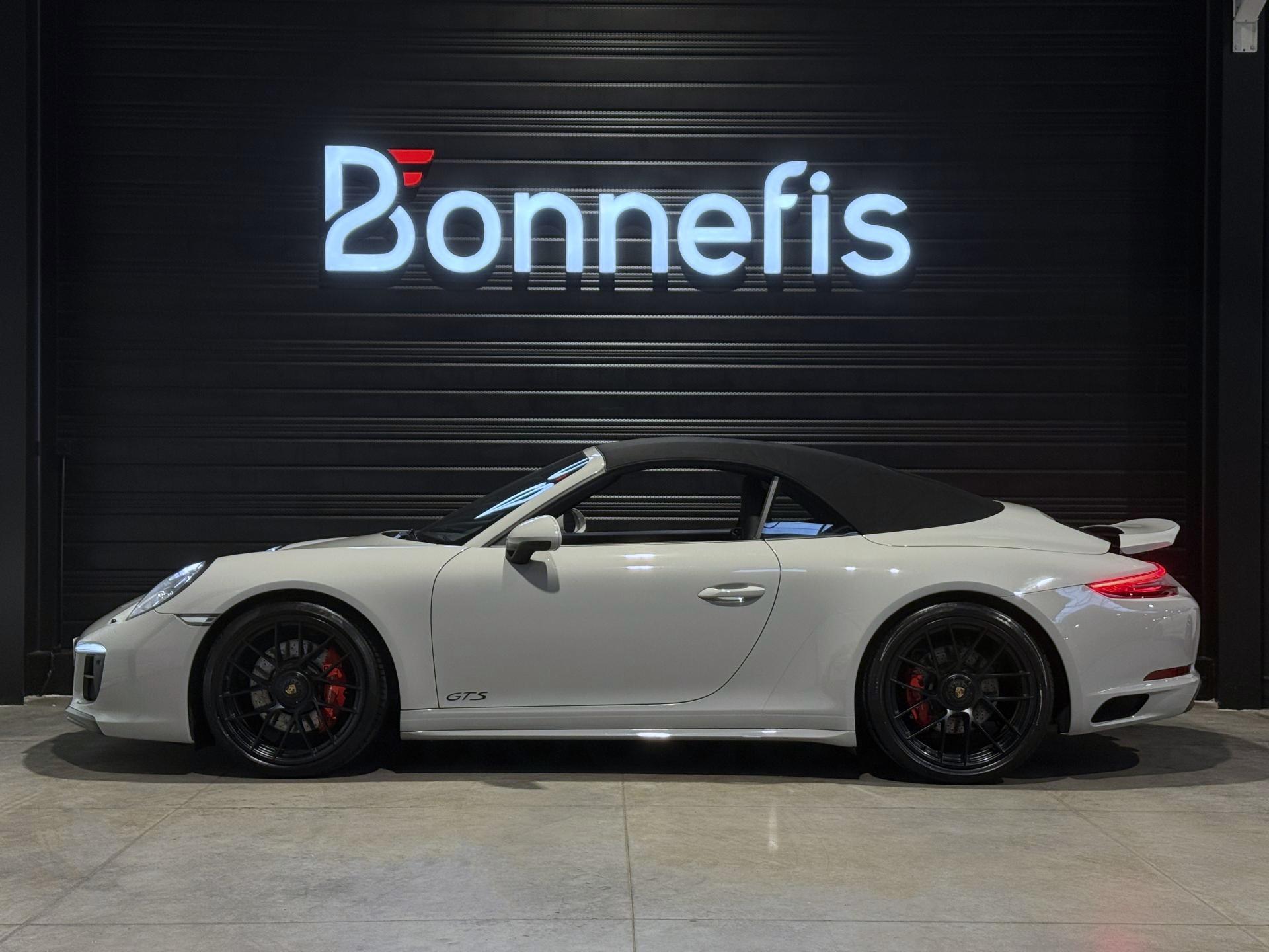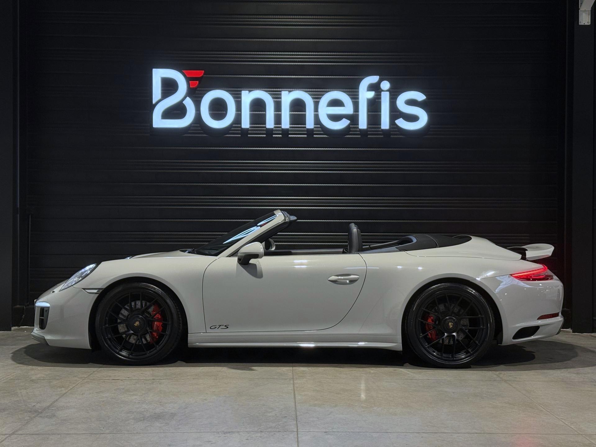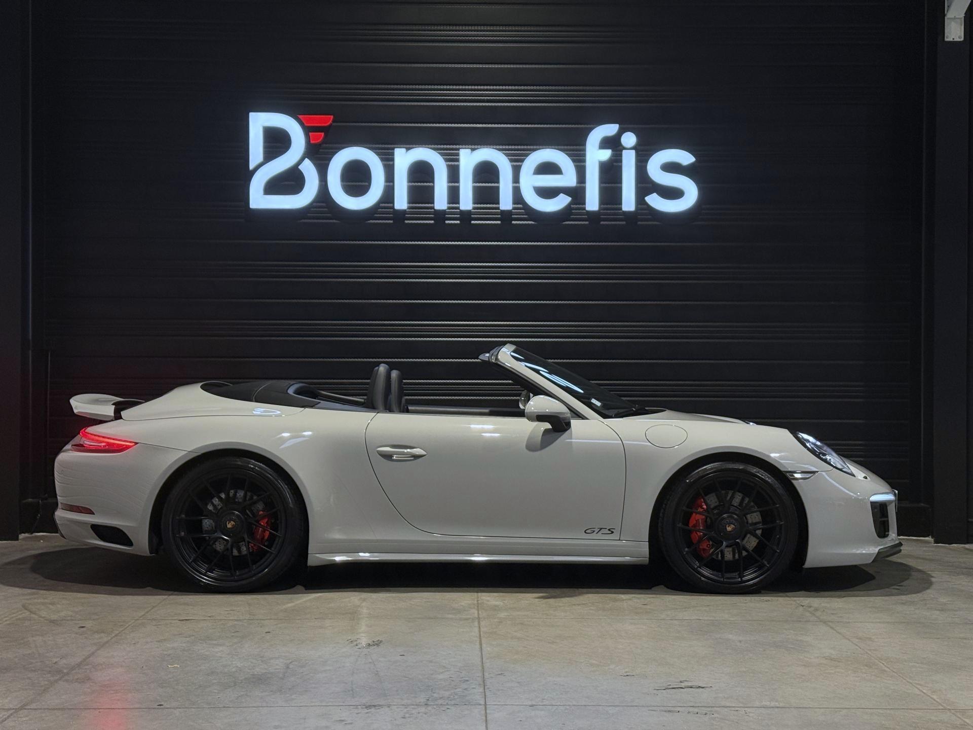 Porsche 911 991.2 Cabriolet Carrera 4 GTS 3.0 450 Ch BVA PDK, extérieur gris craie ( 2 680 € ), intérieur cuir / alcantara noir ( 3 410 € ), 34 cv, 2 portes, première mise en circulation le 27/06/2019.