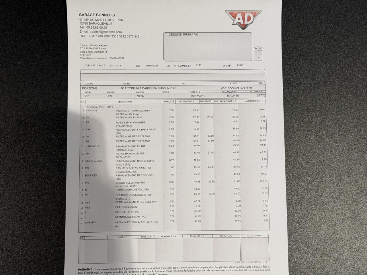 - 1er entretien fait le 10/03/2021 à 15 185Km chez Porsche. ( Vidange moteur + liquide de frein )