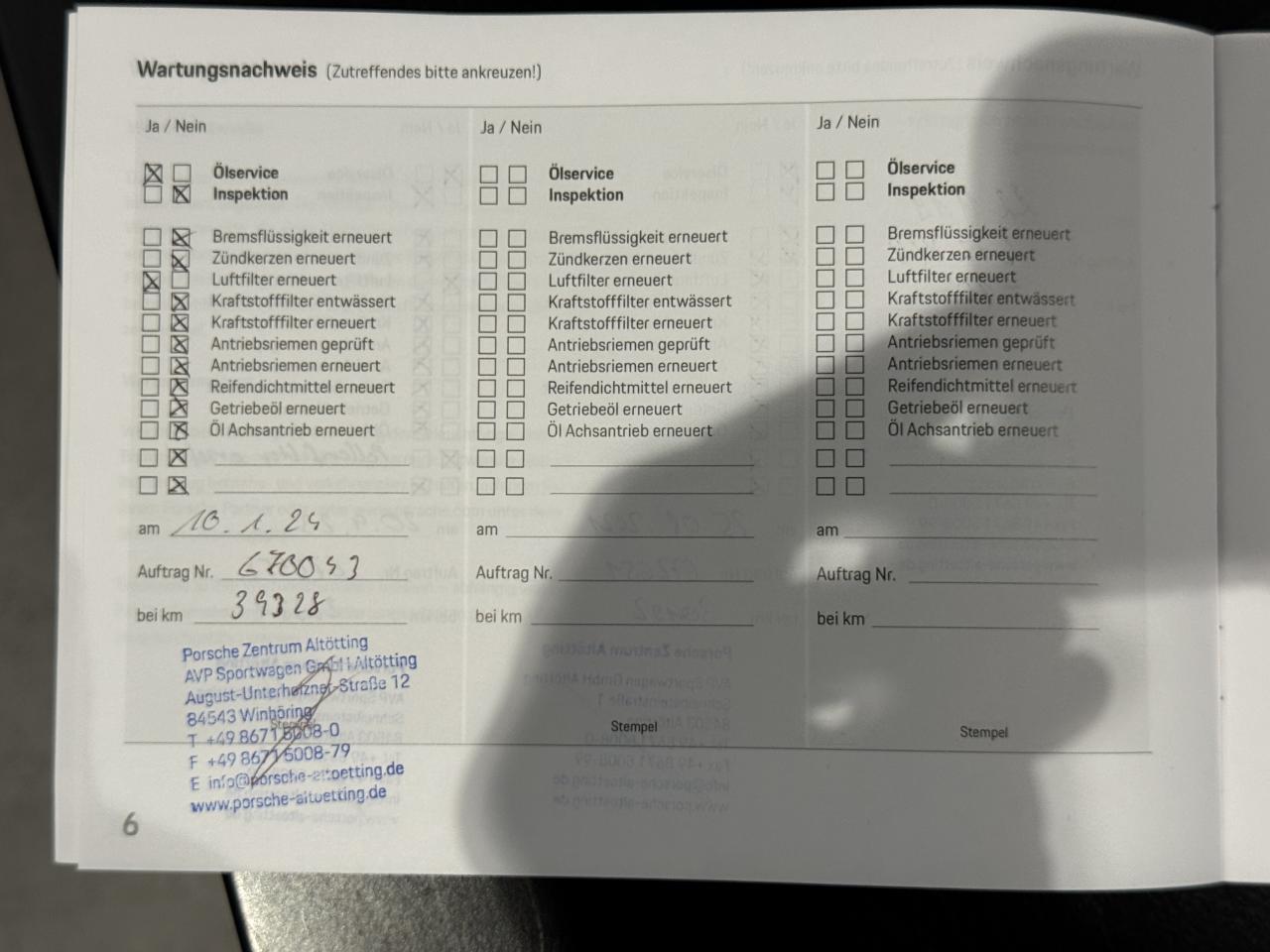 - 3ème entretien fait le 10/01/2024 à 39 328Km chez Porsche. ( Vidange moteur + filtre à air )