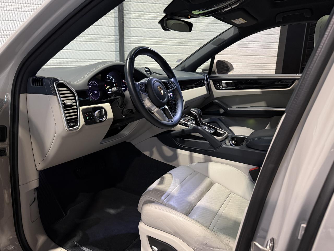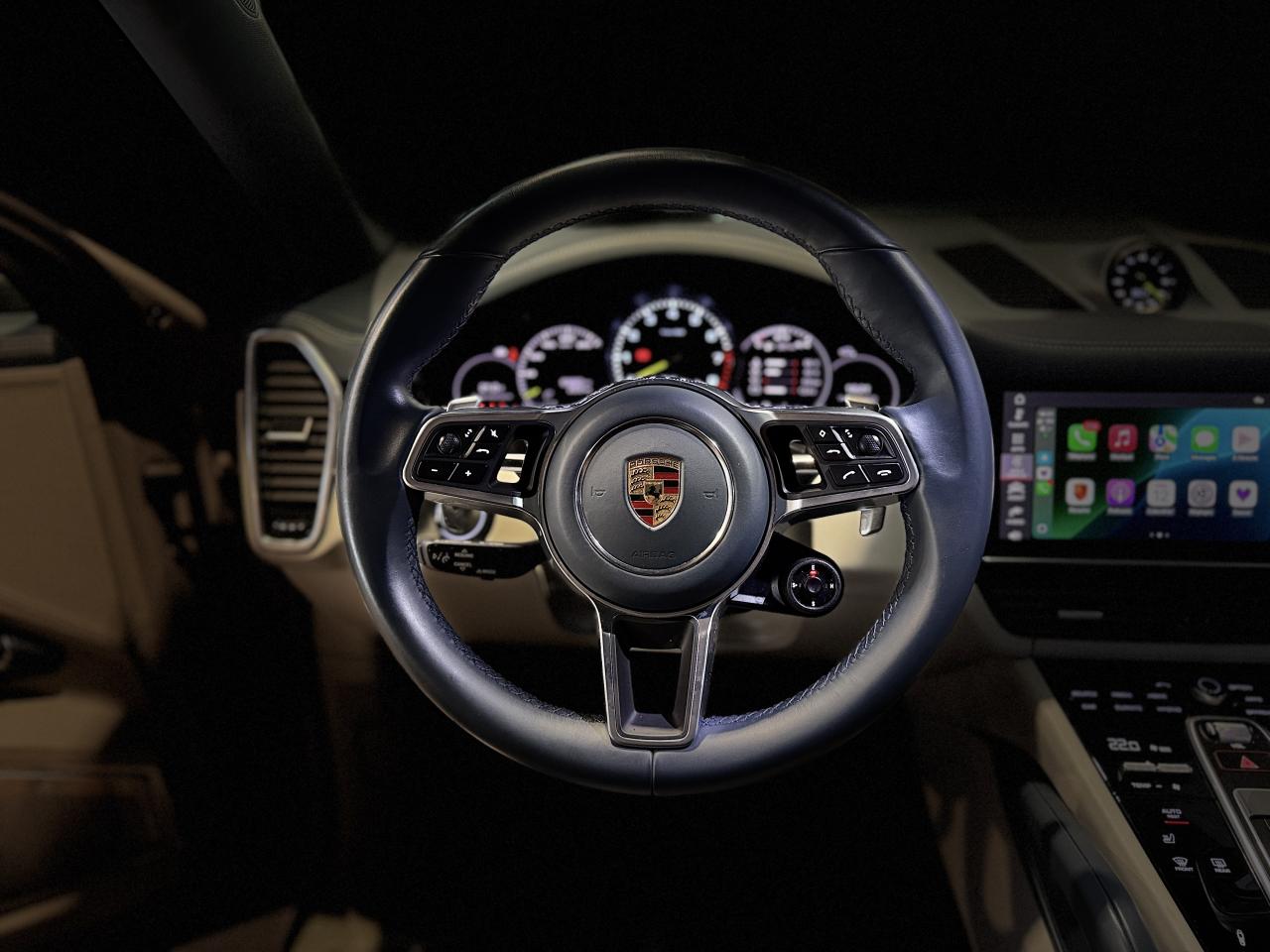Porsche Cayenne Coupé E-Hybrid 3.0 V6 462Ch Tiptronic BVA, extérieur craie, intérieur cuir bicolore bleu Graphite / Craie, 22 cv, 5 portes, première mise en circulation le 02/09/2021.