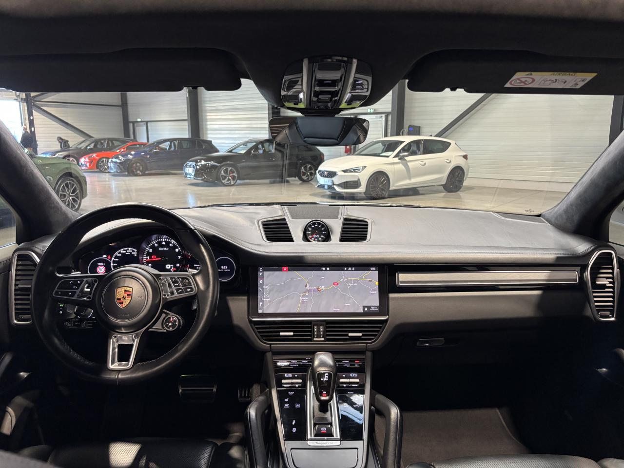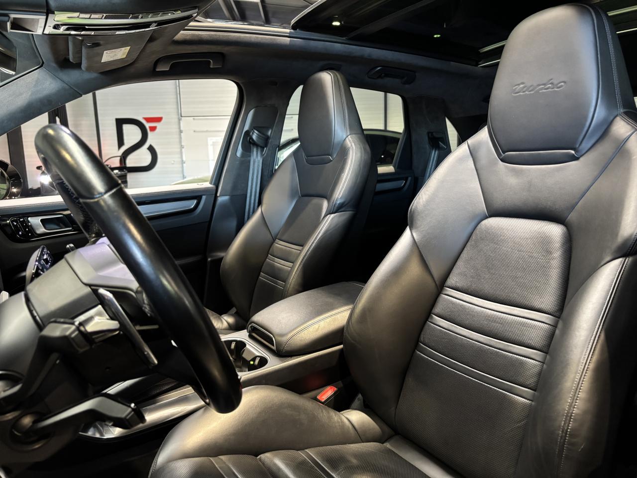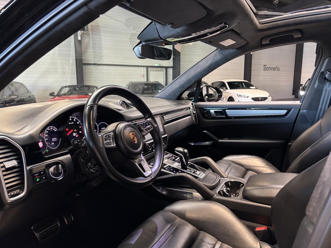 Porsche Cayenne Turbo 4.0 V8 550Ch Tiptronic, extérieur noir intense métallisée, intérieur cuir noir, 46 cv, 5 portes, première mise en circulation le 16/01/2018.