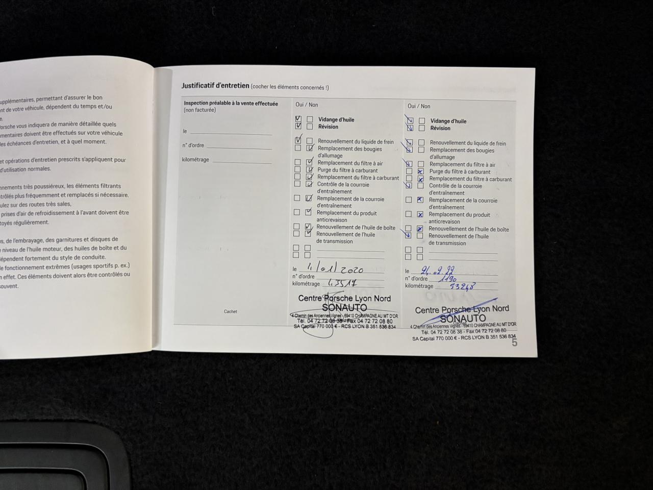 - 1er entretien fait le 04/01/2020 à 43 517Km chez Porsche Lyon. ( Vidange moteur + liquide de frein )