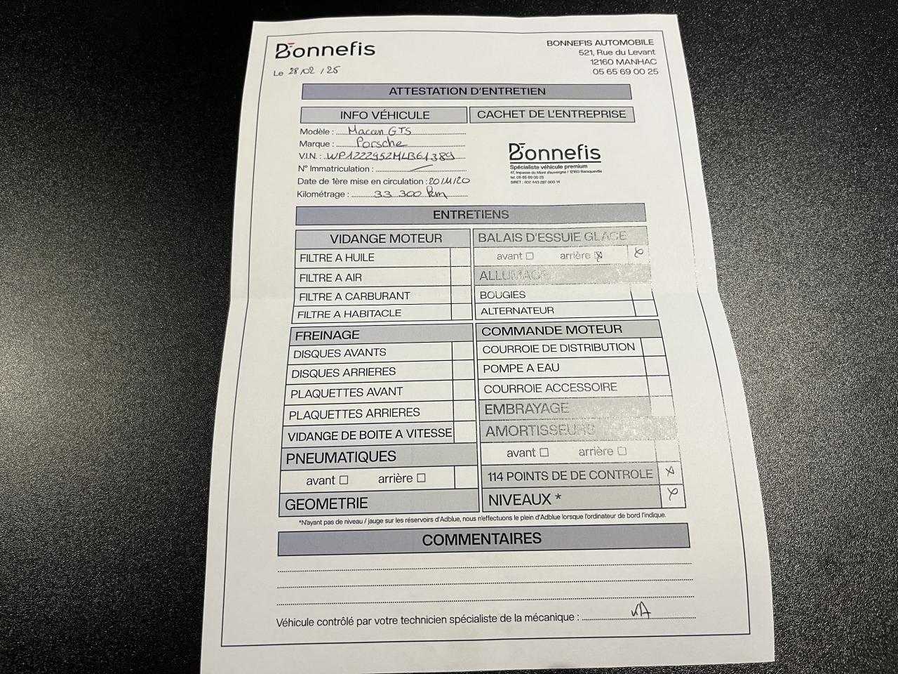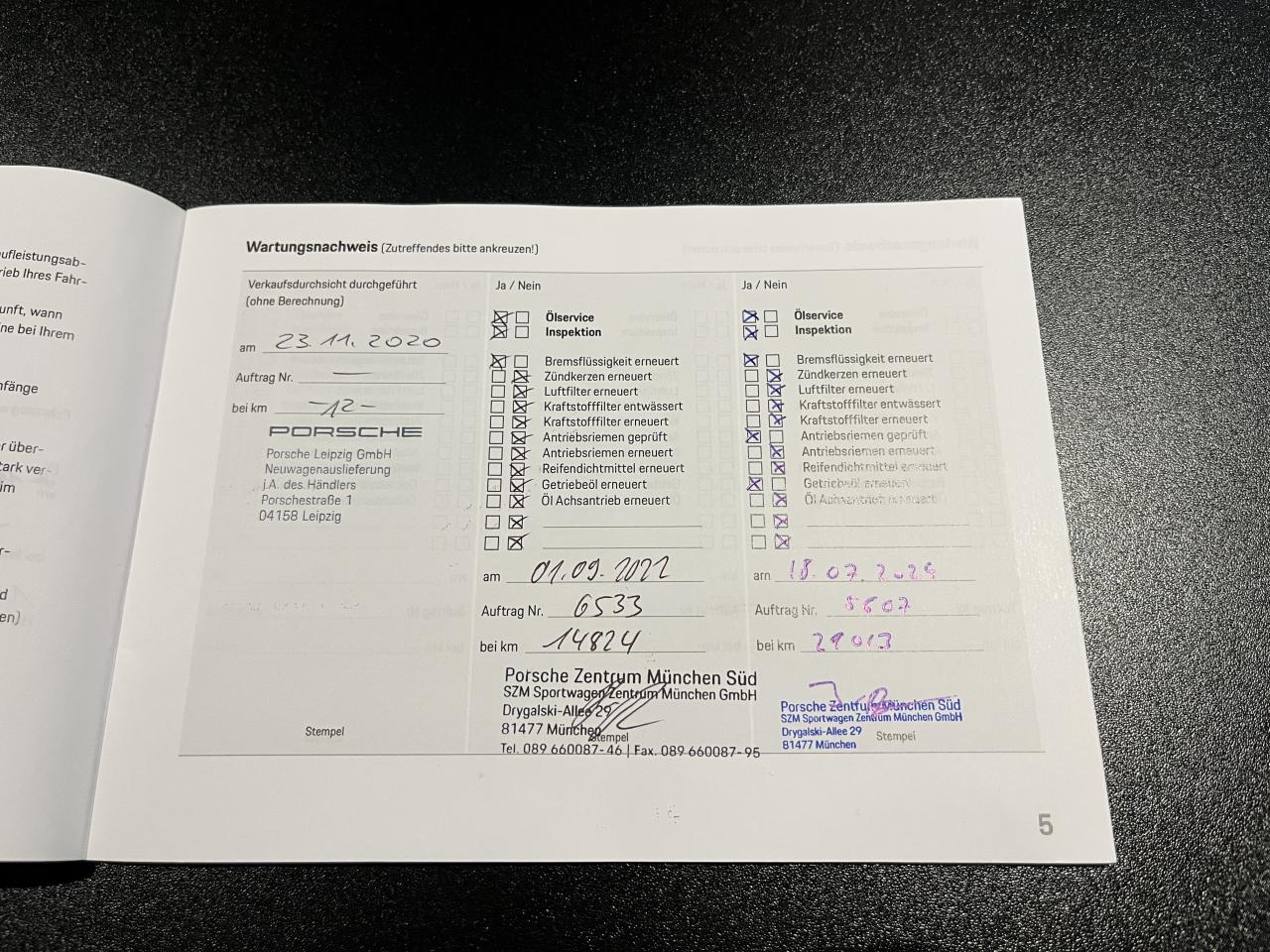 Carnet d'entretien Porsche disponible :