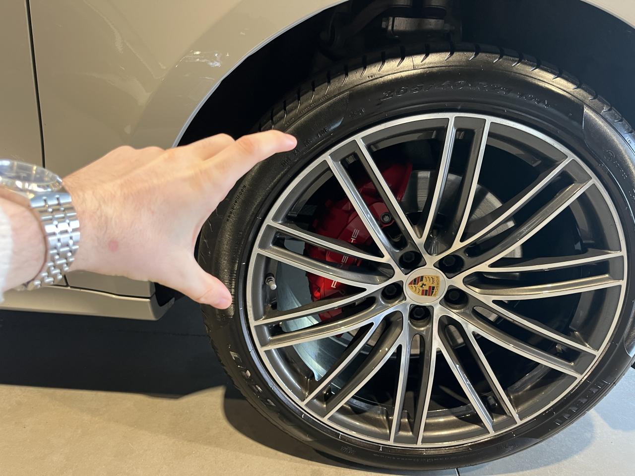 Nombreuses options : GPS, caméra de recul, Apple CarPlay, radars avants et arrières de détection d'obstacles, régulateur de vitesse, cuir GTS Carmine Red avec Alcantara® ( 3 850 € ), pack design sport (kit aérodynamique) ( 3 400 € ), système d'échappement sport sorties noires ( 2 735 € ), aide au stationnement (ParkAssist) à l'avant et à l'arrière avec caméra de recul et vue panoramique ( 2 090 € ), sièges sport avant adaptatifs avec réglage électrique en 18 directions et ensemble de mémoire de réglages ( 1 800 € ), toit panoramique ( 1 620 € ), Porsche Torque Vectoring Plus (PTV Plus) ( 1 500 € ), suspension pneumatique avec système de mise à niveau automatique et fonction antipoussière avec gestion active des suspensions Porsche (PASM) ( 1 490 € ), jantes 21 pouces 911 Turbo ( 1 400 € ), régulateur de vitesse adaptatif ( 1 280 € ), crochet de remorquage rabattable électriquement ( 1 230 € ), Bose® Surround Sound System ( 1 190 € ), jupes latérales peintes en couleur extérieure Porsche Exclusive ( 821 € ), entrée confort (Porsche Entry & Drive) ( 710 € ), avertissement de sortie de voie ( 590 € ), vitres teintées ( 480 € ), rétroviseurs extérieurs SportDesign peints dans la couleur de la carrosserie ( 470 € ), phares à LED au design noir incl. Porsche Dynamic Light System Plus (PDLS+) ( 460 € ), pare-brise chauffant ( 430 € ), sièges avant chauffants ( 420 € ), radio digitale DAB+ ( 420 € ), boussole avec affichage du tableau de bord ( 370 € ), reconnaissance des limites de vitesse ( 360 € ), pack d'éclairage confort ( 310 € ), HomeLink® (programmation à distance, ouverture de porte de garage) ( 290 € ), direction assistée Plus ( 270 € ), pack rangement ( 240 € ), garnitures de vitres latérales en noir (brillant) ( 230 € ), réservoir de carburant 75 L ( 130 € ), tapis de sol ( 120 € ), cendrier et allume-cigare avant ( 50 € )....