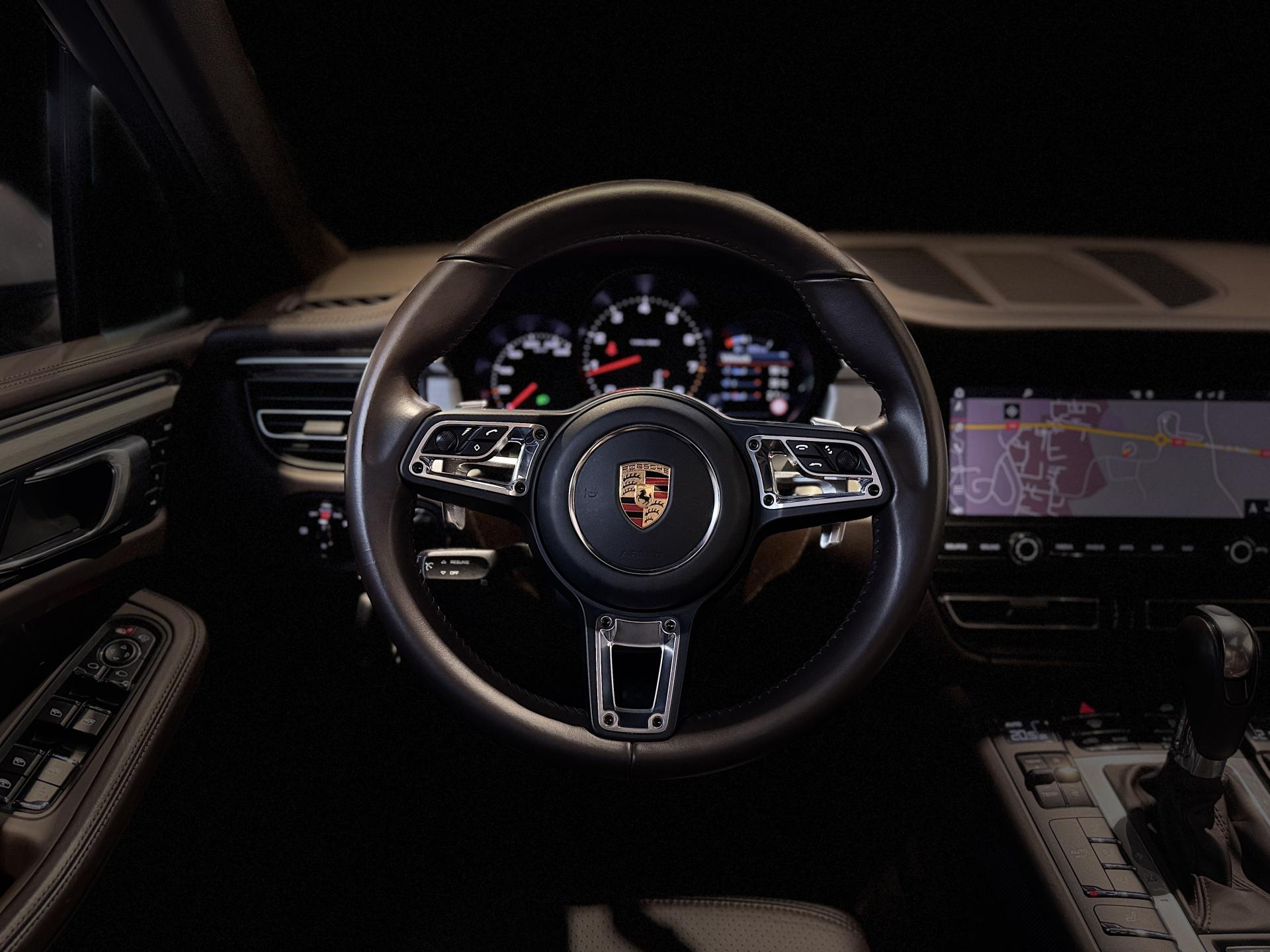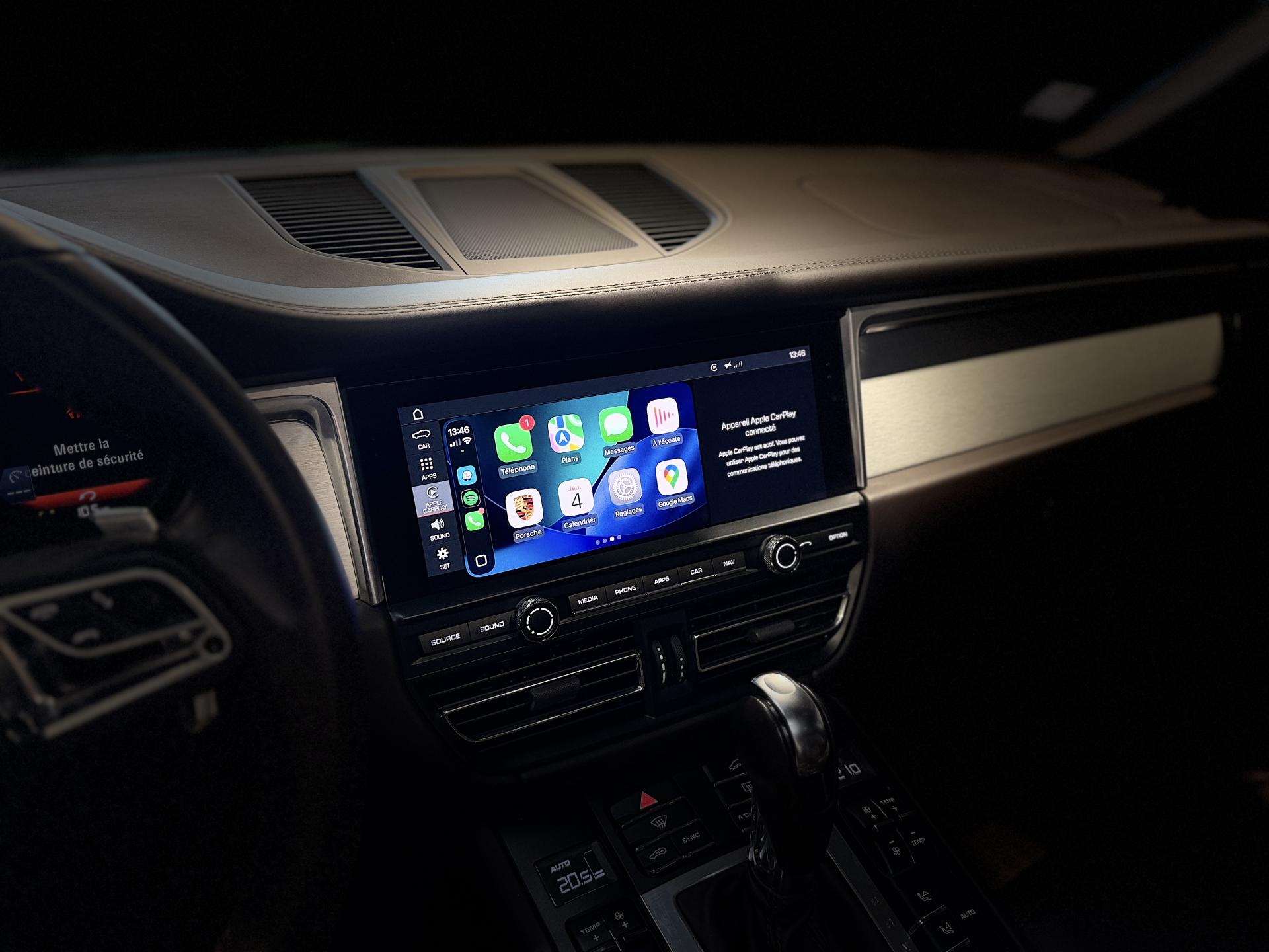 Nombreuses options : GPS, caméra de recul, Apple Carplay, radars avants et arrières de détection d'obstacles, jantes Macan Turbo 20" en couleur platine (finition satinée) ( 3 670 € ), pack sport design ( 2 990 € ), suspension pneumatique à hauteur variable avec régulation de la hauteur de caisse et de l’assiette incluant le PASM ( Porsche Active Suspension Management ) ( 2 650 € ), toit ouvrant panoramique ( 1 620 € ), sièges confort AV électriques 14 réglages avec pack mémoire ( 1 490 € ), assistance de parking AV / AR avec caméra de recul ( 1 340 € ), dispositif d’attelage rétractable électriquement ( 1 220 € ), jupes latérales sportdesign ( 830 € ), avertisseur de changement de voie avec assistance angles morts ( 590 € ), volant sport multifonction avec chauffage du volant ( 550 € ), vitrage AR fumé ( 470 € ), pack intérieur aluminium brossé + enjoliveur de la planche de bord en aluminium + cache de console centrale brossé alu ( 470 € ), pare-brise chauffant ( 430 € ), sièges chauffants à l’AV ( 420 € ), affichage des limitations de vitesse ( 360 € ), rampes de pavillon en noir ( 350 € ), pack confort luminosité ( 310 € ), HomeLink système d’ouverture de porte de garage ( 290 € ), Servotronic Plus ( 260 € ), contour des vitres latérales en noir finition brillante ( 200 € ), enjoliveur de roue avec écusson Porsche couleur ( 160 € ), réservoir de 75L ( 120 € ), tapis de sol ( 120 € ), kit anticrevaison (bombe et compresseur électrique) ( 60 € ), pack fumeur ( 50 € ), suppression du monogramme AR, ...